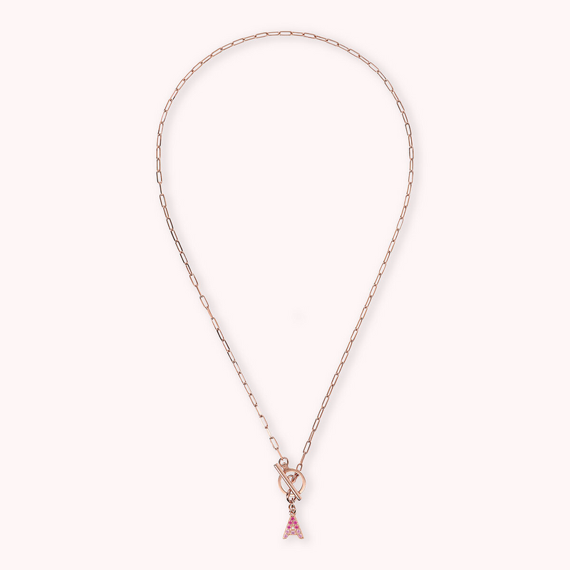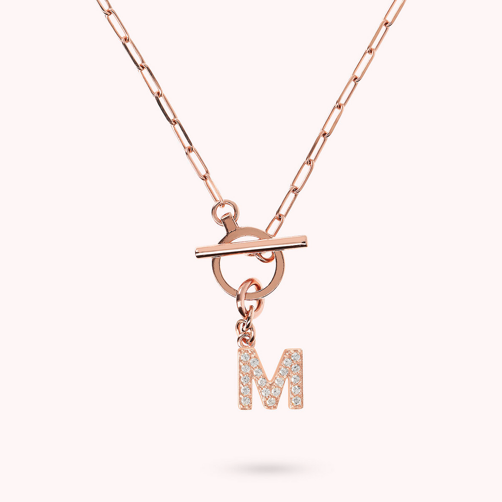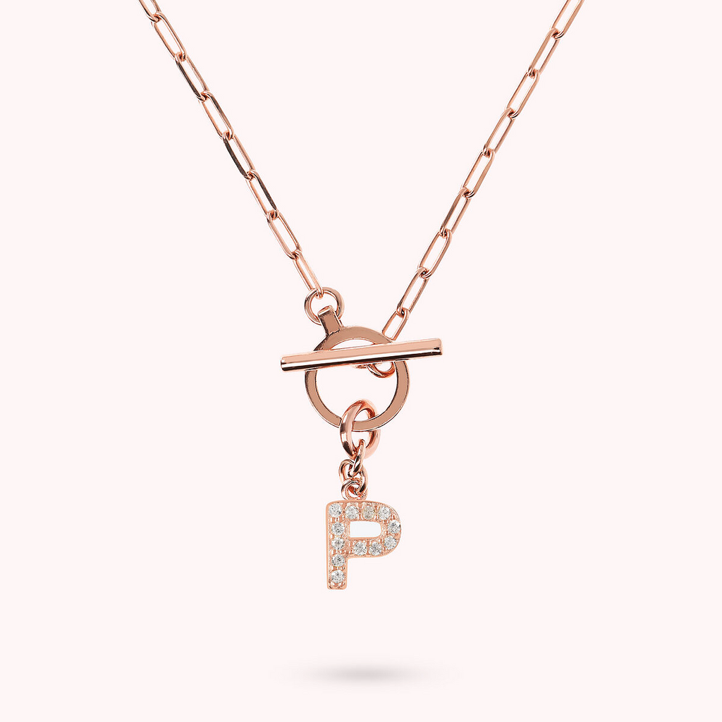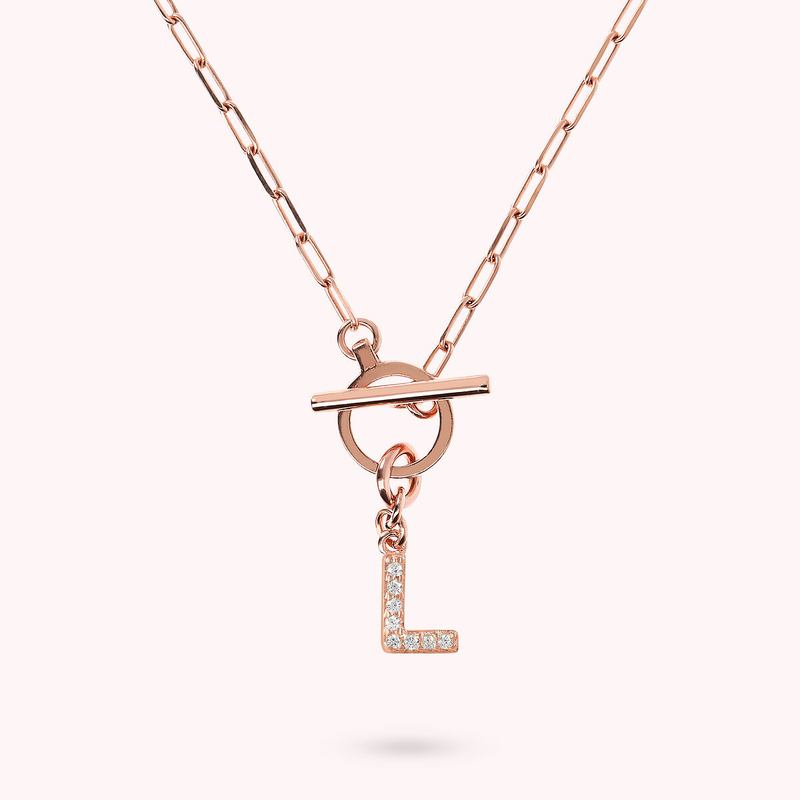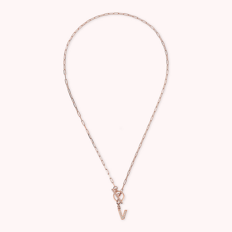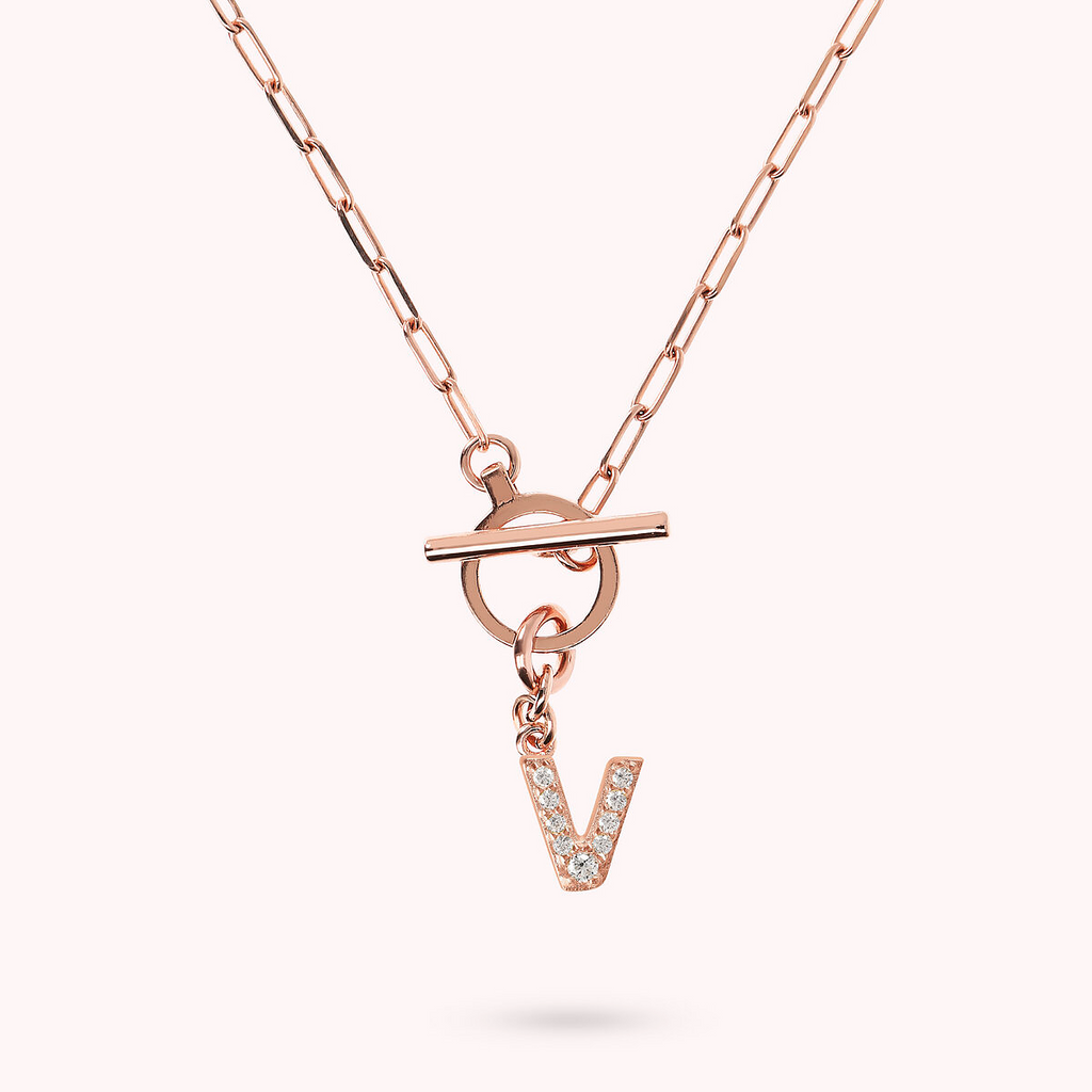 Bronzallure-Halskette aus Golden-Rosé-Legierung, 18-Karat rosévergoldet, mit Buchstabenanhänger in kubischem Zirkonia-Pavé.