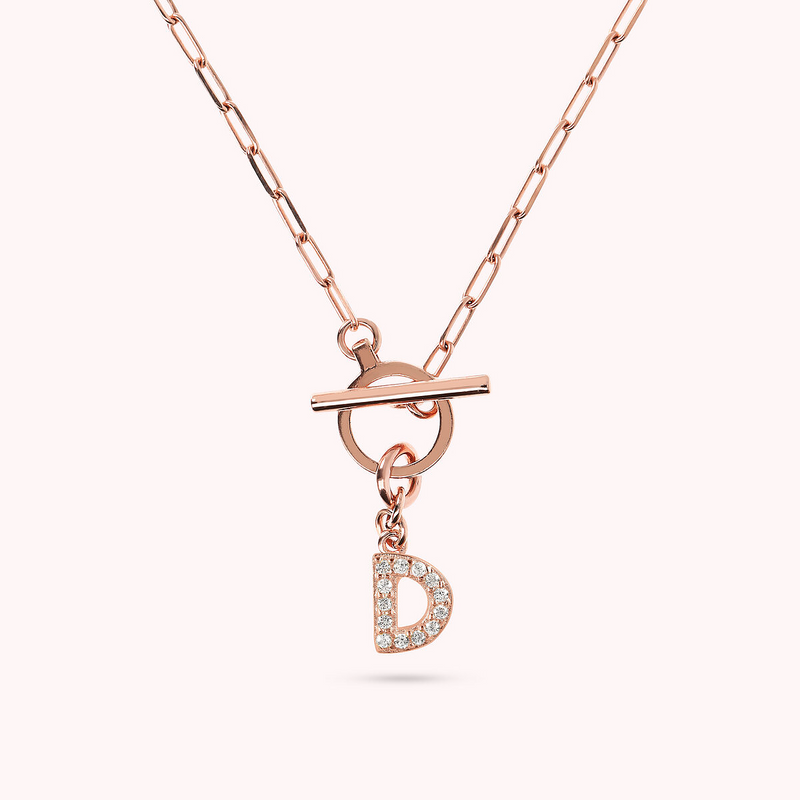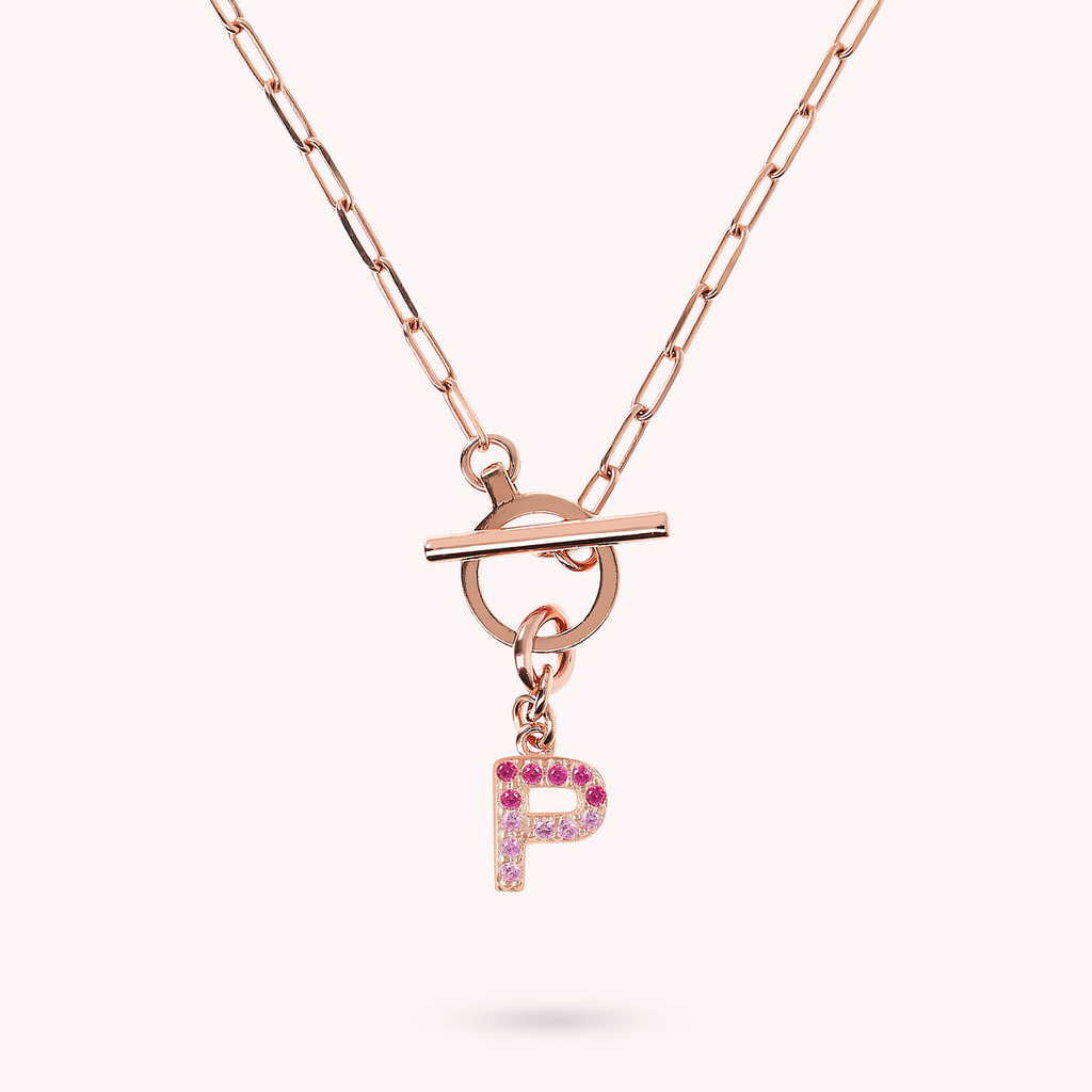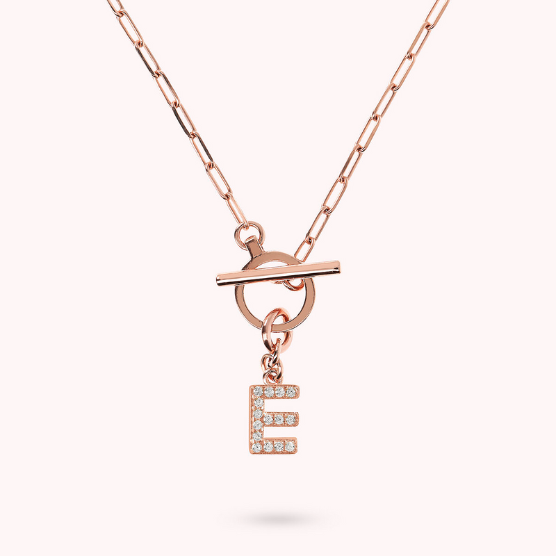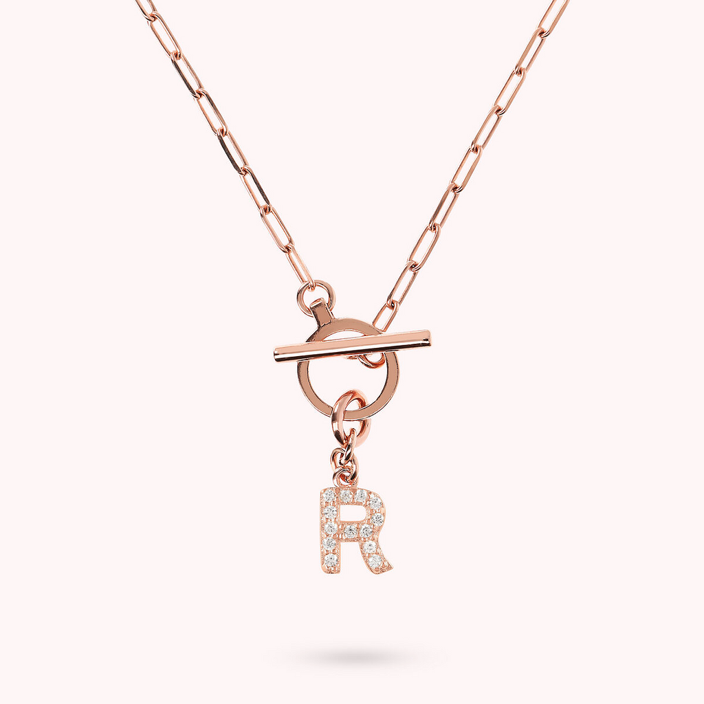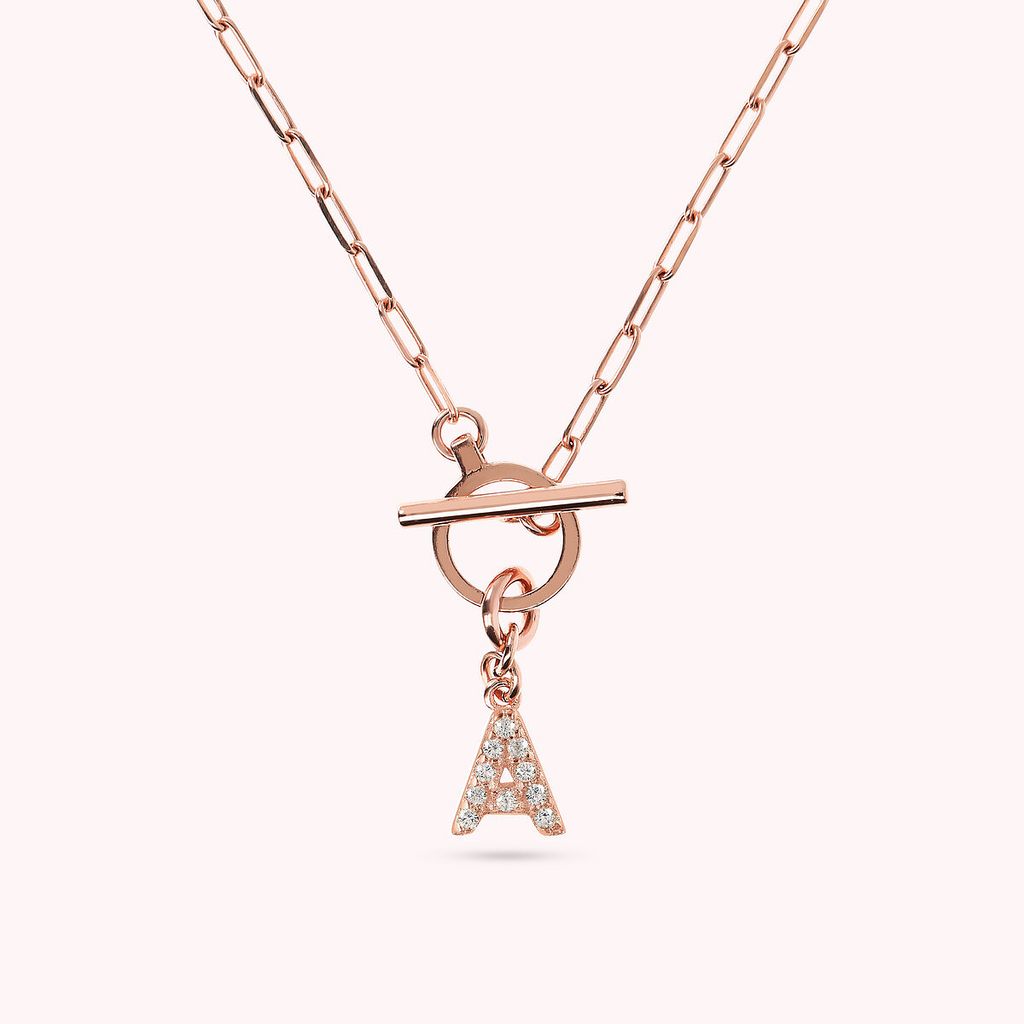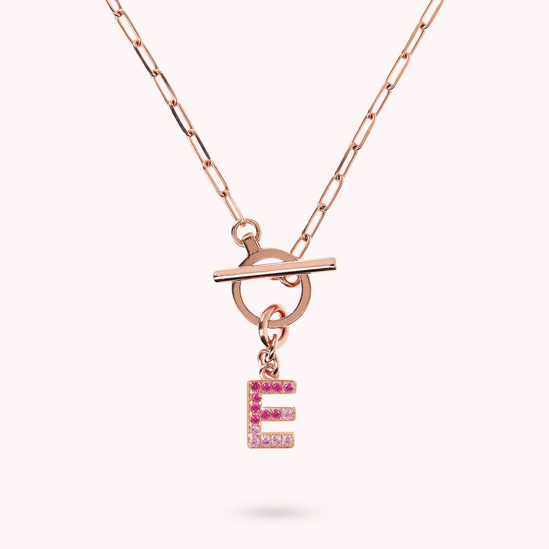 Bronzallure-Halskette aus Golden-Rosé-Legierung, 18-Karat rosévergoldet, mit Buchstabenanhänger in kubischem Zirkonia-Pavé.