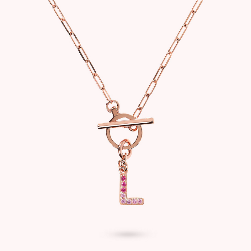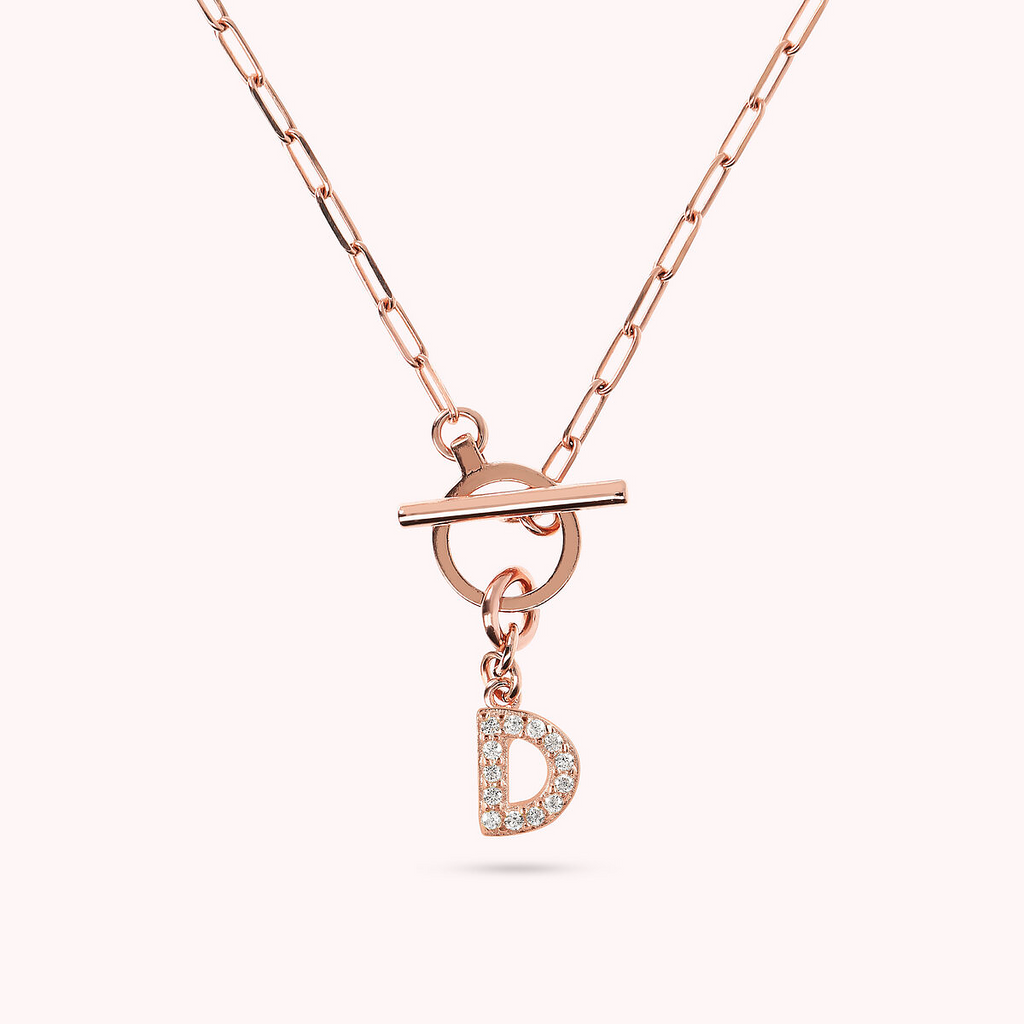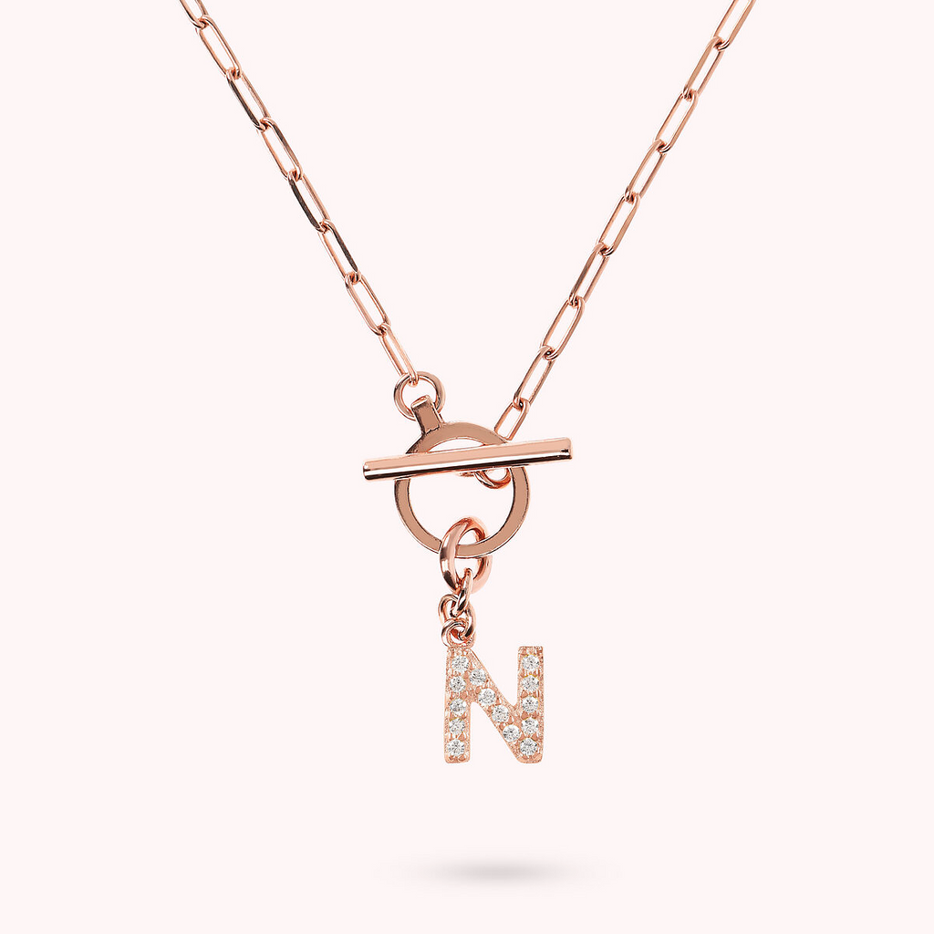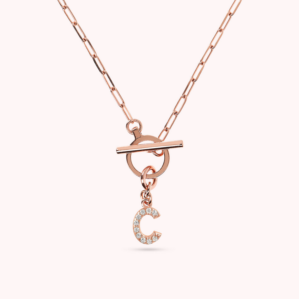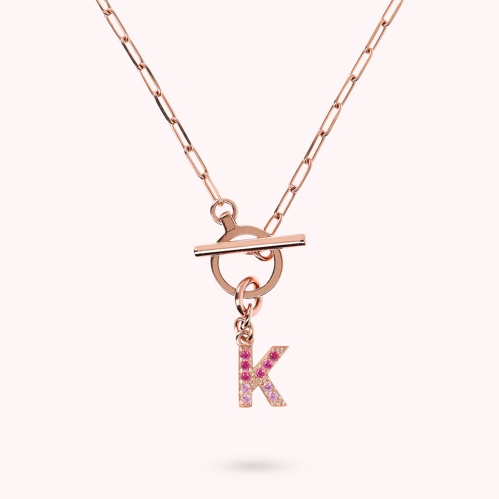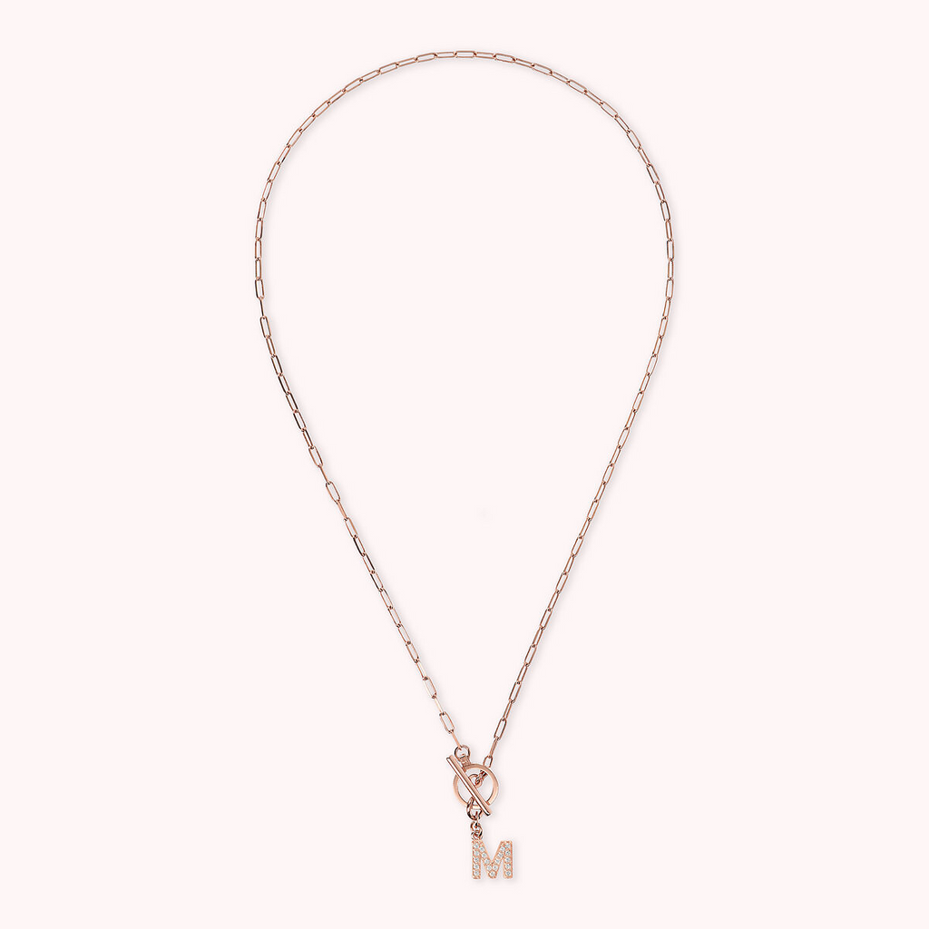 Bronzallure-Halskette aus Golden-Rosé-Legierung, 18-Karat rosévergoldet, mit Buchstabenanhänger in kubischem Zirkonia-Pavé.