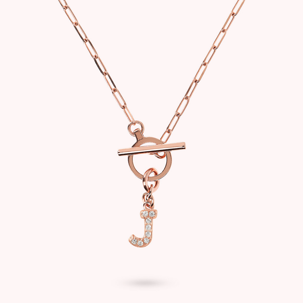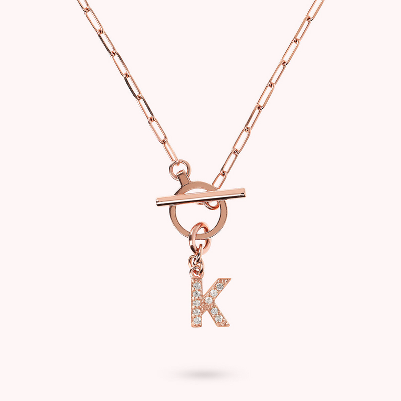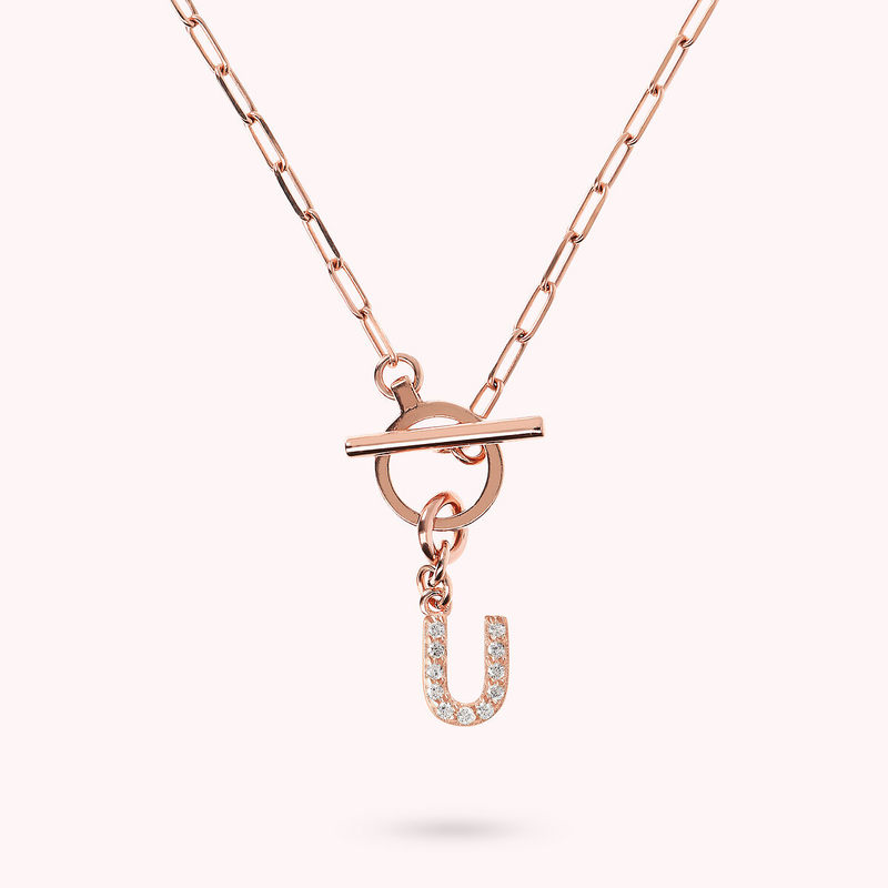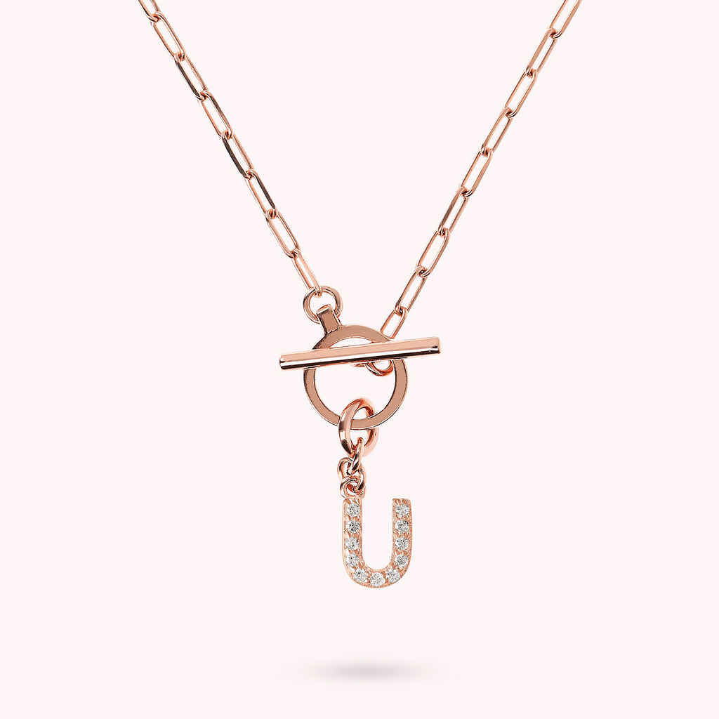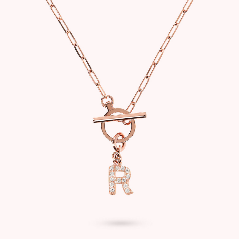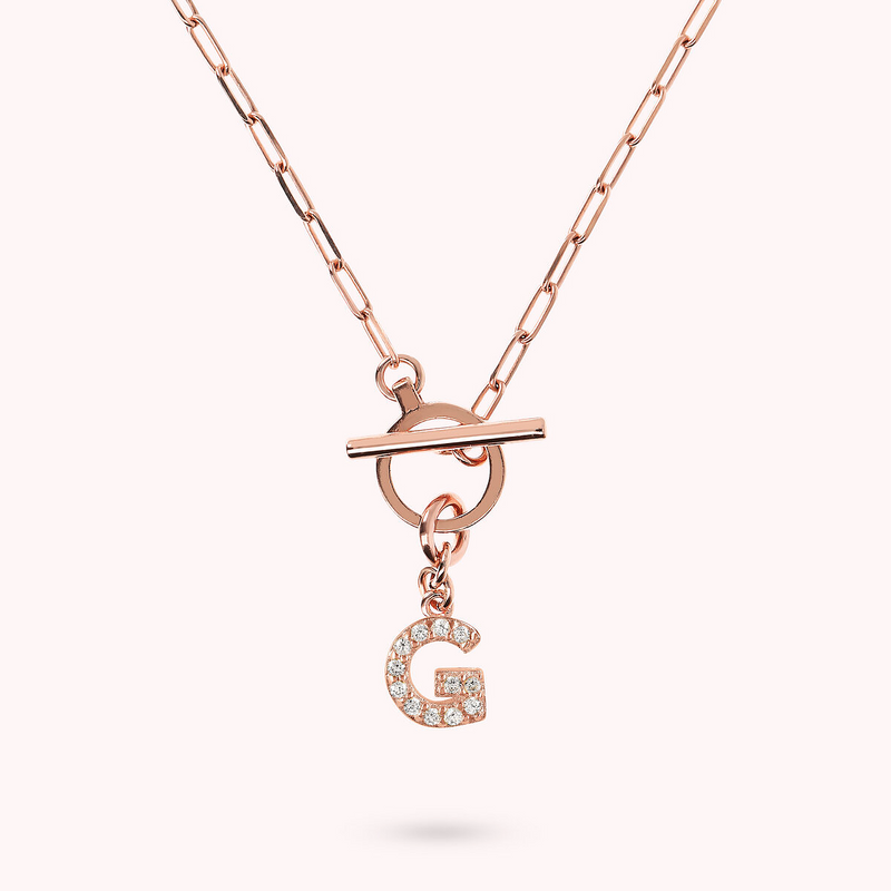 Bronzallure-Halskette aus Golden-Rosé-Legierung, 18-Karat rosévergoldet, mit Buchstabenanhänger in kubischem Zirkonia-Pavé.
