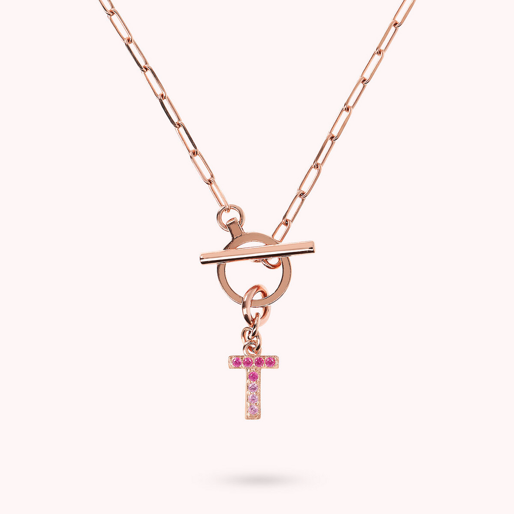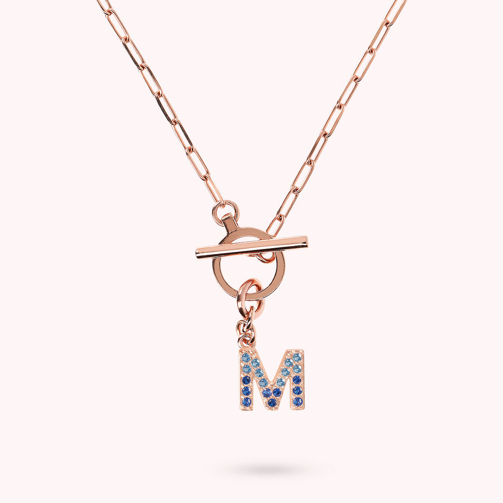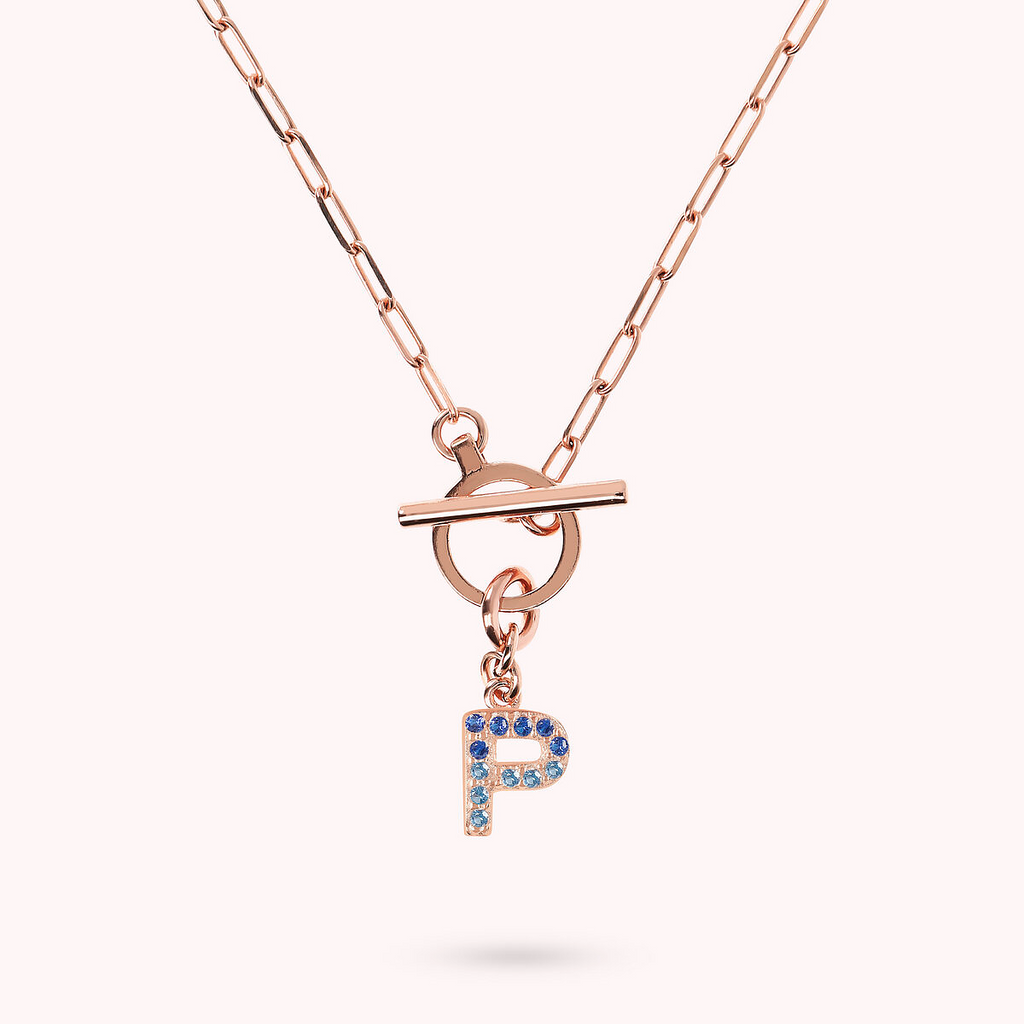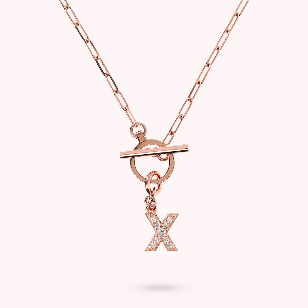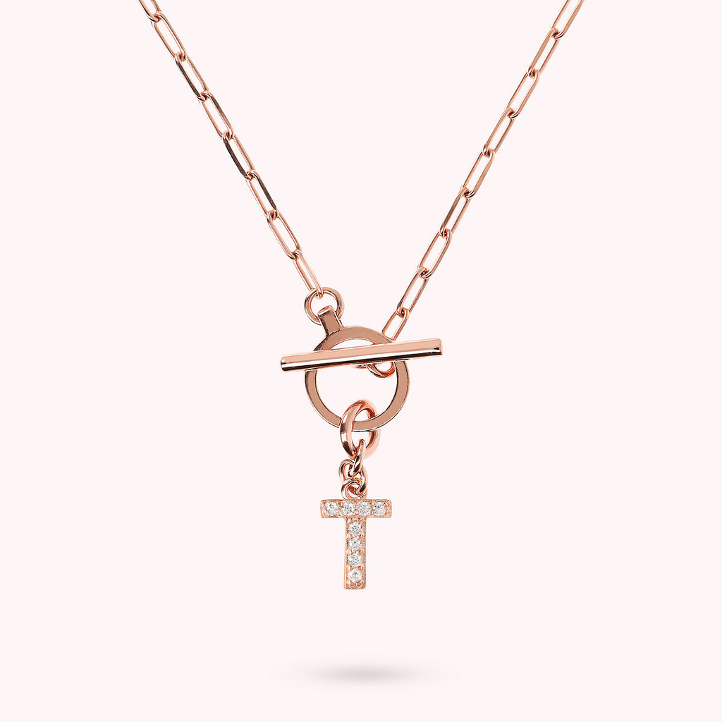 Bronzallure-Halskette aus Golden-Rosé-Legierung, 18-Karat rosévergoldet, mit Buchstabenanhänger in kubischem Zirkonia-Pavé.