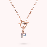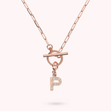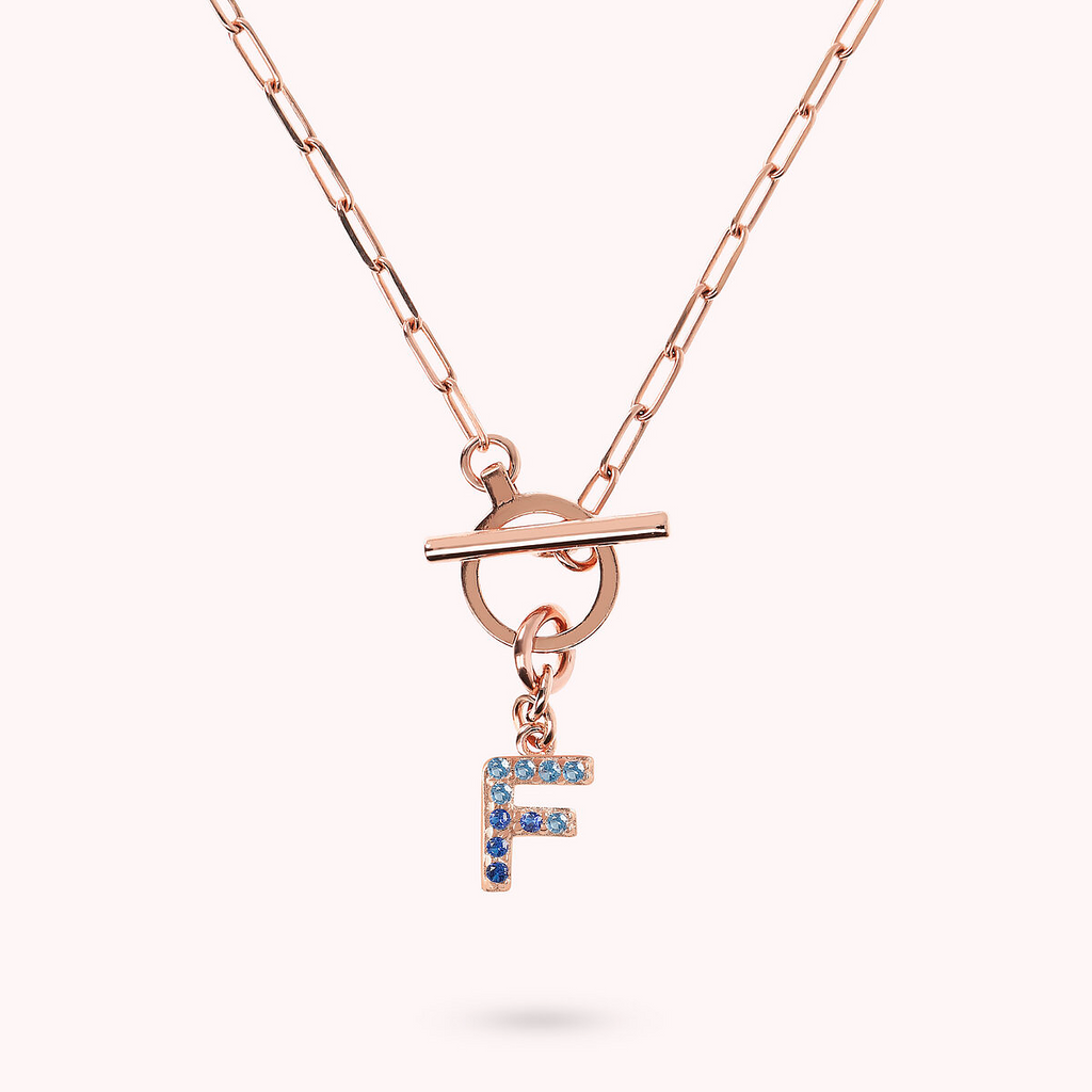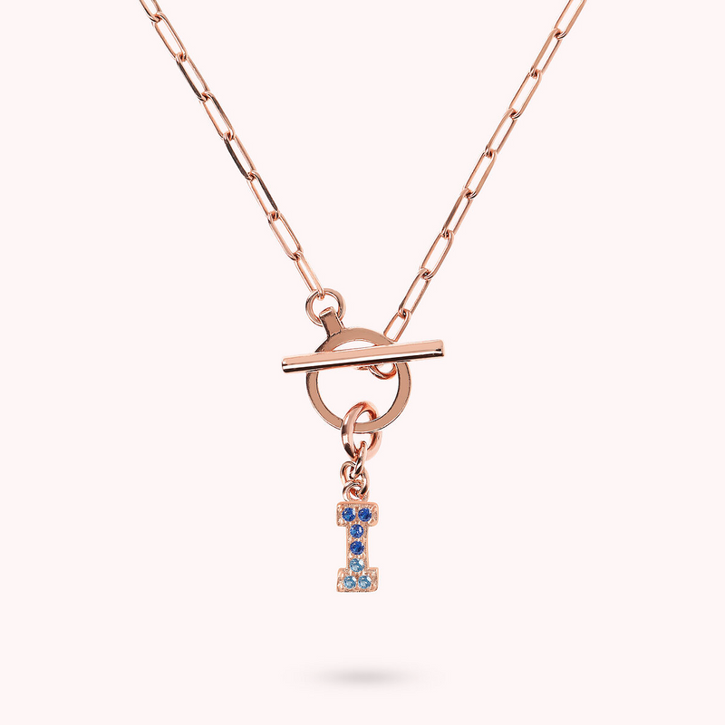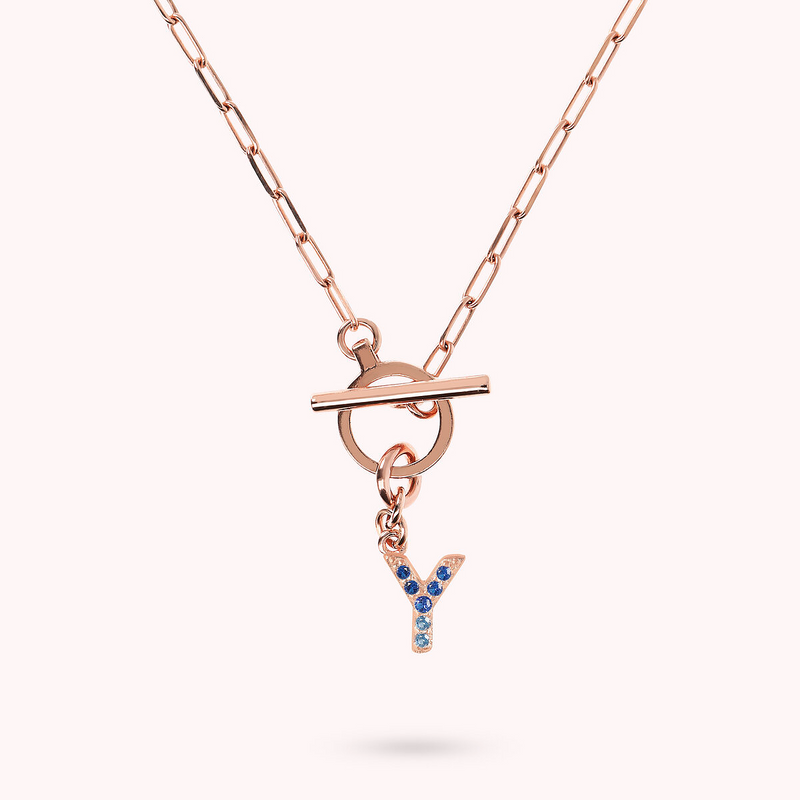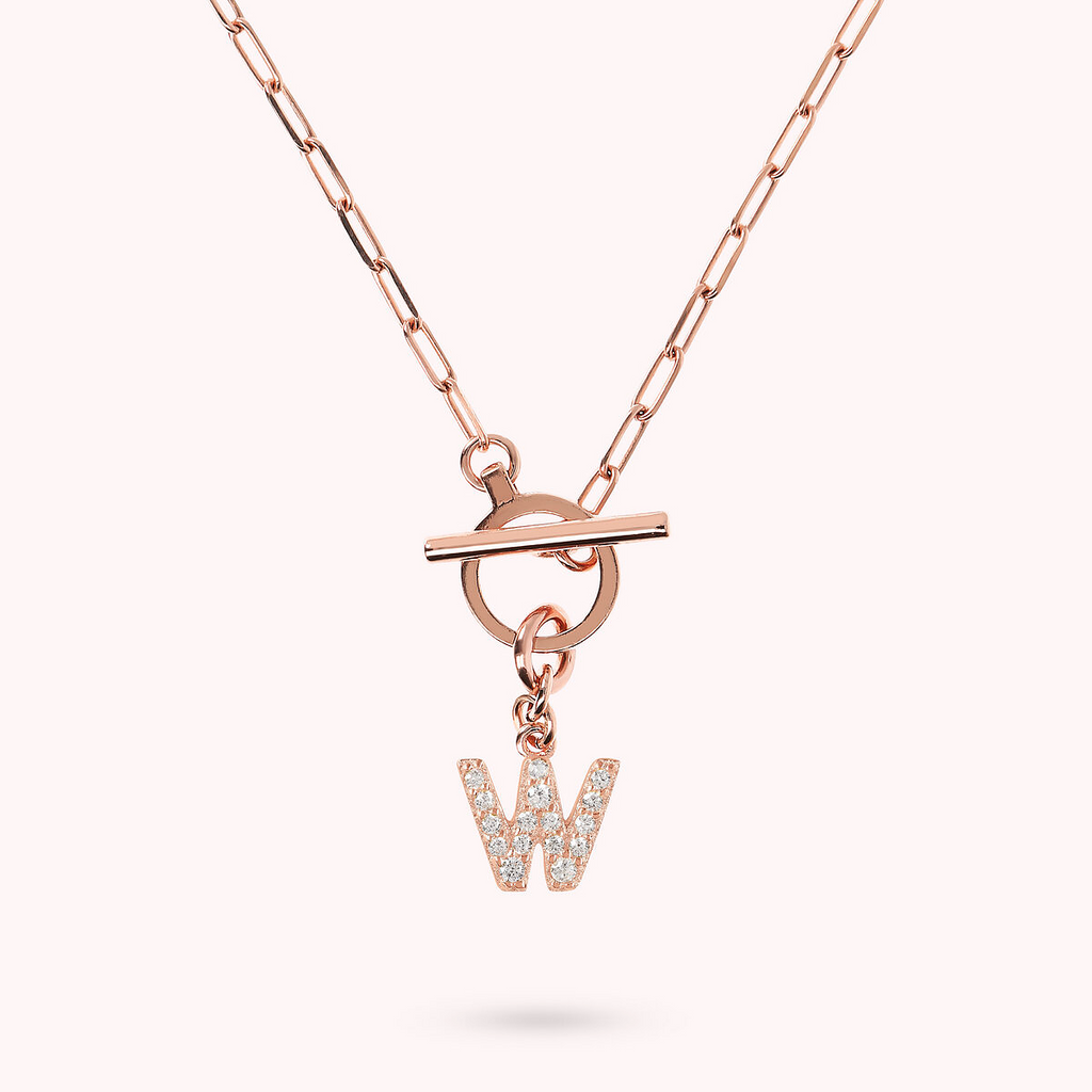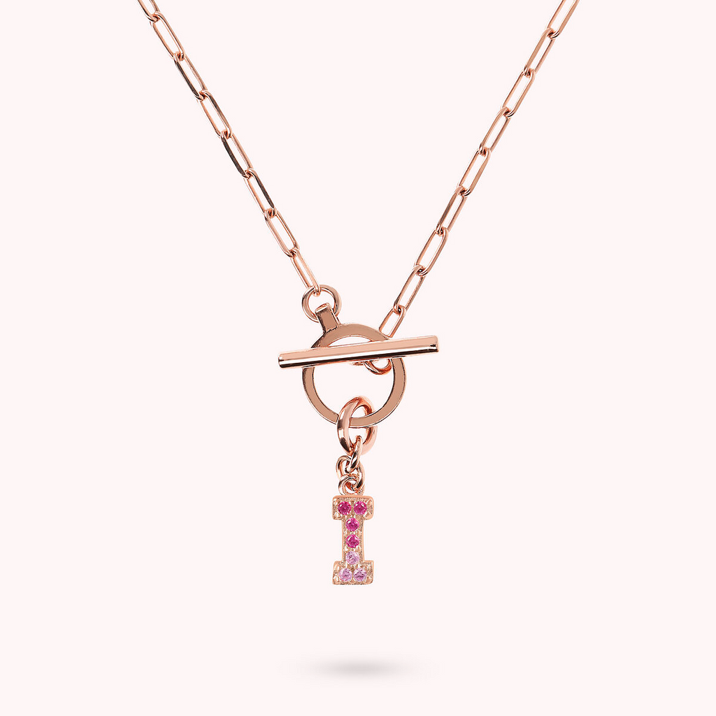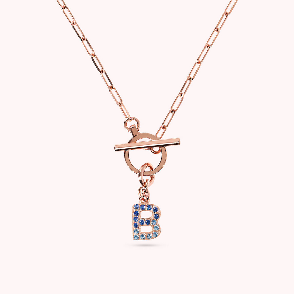 Bronzallure-Halskette aus Golden-Rosé-Legierung, 18-Karat rosévergoldet, mit Buchstabenanhänger in kubischem Zirkonia-Pavé.