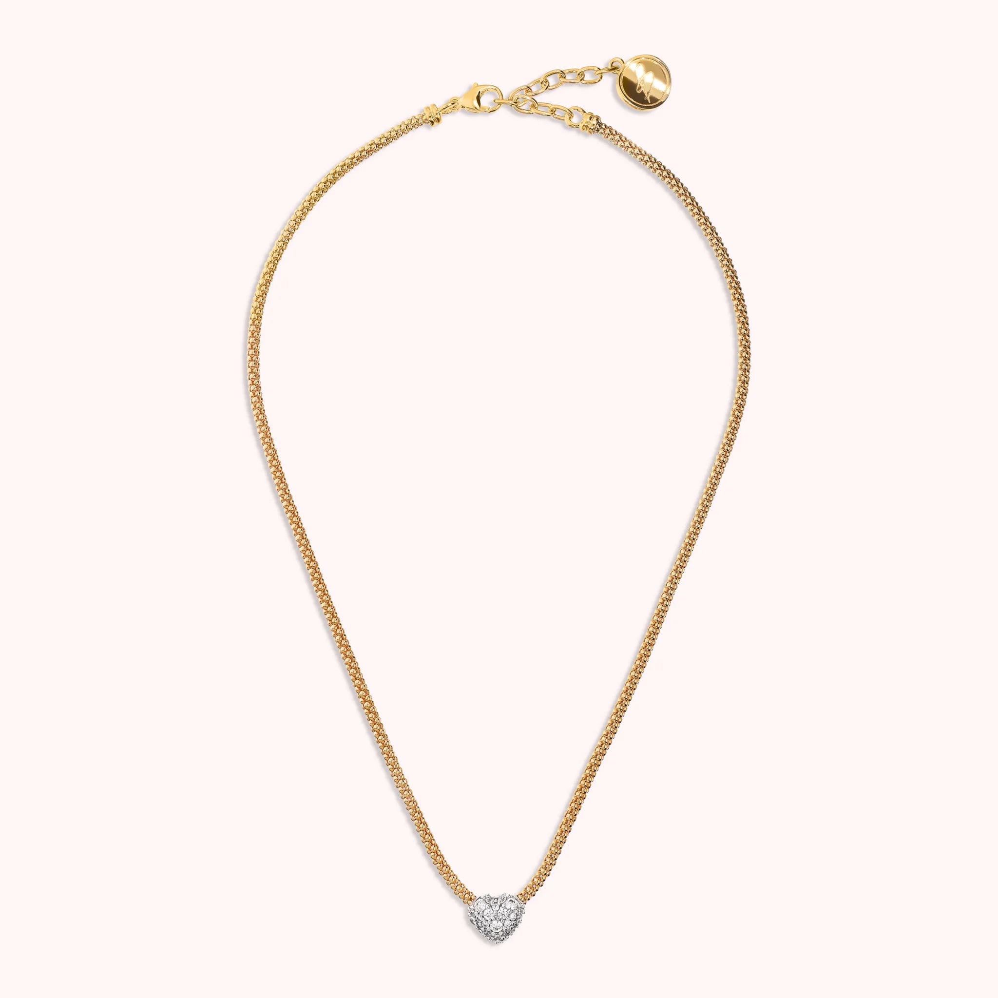 Halskette Golden Maglia Popcorn mit Herz aus Pavé von Zirkonia