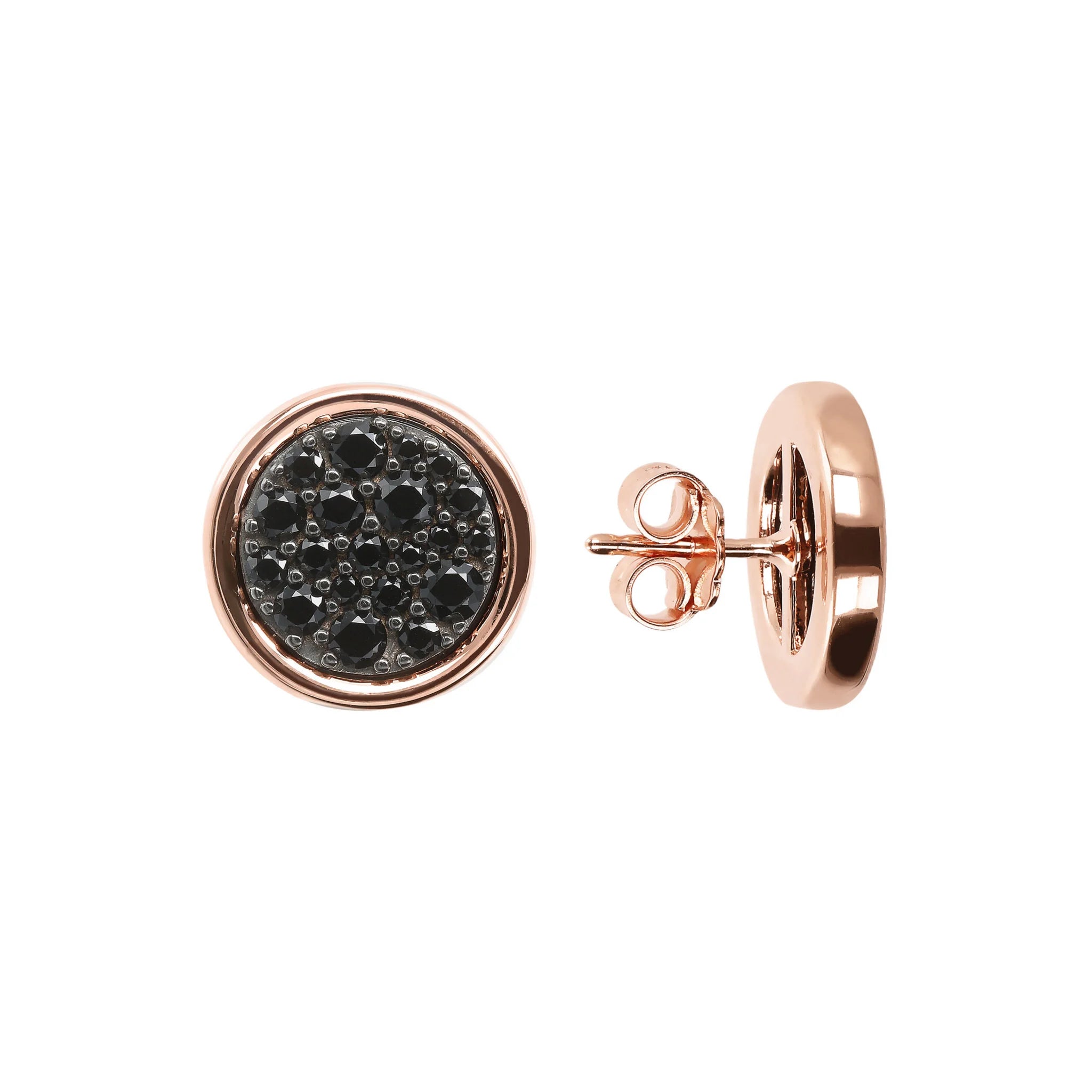Bronzallure-Ohrstecker aus Golden-Rosé-Legierung, 18-Karat rosévergoldet, mit rundem Pavé aus leuchtendem Zirkonia oder schwarzem Spinell. Eine elegante und perfekte Kreation, die Ihren Look zum Strahlen bringt.