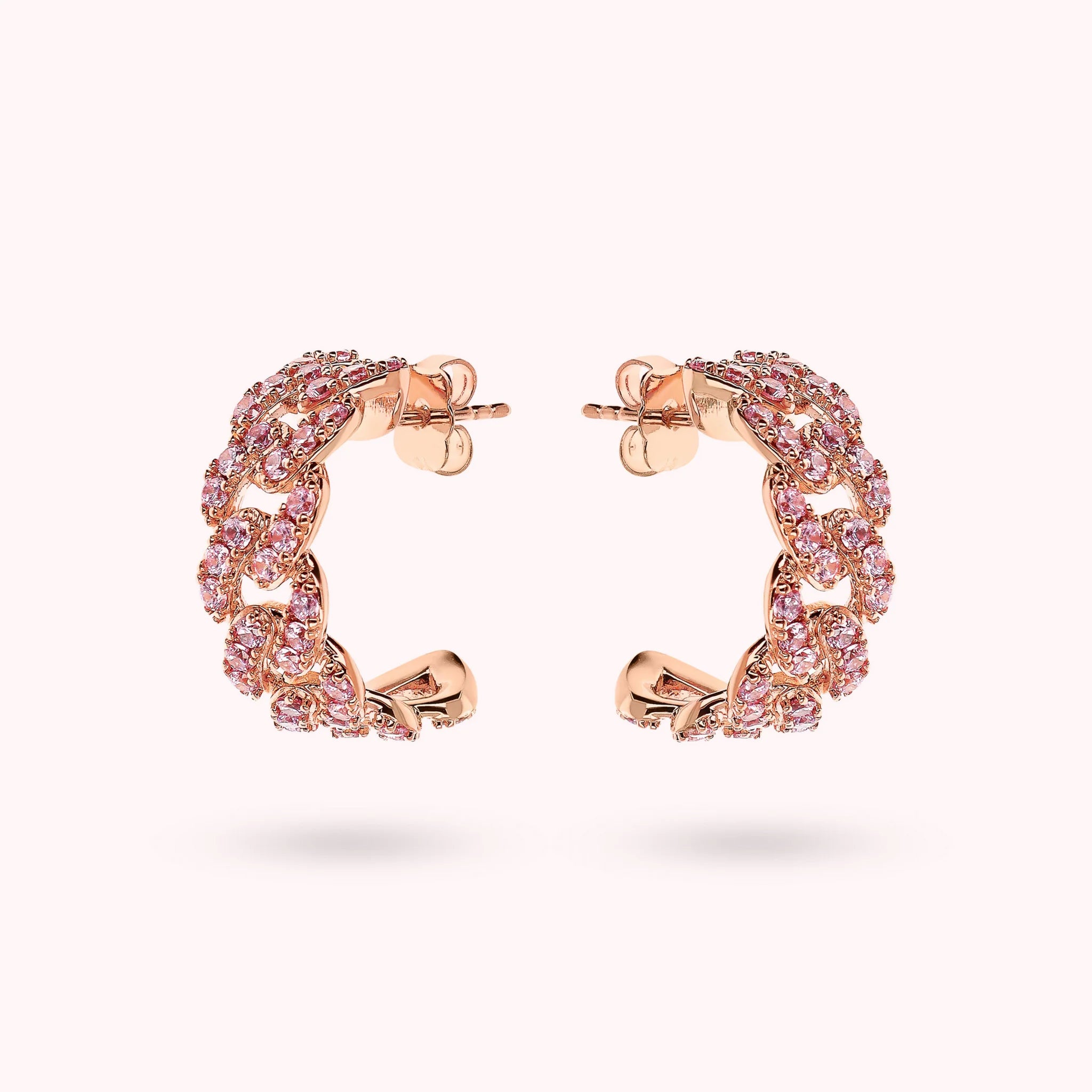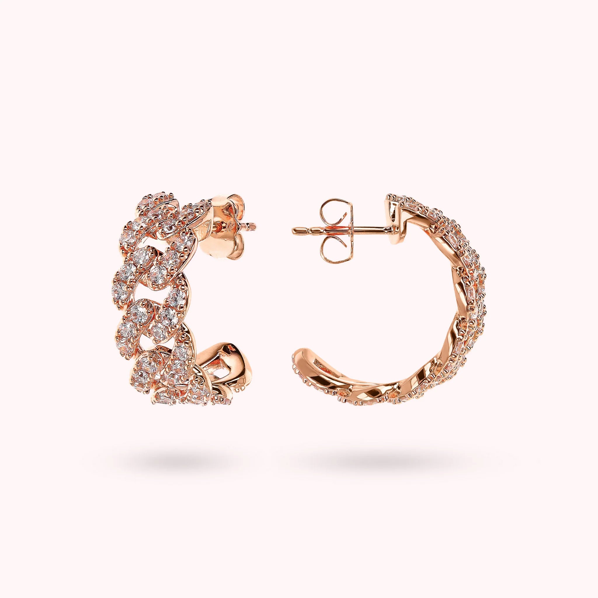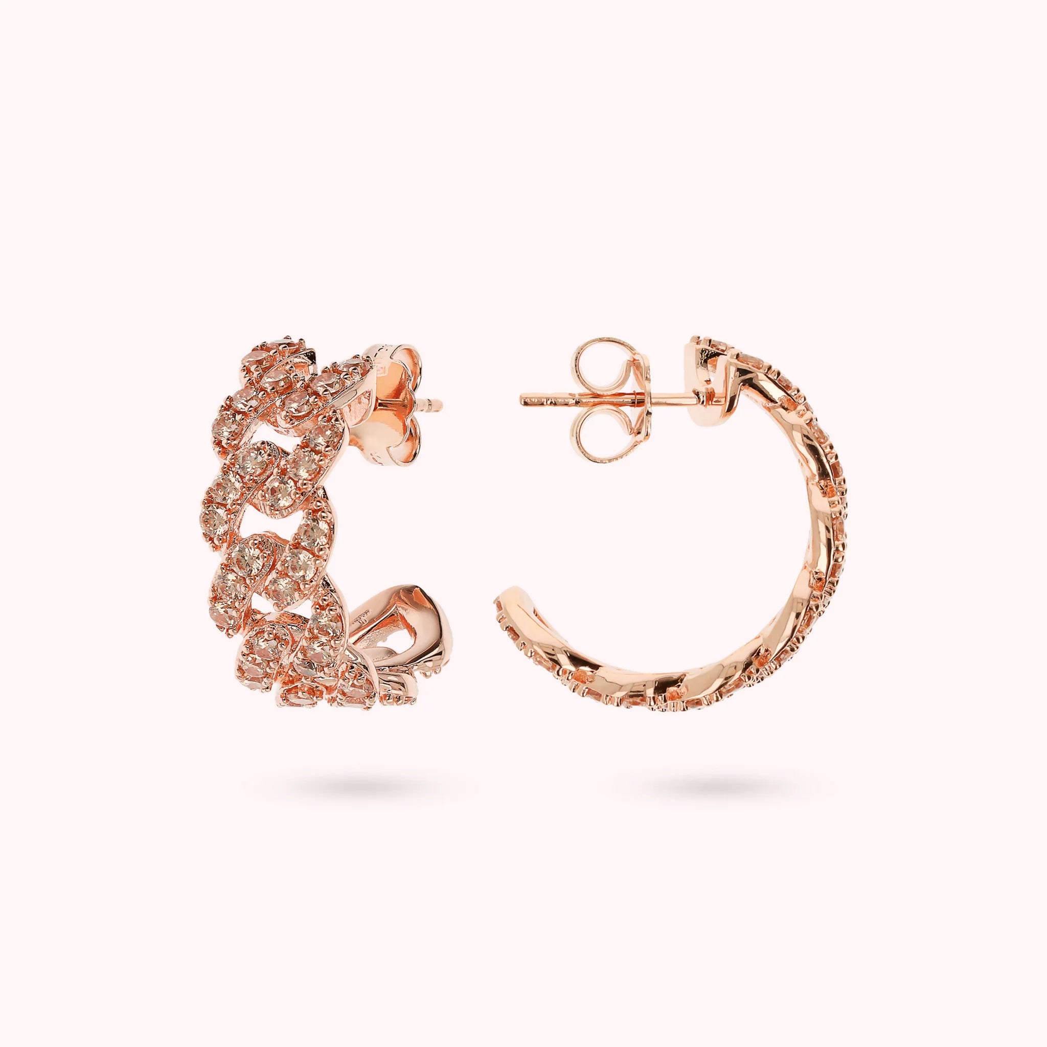 Bronzallure-Ohrringe aus Golden-Rosé-Legierung, 18-karätig rosévergoldet, mit quadratischer Zirkonia-Pavé-Kette, leuchtende Qualität. Länge 2cm. Pin- und Butterfly-Verschluss.
