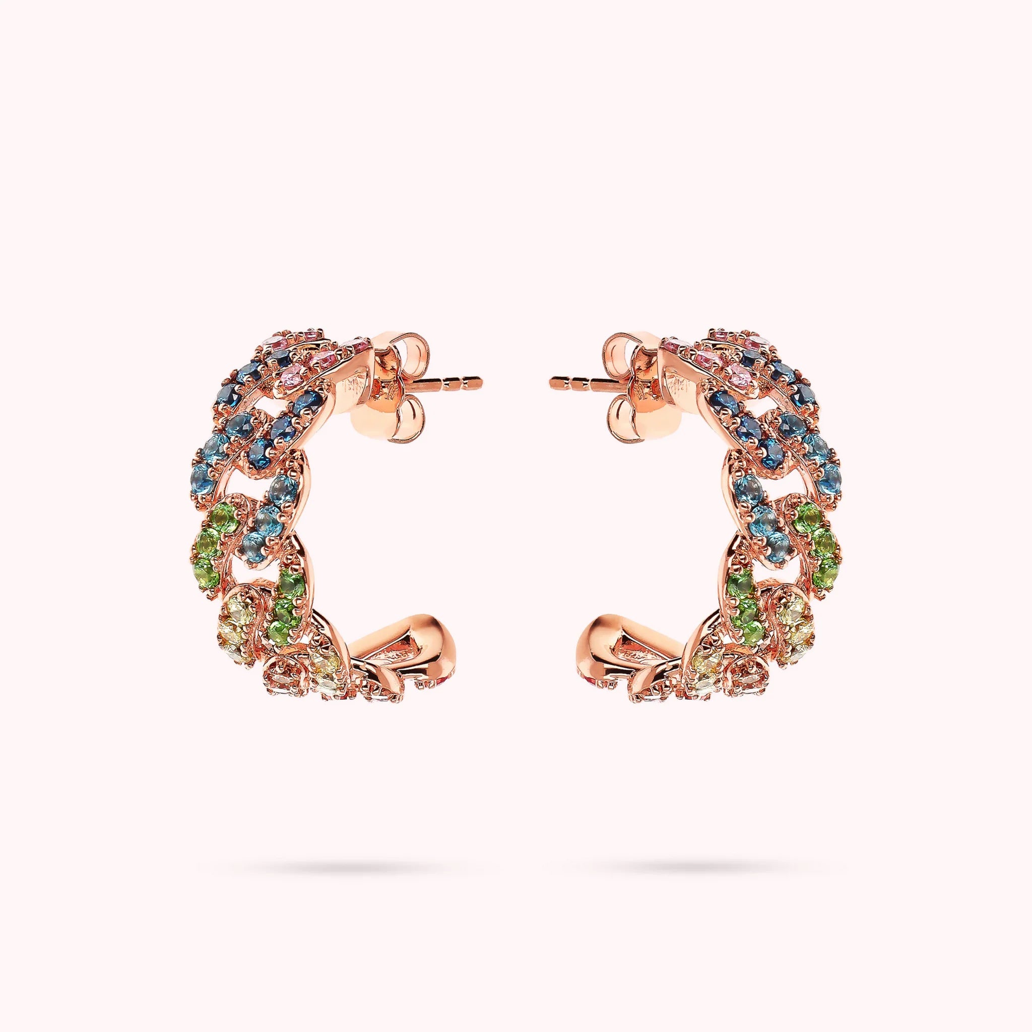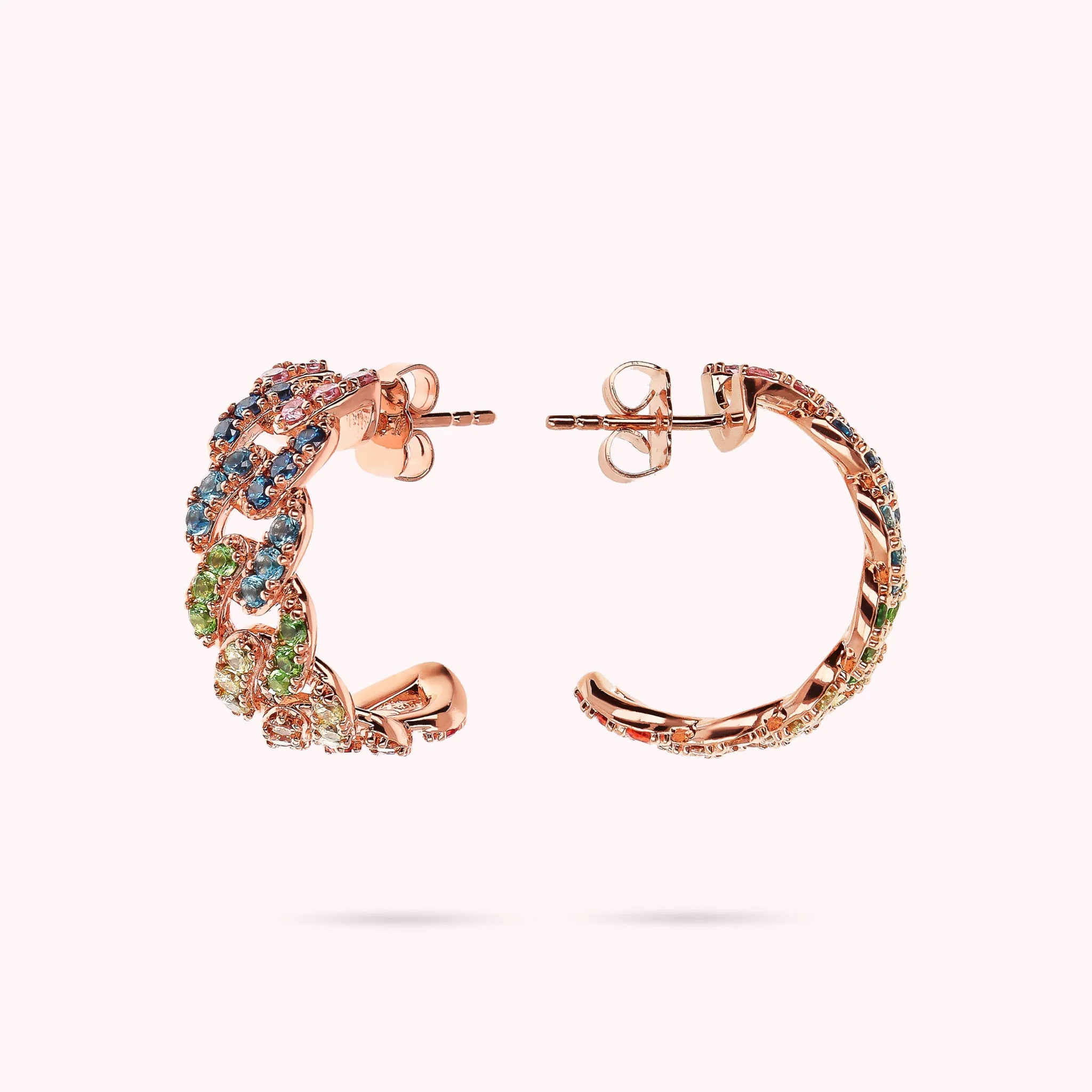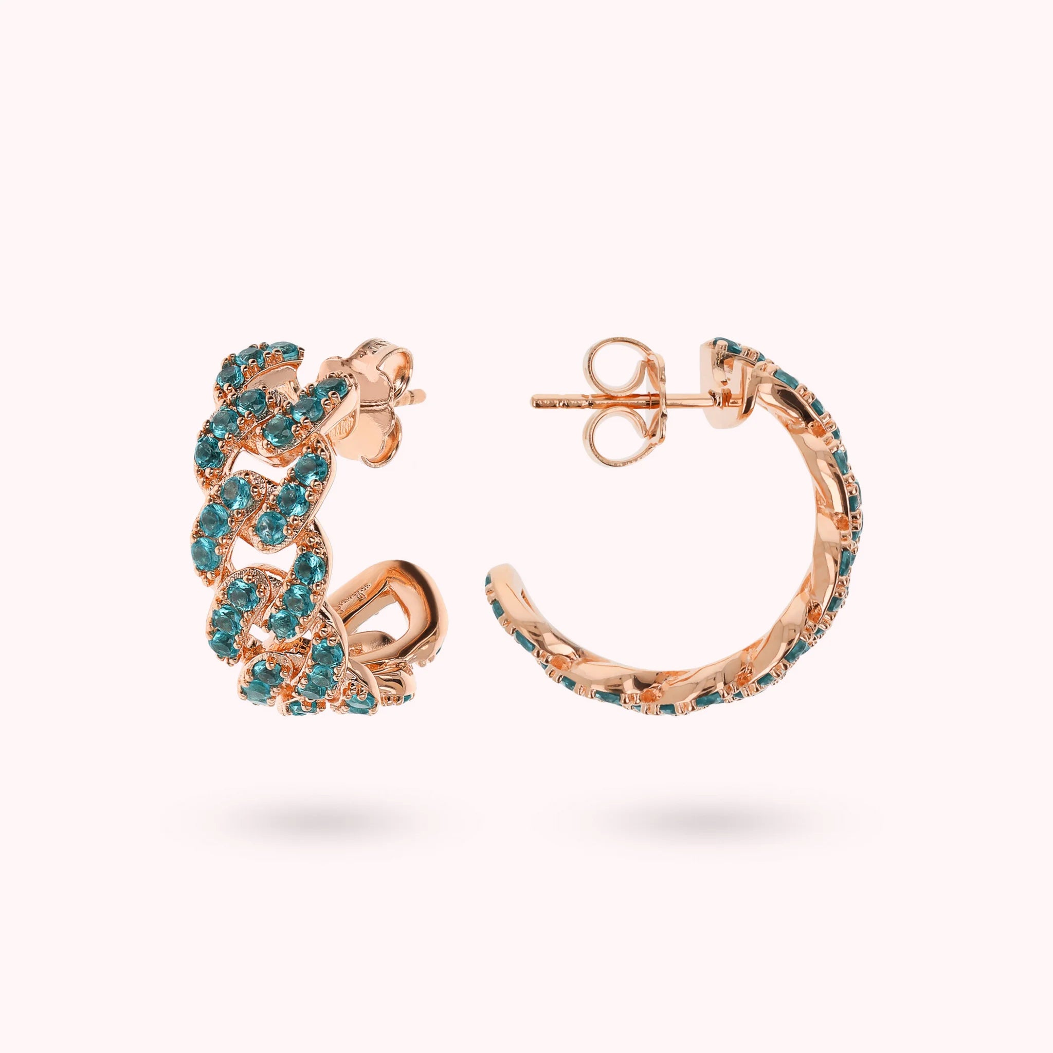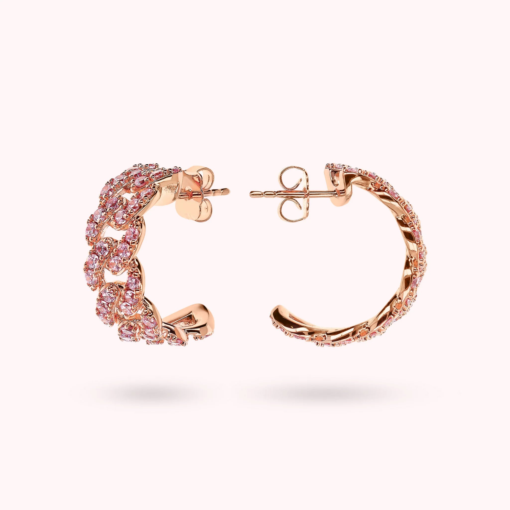 Bronzallure-Ohrringe aus Golden-Rosé-Legierung, 18-karätig rosévergoldet, mit quadratischer Zirkonia-Pavé-Kette, leuchtende Qualität. Länge 2cm. Pin- und Butterfly-Verschluss.