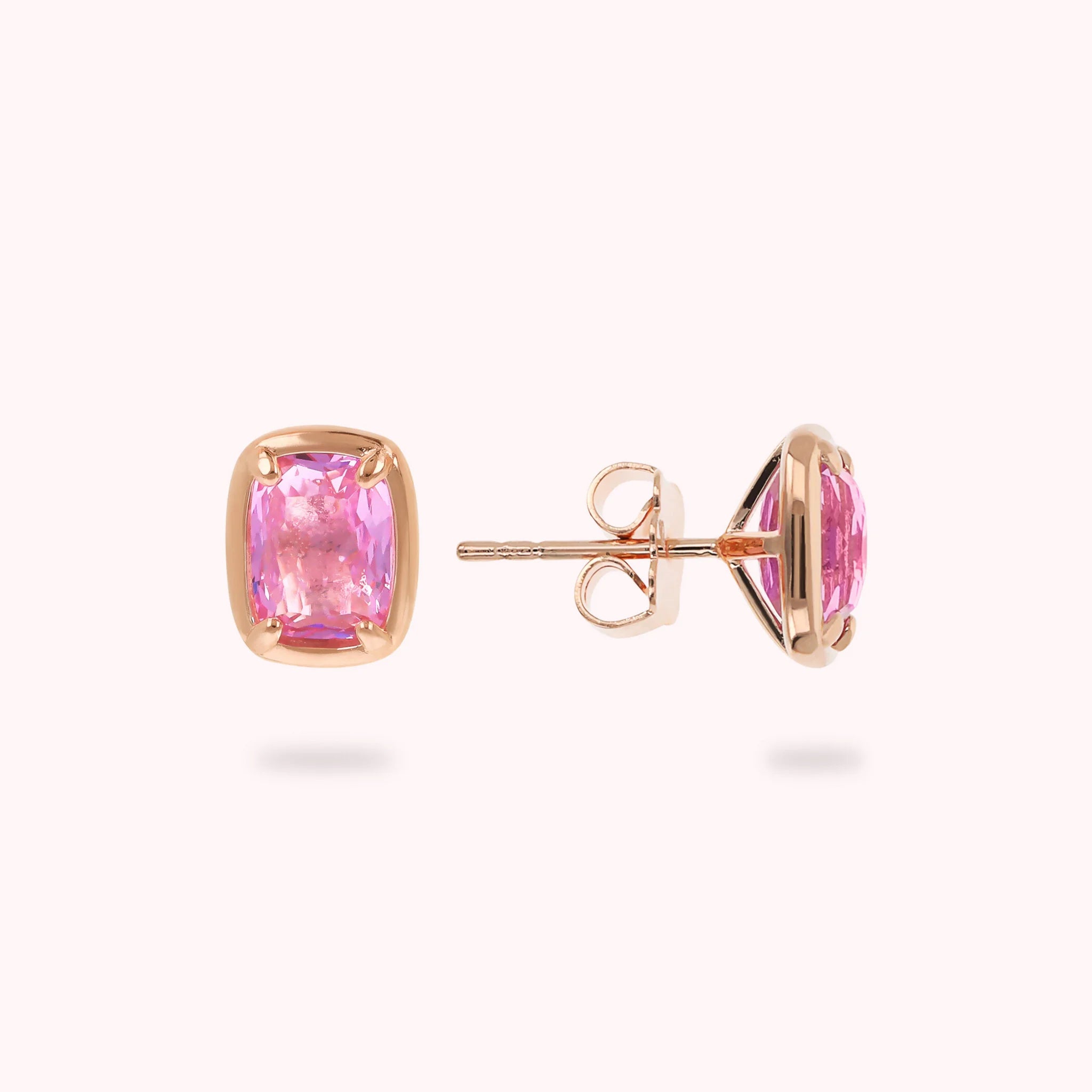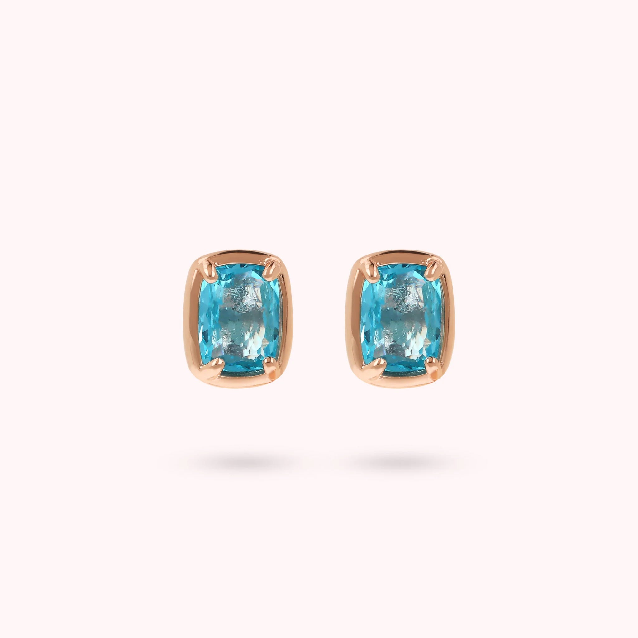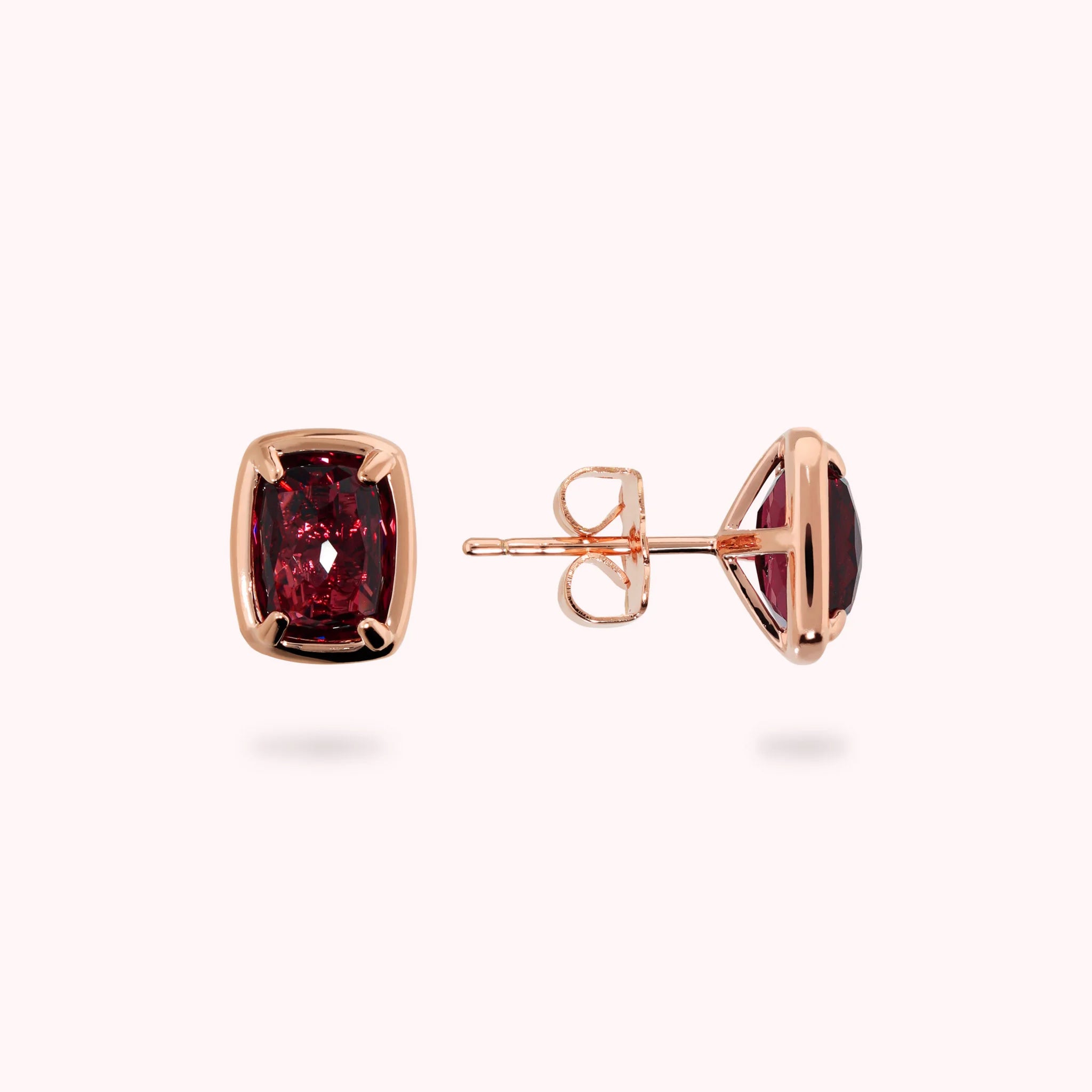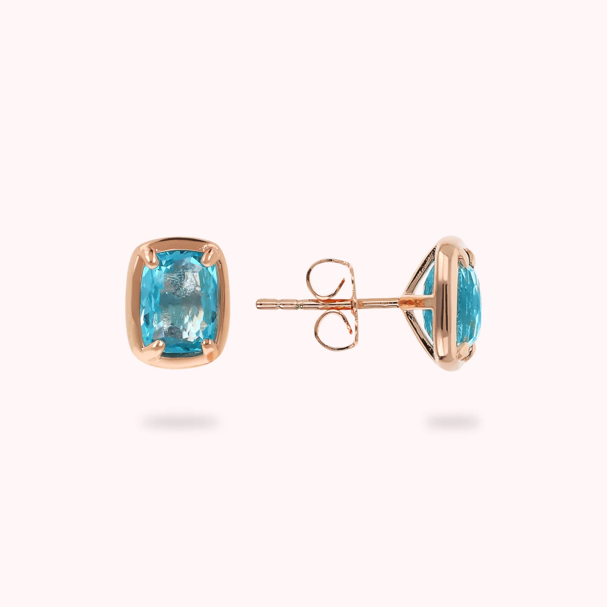 Ohrstecker von Bronzallure aus einer Golden Rosé Legierung, mit 18kt Roségold plattiert, mit zwei prismatischen Edelsteinen im Baguetteschliff (8x6 mm). Mit Steckverschluss und Butterfly.