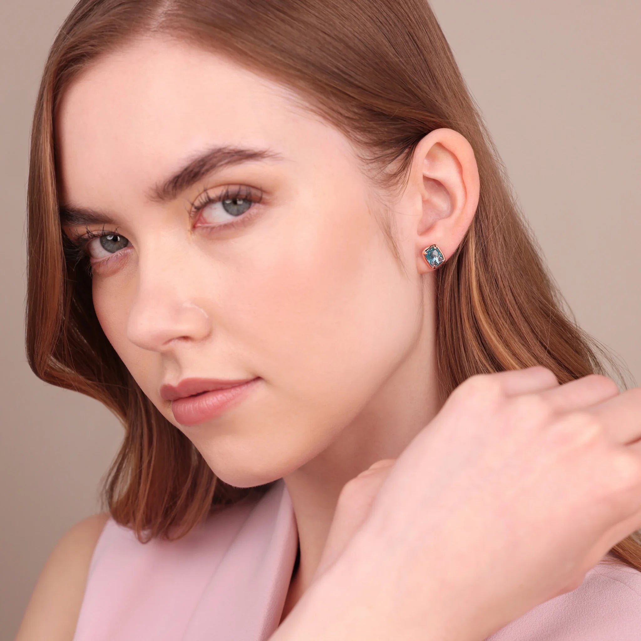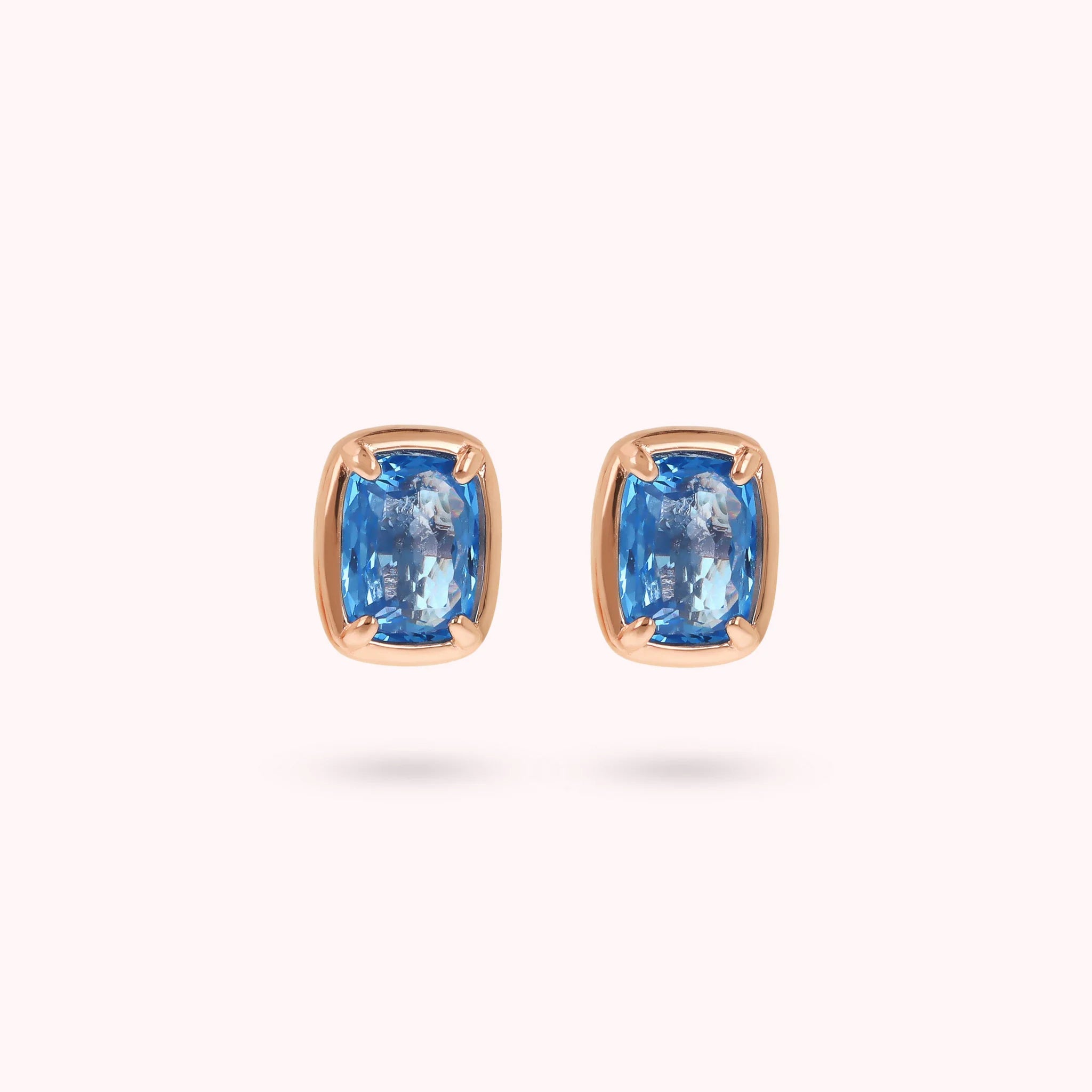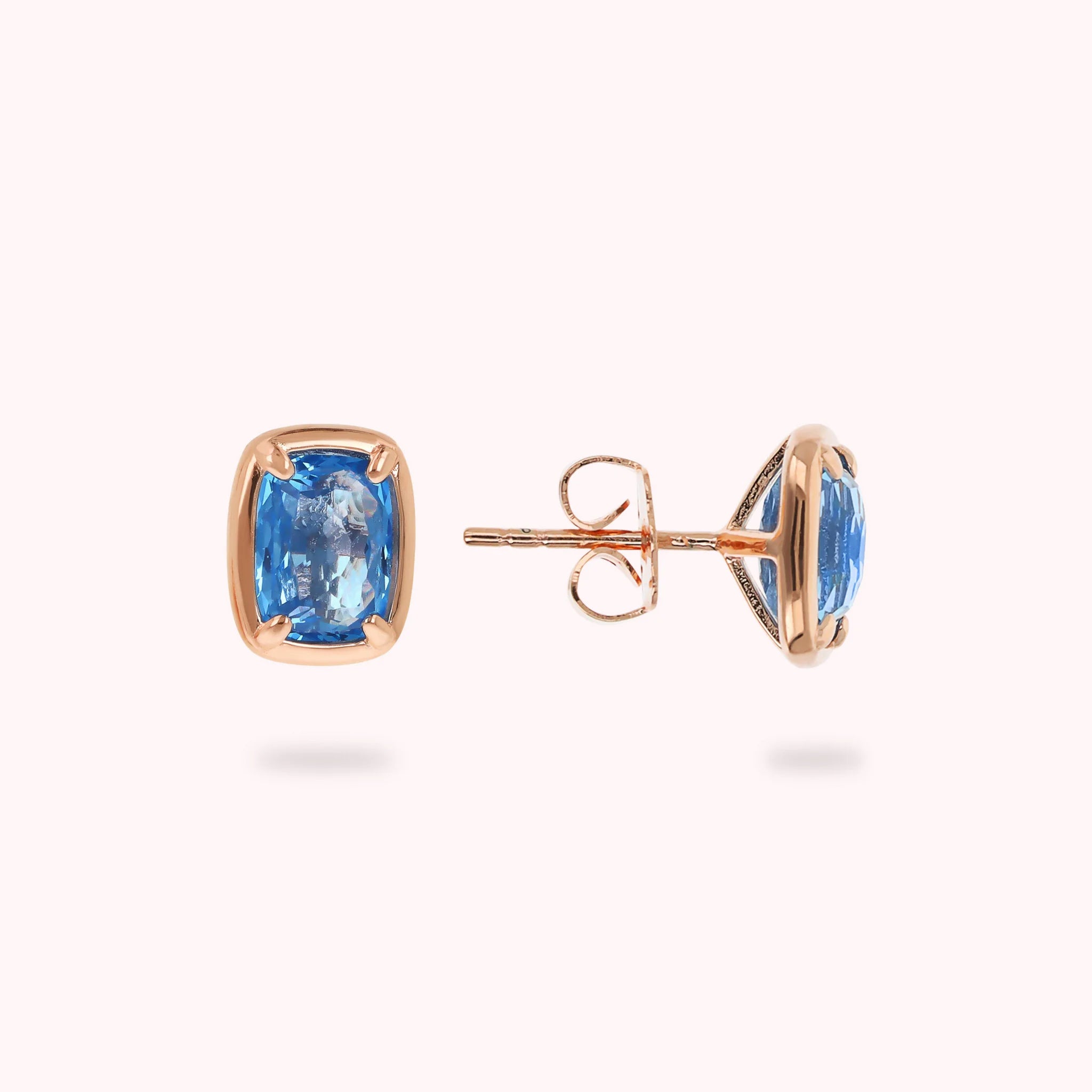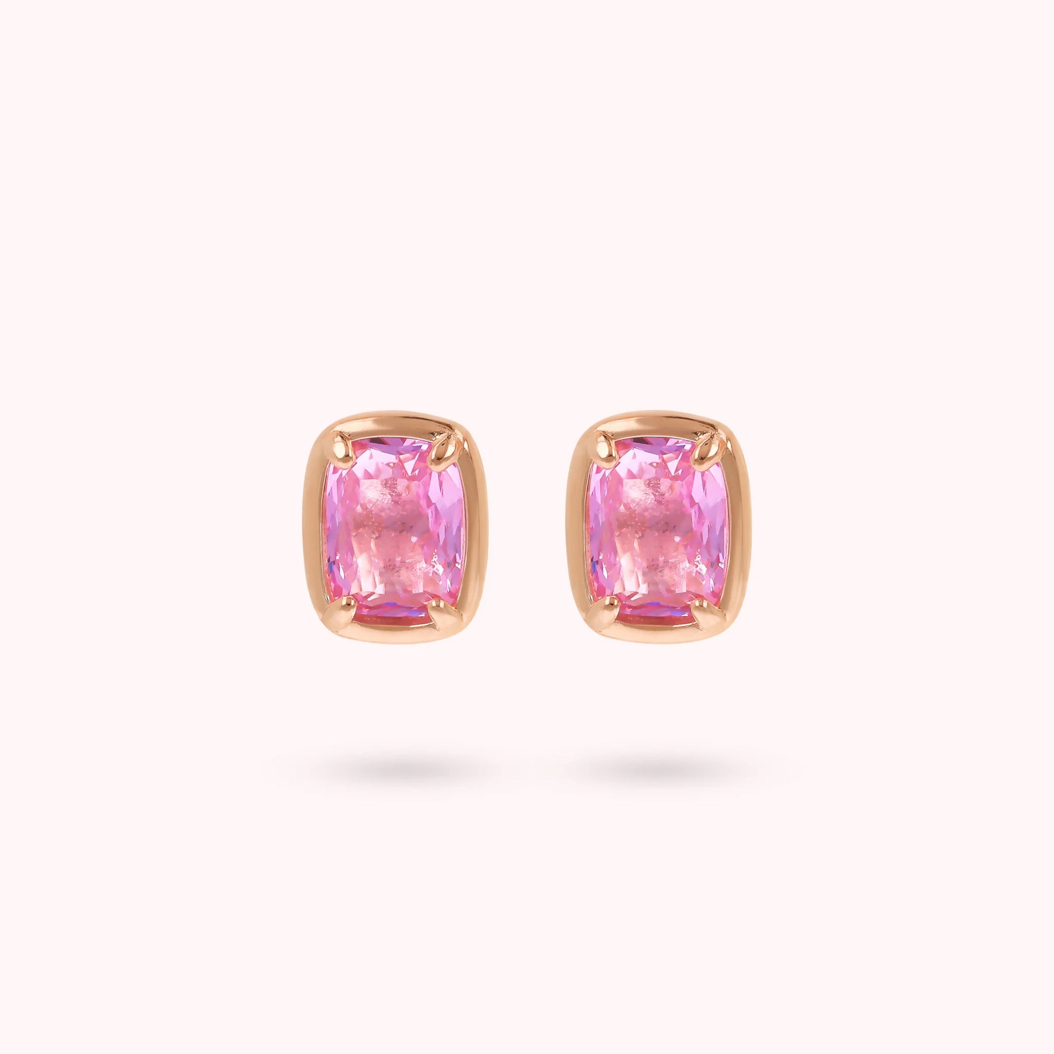 Ohrstecker von Bronzallure aus einer Golden Rosé Legierung, mit 18kt Roségold plattiert, mit zwei prismatischen Edelsteinen im Baguetteschliff (8x6 mm). Mit Steckverschluss und Butterfly.