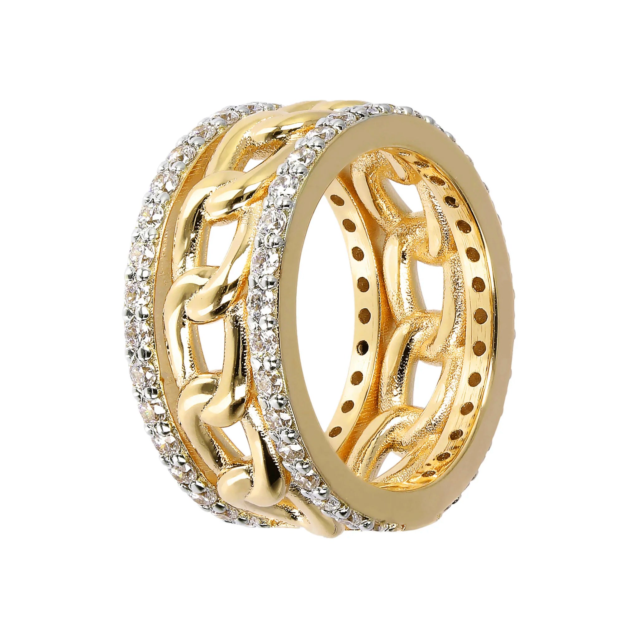 Bronzallure Ring, gefertigt aus einer Golden Rosé Basis, 18 Karat Gelbgold plattiert, verziert mit zwei Strängen aus weißen Zirkonia, leuchtende Qualität, und einem zentralen Teil mit Kettenglied. Elegante Kreation.