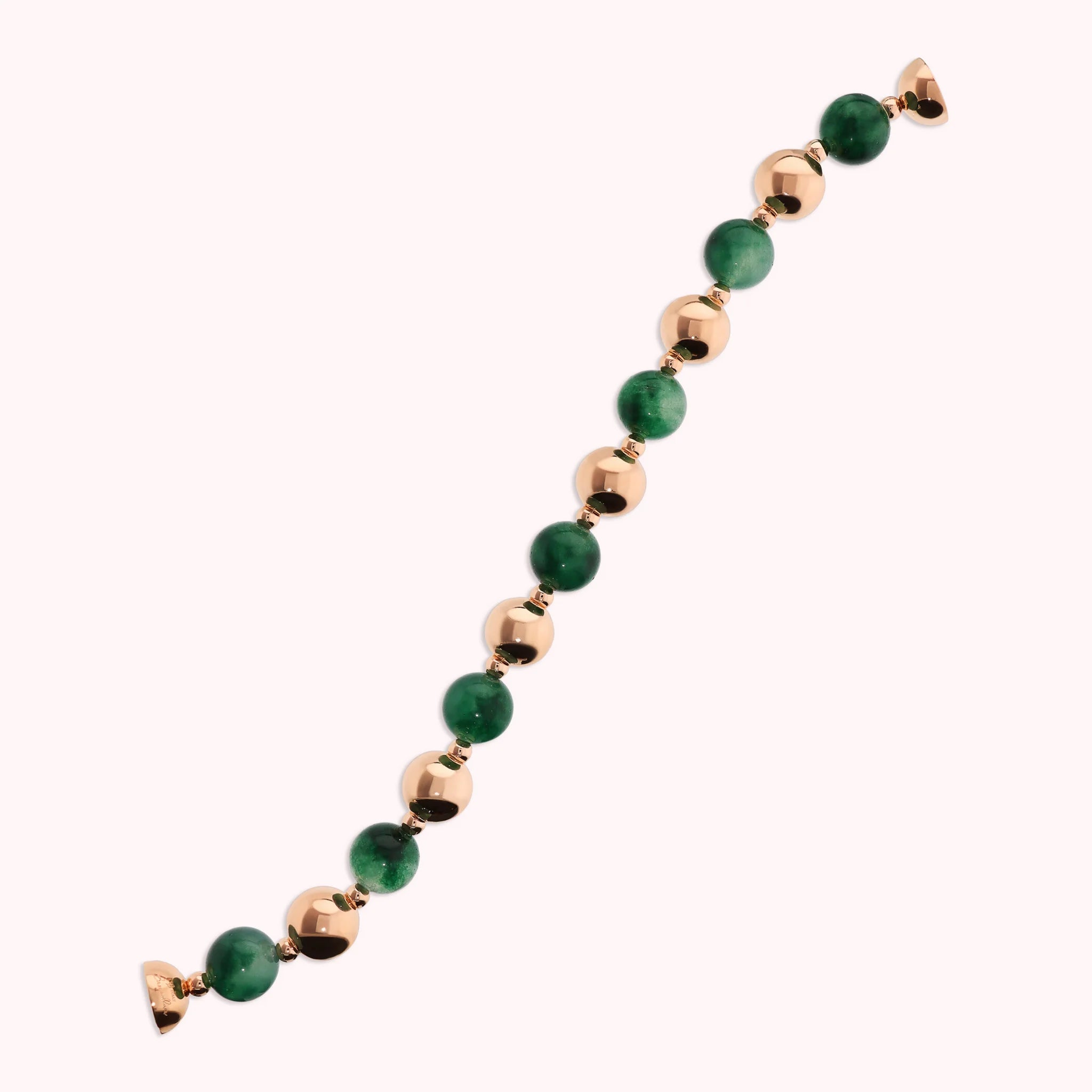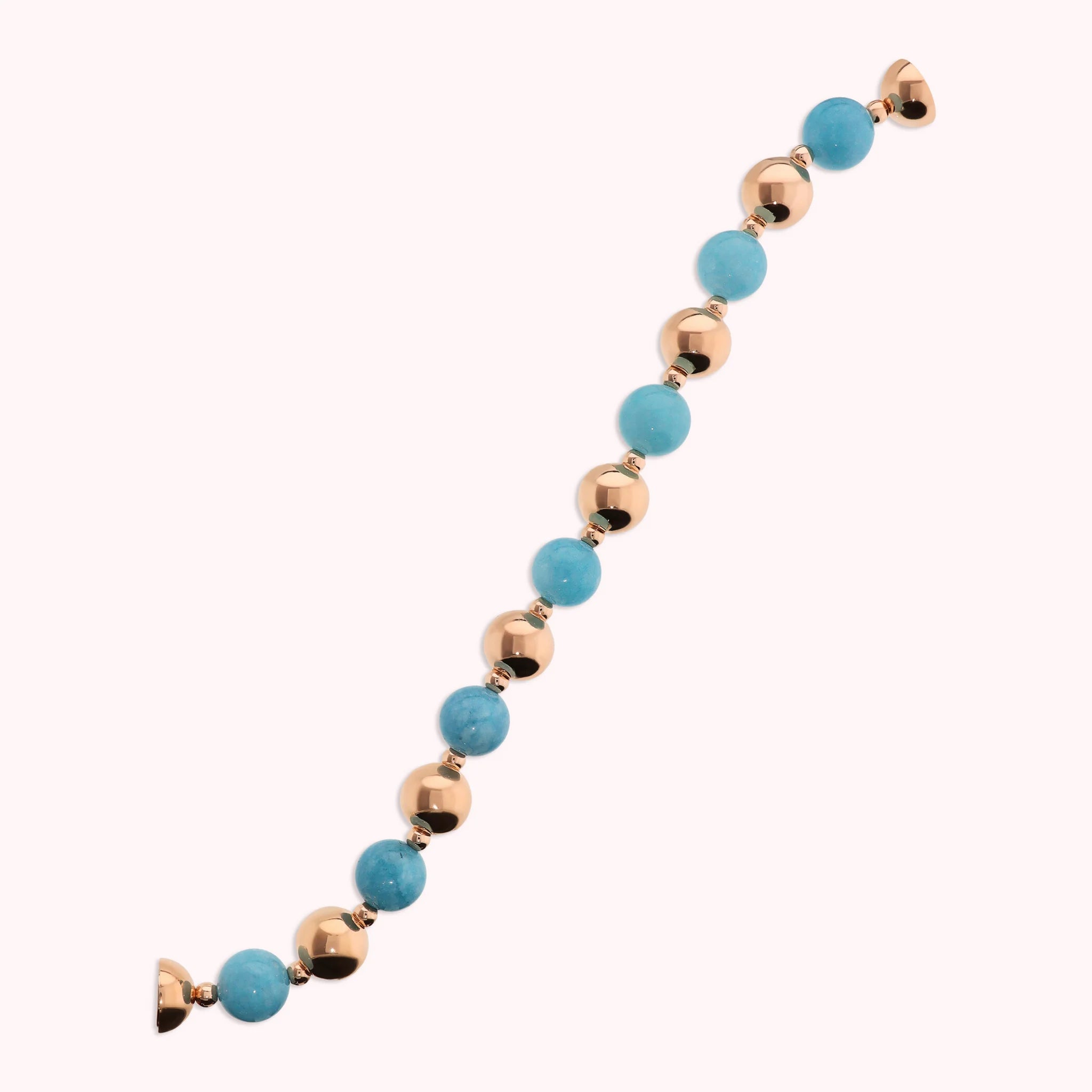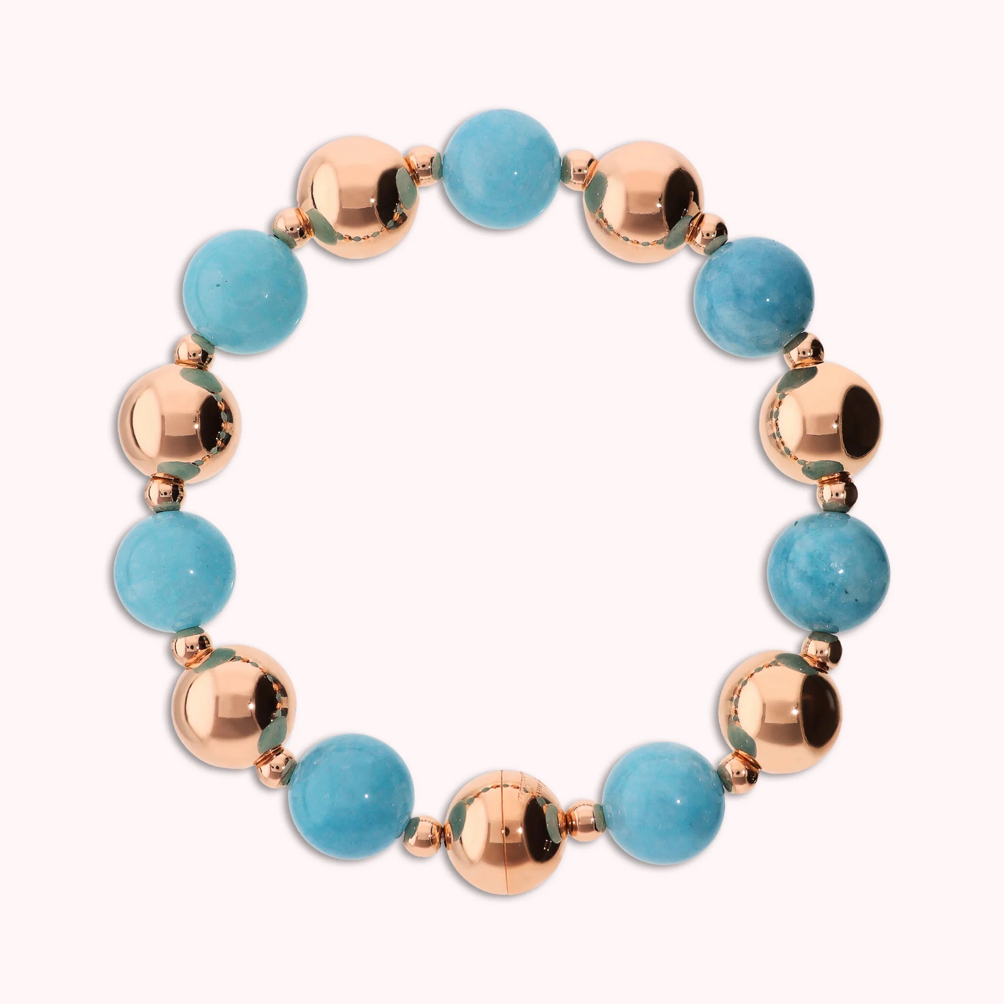 Bracciale Bronzallure aus Golden Rosé Legierung, 18kt rosévergoldet, veredelt mit einem Wechsel aus glänzenden Perlen (12mm) und Natursteinen (12mm). Versteckter Magnetverschluss.
