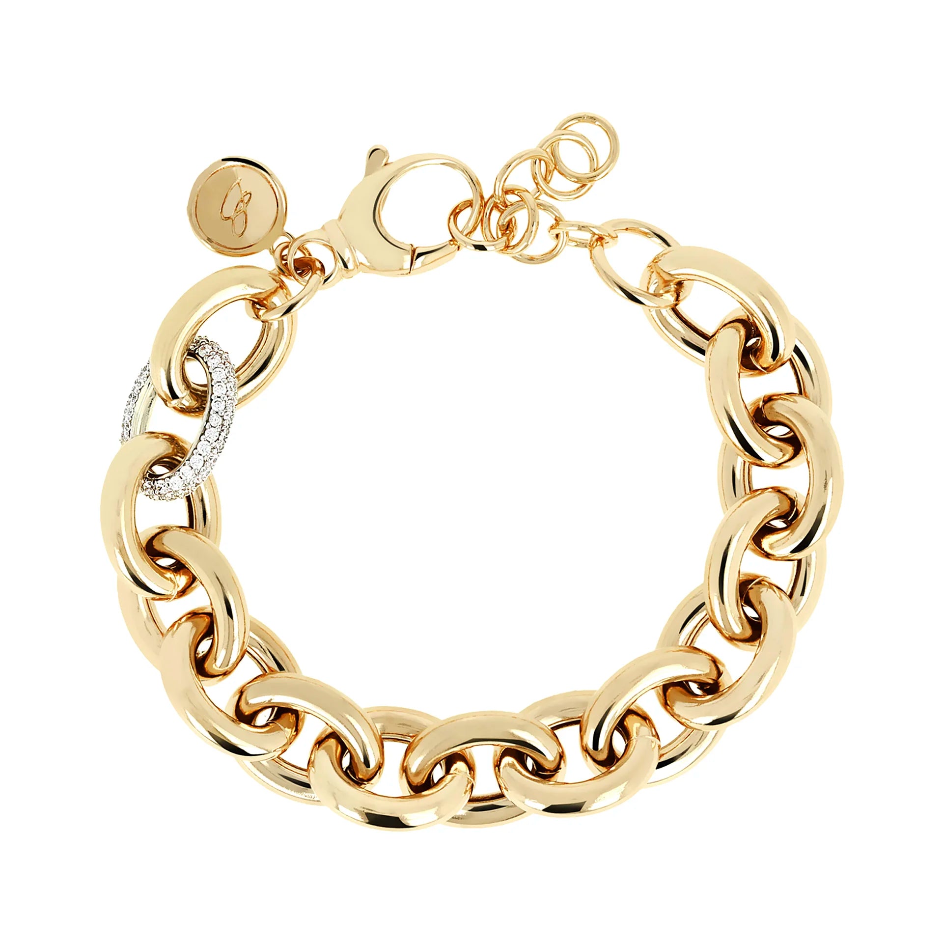 Goldenes Maxi-Gliederarmband mit Pavé-Element aus Zirkonia
