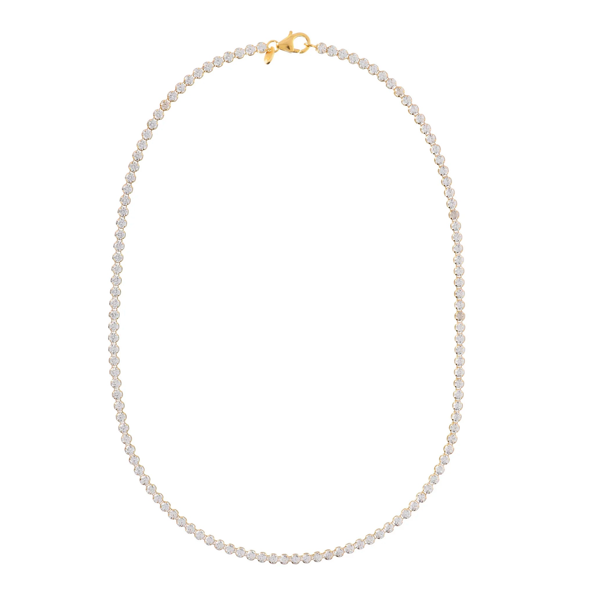 Bronzallure-Tennishalskette aus Golden Rosé-Legierung, 18 Karat Gelbgold vergoldet, mit Zirkonia, Karabinerhakenverschluss. Erhältlich in zwei Größen: kurz (45,7 cm) und lang (60,9 cm). Elegante Kreation mit perfektem Design, das Ihren Look zum Strahlen bringt.