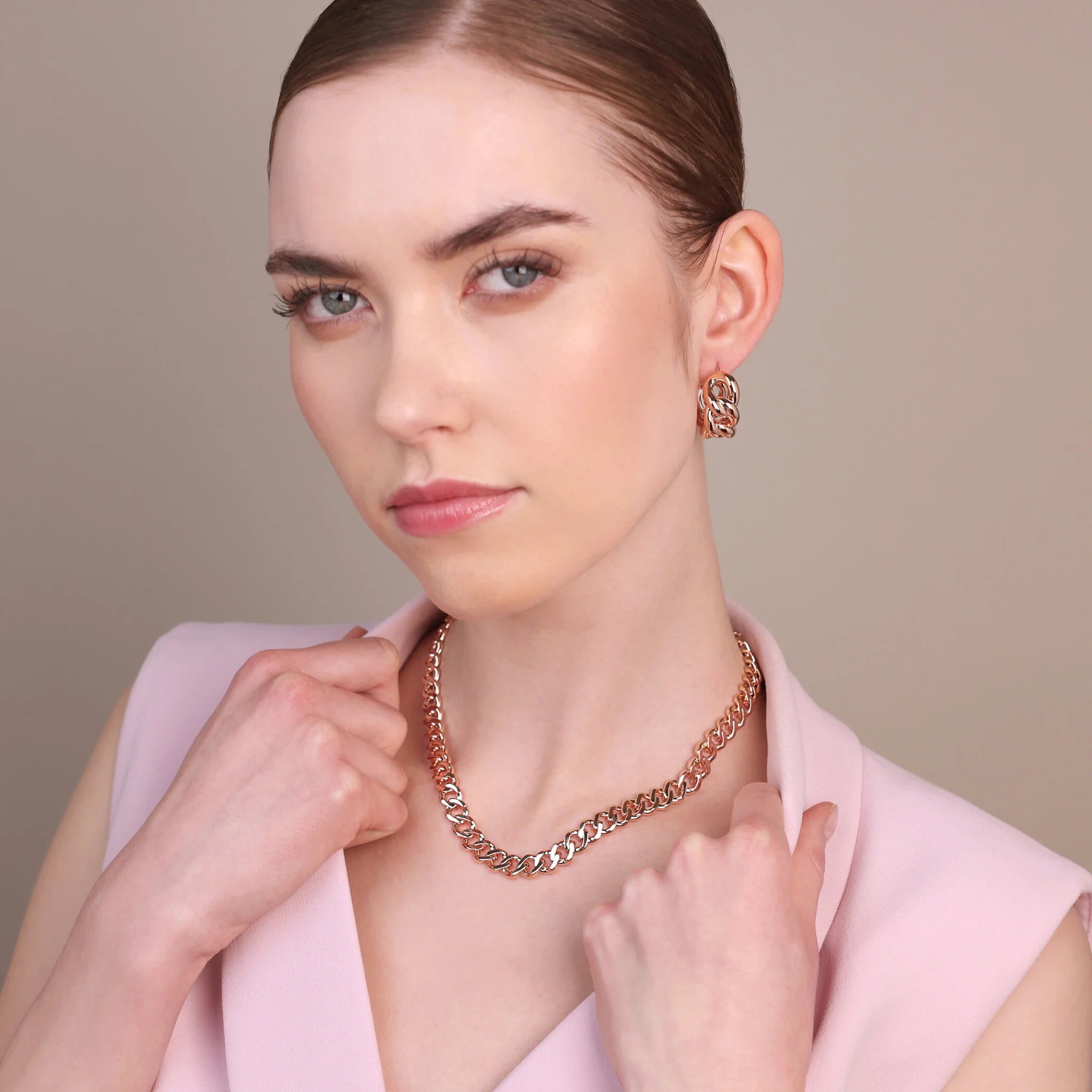 Ohrstecker von Bronzallure aus einer Golden Rosé Legierung, mit 18kt Roségold beschichtet, mit glänzender Ankerkette. Bajonettverschluss.