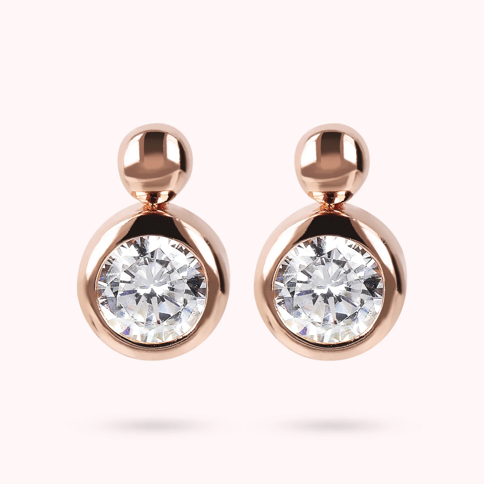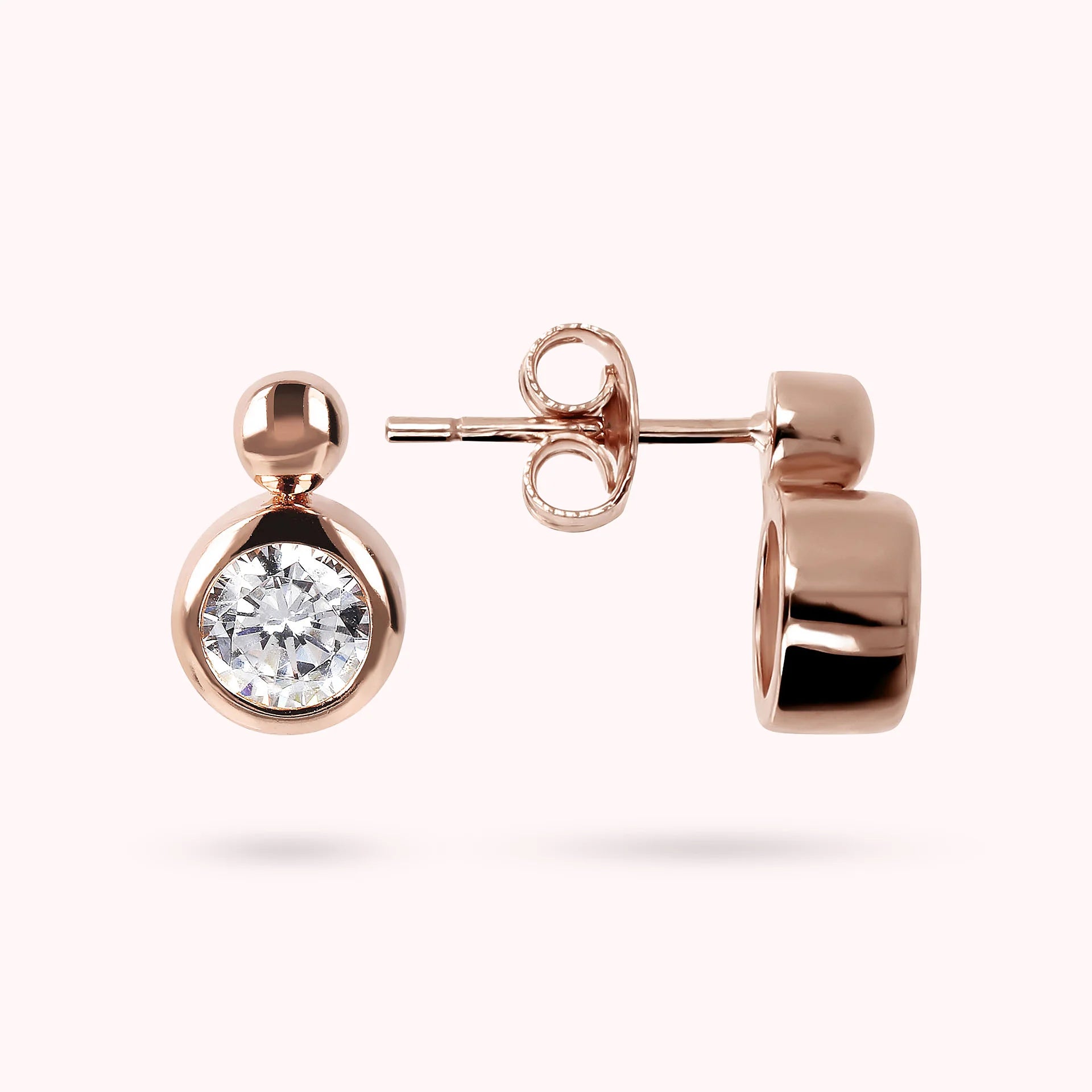 Bronzallure-Ohrstecker auf Golden Rosé-Basis, 18-Karat rosévergoldet, verziert mit einem weißen Lichtpunkt aus kubischem Zirkonia. Elegante Kreation mit perfektem Design, das Ihren Look zum Strahlen bringt.