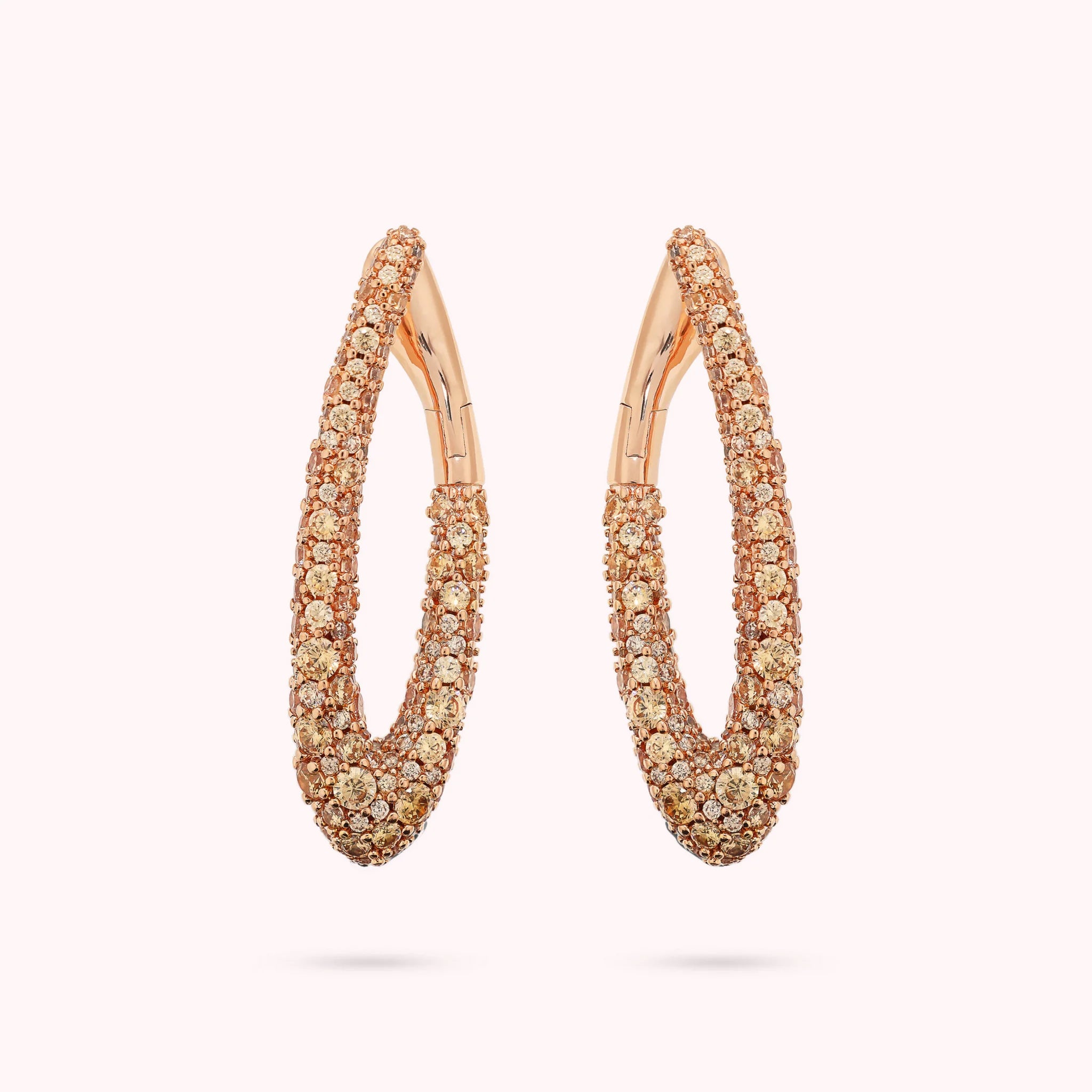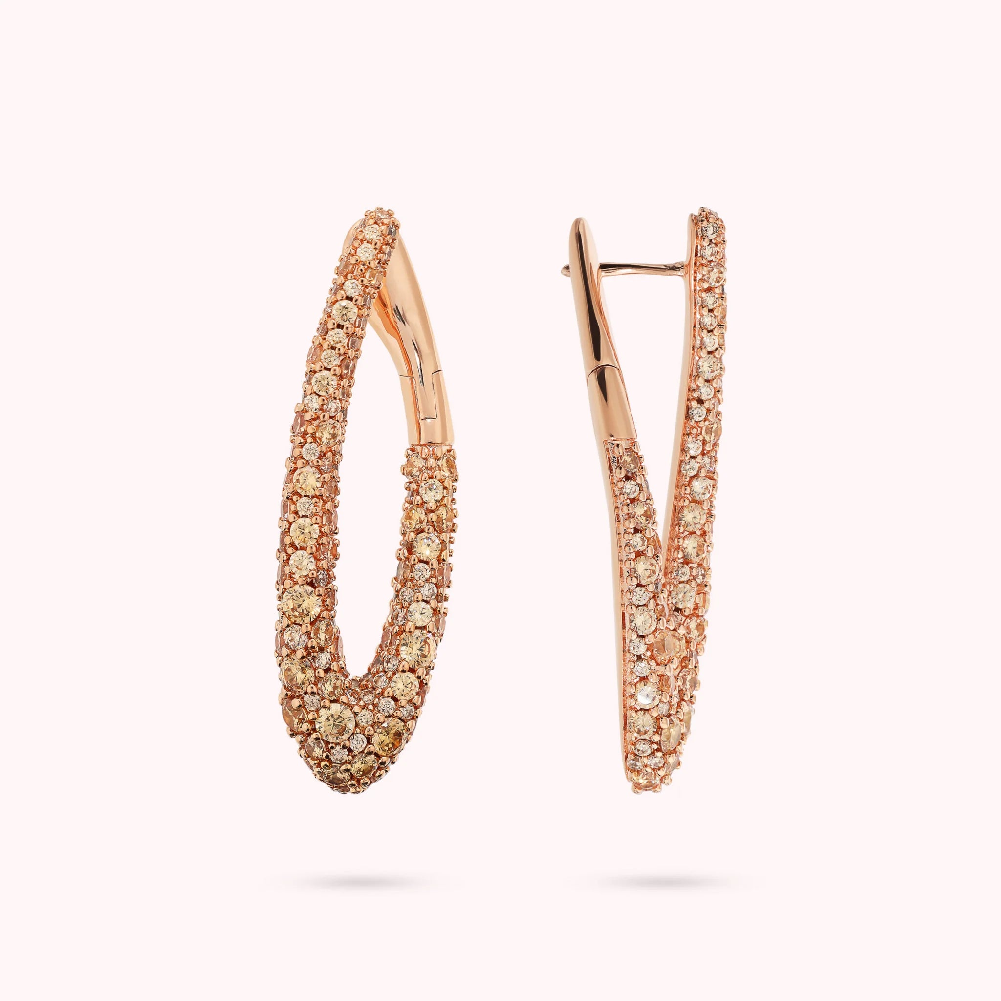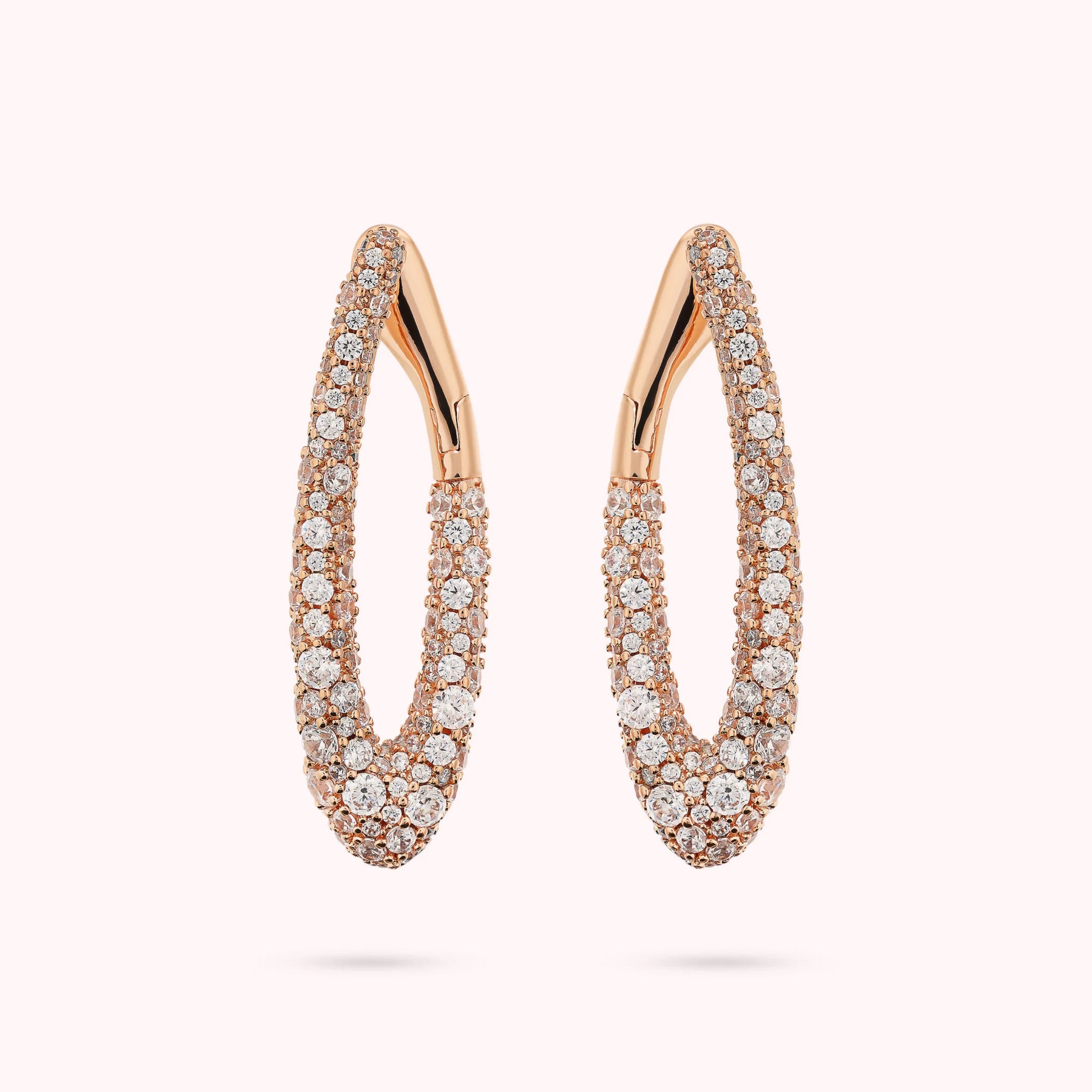 Ovale Ohrringe von Bronzallure aus einer Golden Rosé Legierung, mit 18kt Roségold plattiert, mit Pavé aus Zirkonia, in hochwertiger Ausführung. Verschluss mit Stift und Hebel.