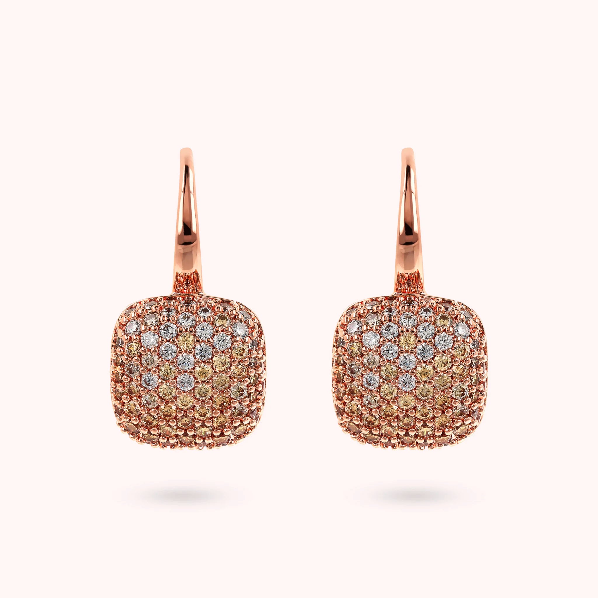 Bronzallure-Ohrringe aus Golden Rosé-Legierung, 18 Karat rosévergoldet, quadratische Form (12 x 12 mm) mit leuchtendem Zirkonia-Pavé; Hakenverschluss; Länge von 2cm.