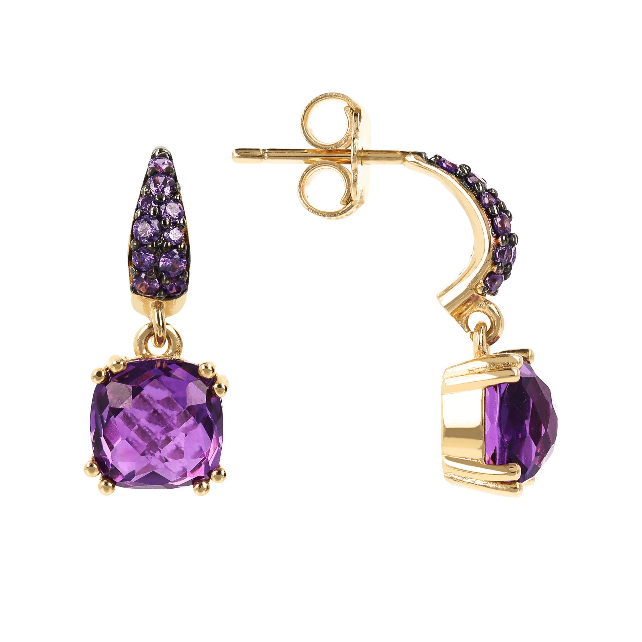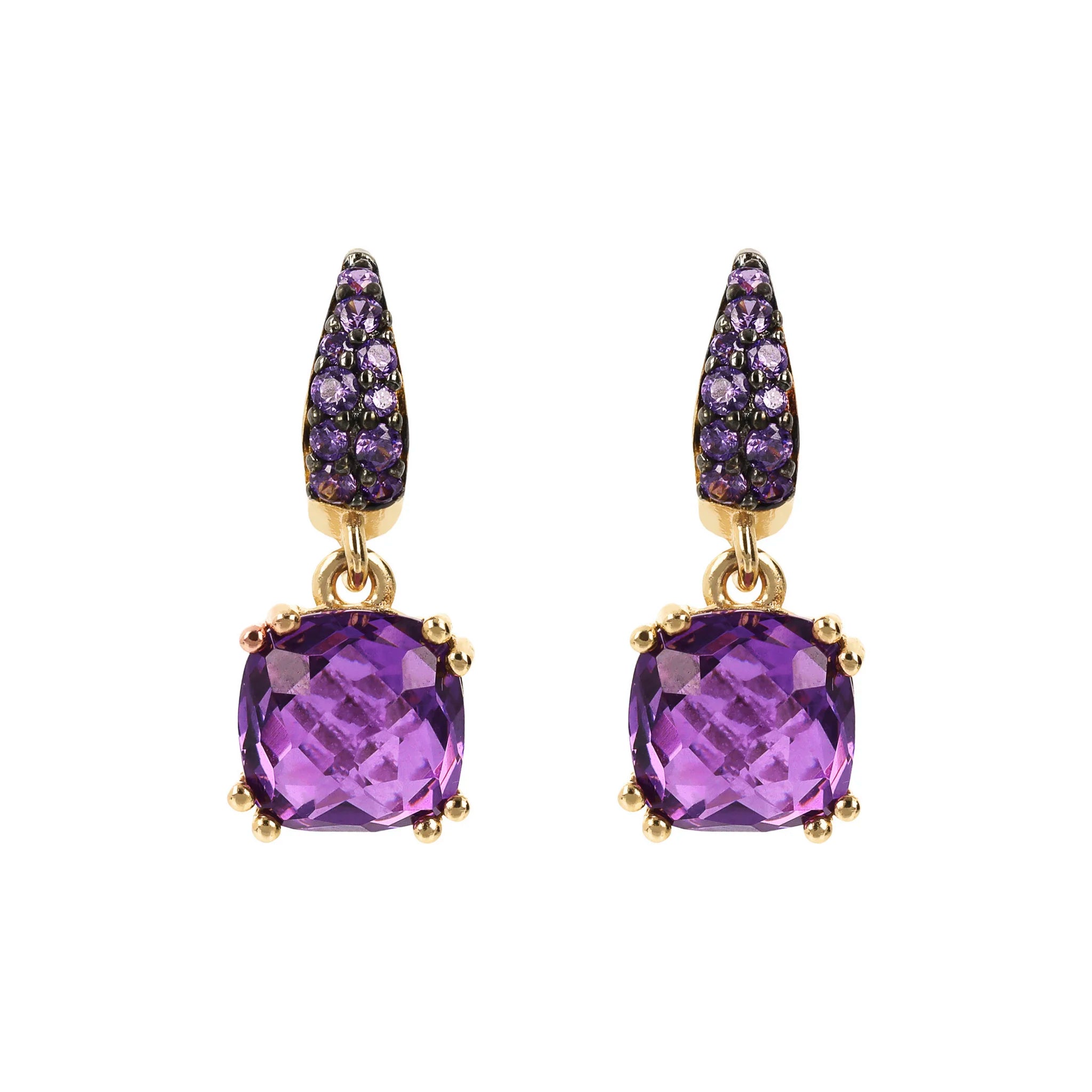 Brisur-Ohrringe von Bronzallure, gefertigt aus der Legierung Golden Rosé, 18 Karat gelbvergoldet, verziert mit pavé Gegenmaschen und zwei quadratischen Prisma-Gem-Steinen (8x8 mm); Hakenverschluss.