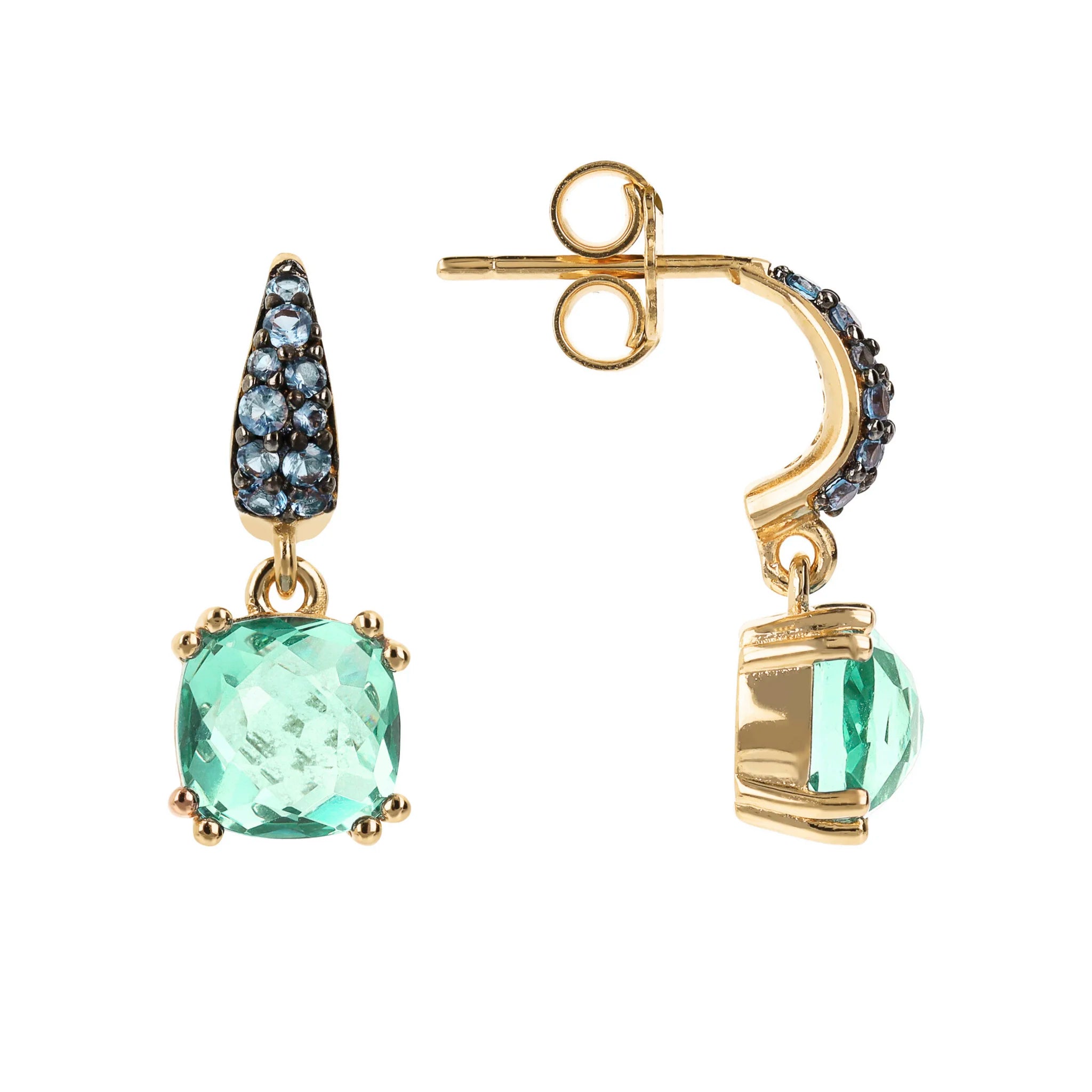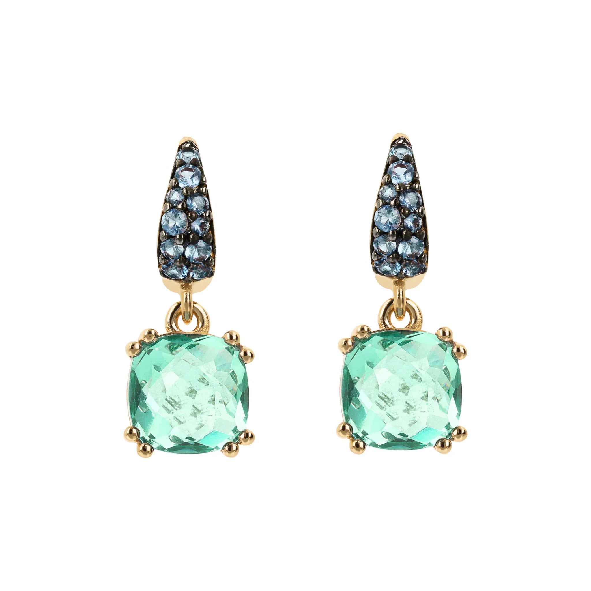 Goldene hängende Ohrringe mit quadratischem Prisma-Gem und Pavé