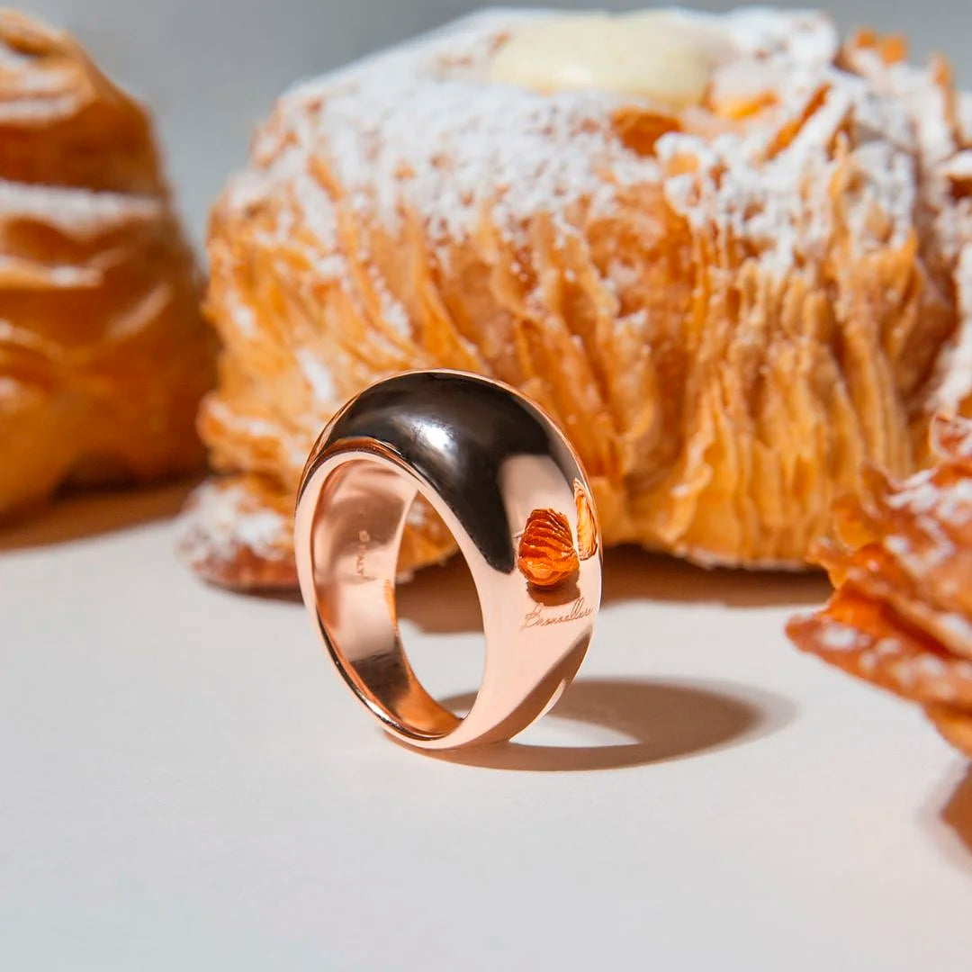 Bronzallure abgerundeter Ring auf einer Golden Rosé-Basis, 18-Karat rosévergoldet mit polierter Oberfläche.