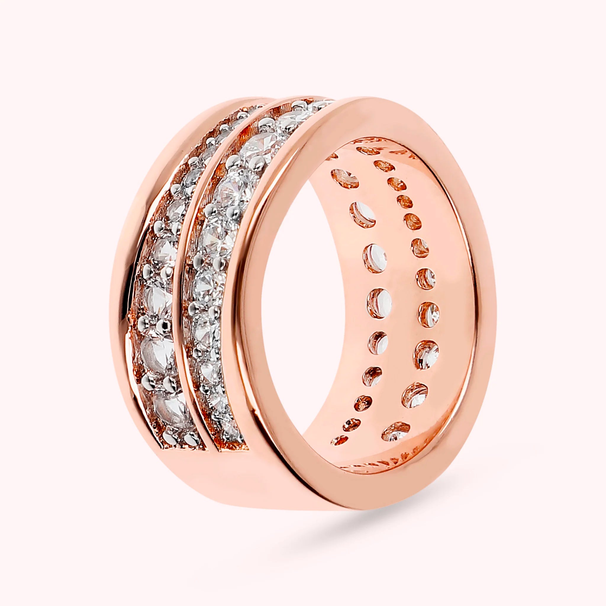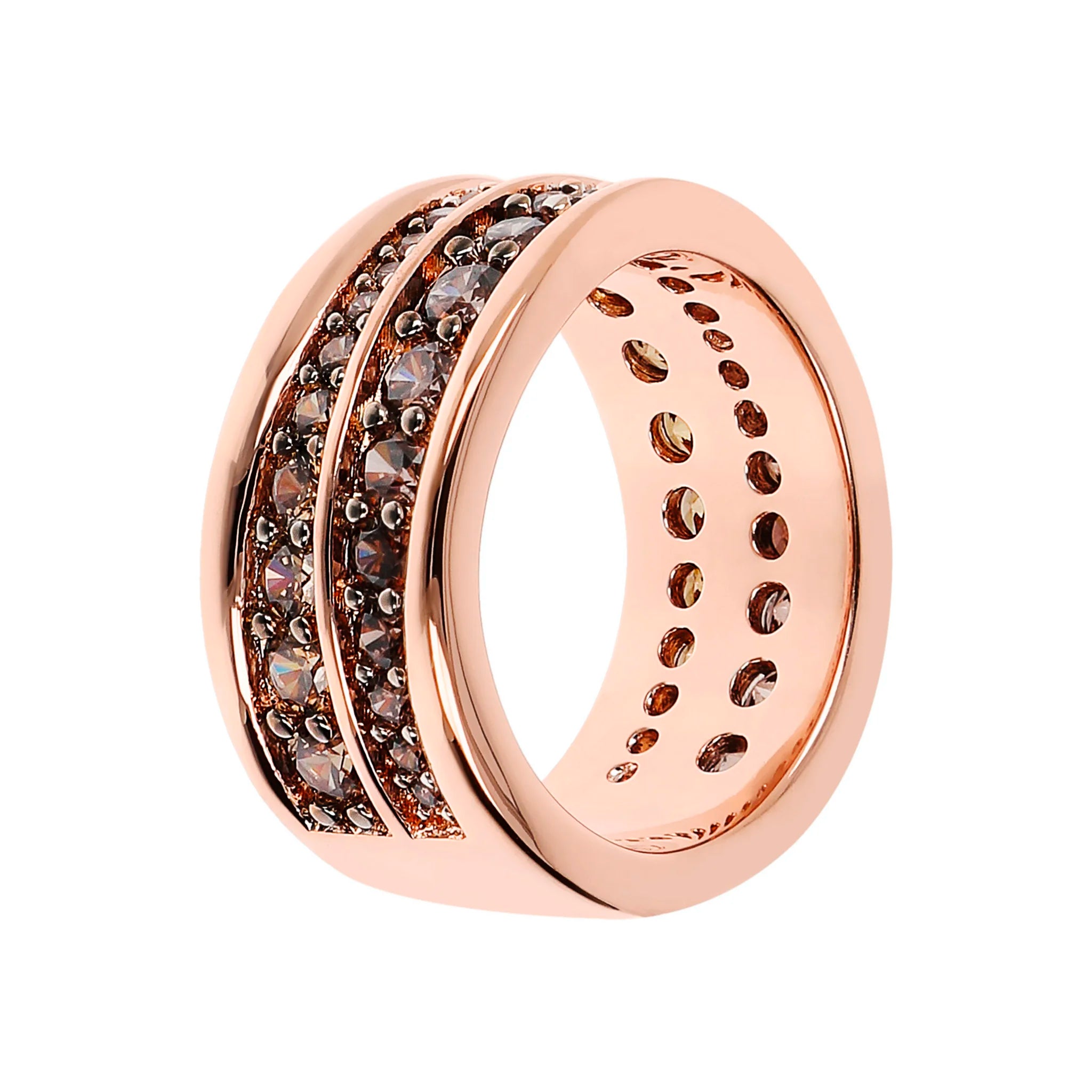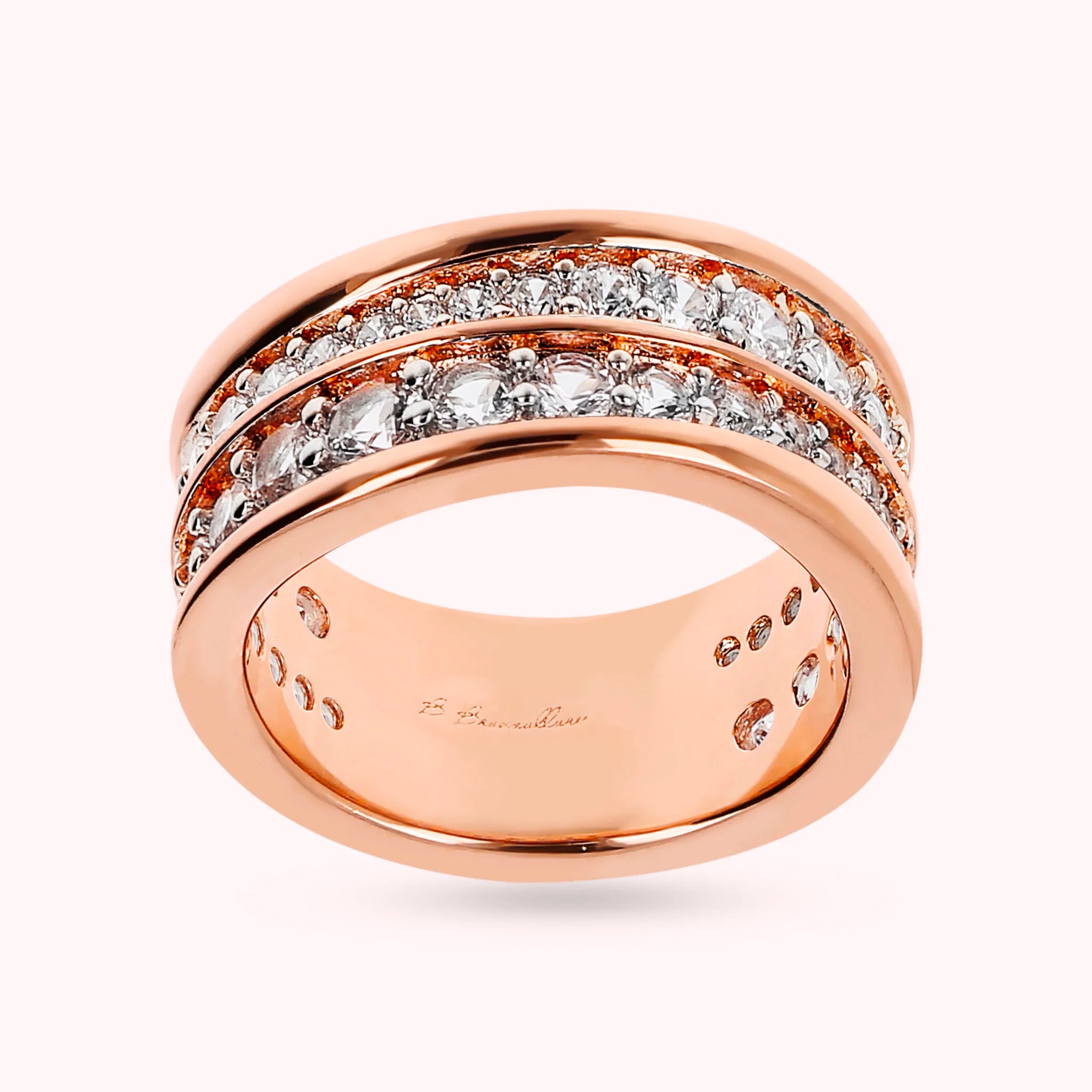 Bronzallure-Ring aus einer Golden-Rosé-Legierung, 18-Karat rosévergoldet, mit leuchtenden Zirkonia, die ein Wellendesign erzeugen. Elegante und perfekte Kreation, die Ihren Look zum Strahlen bringt.