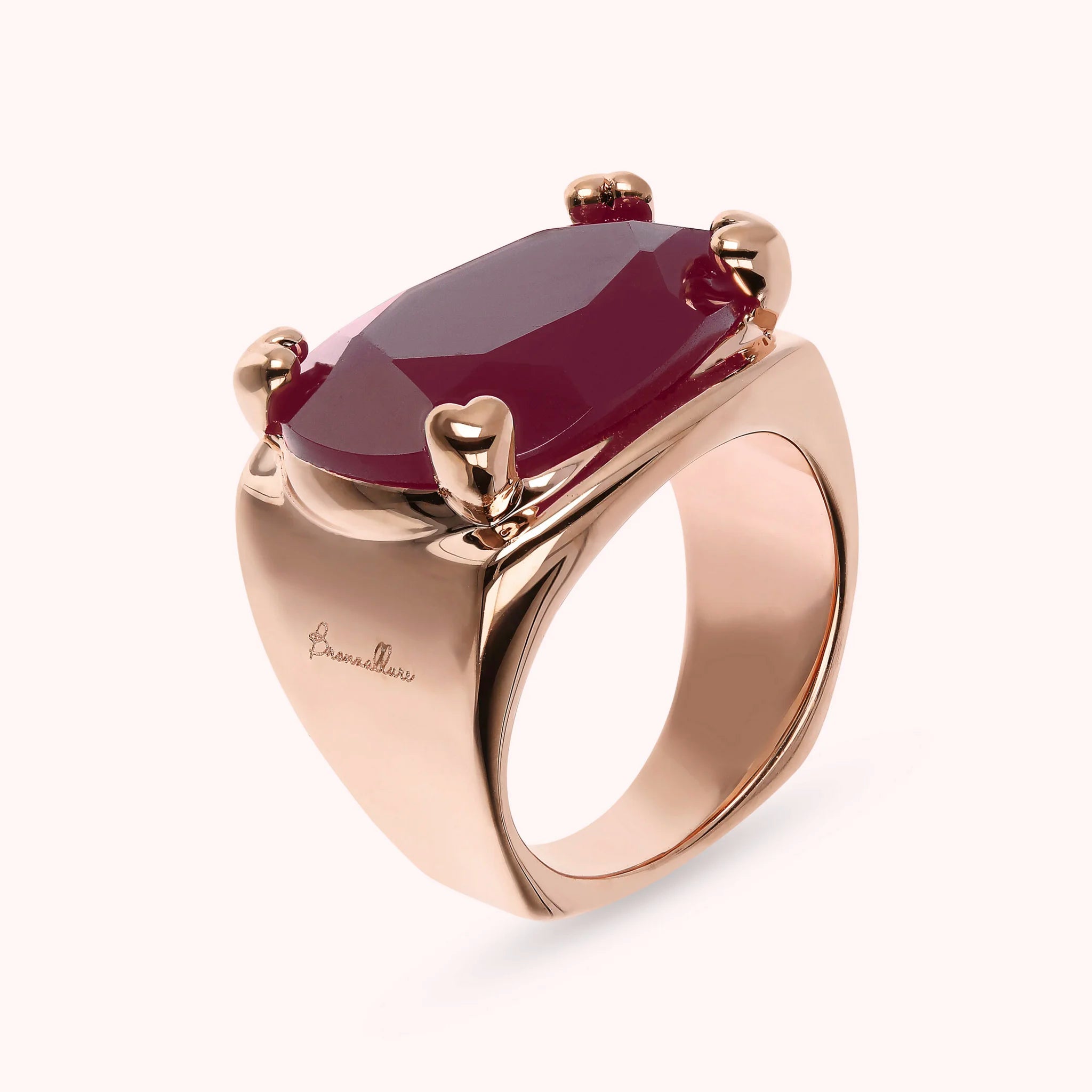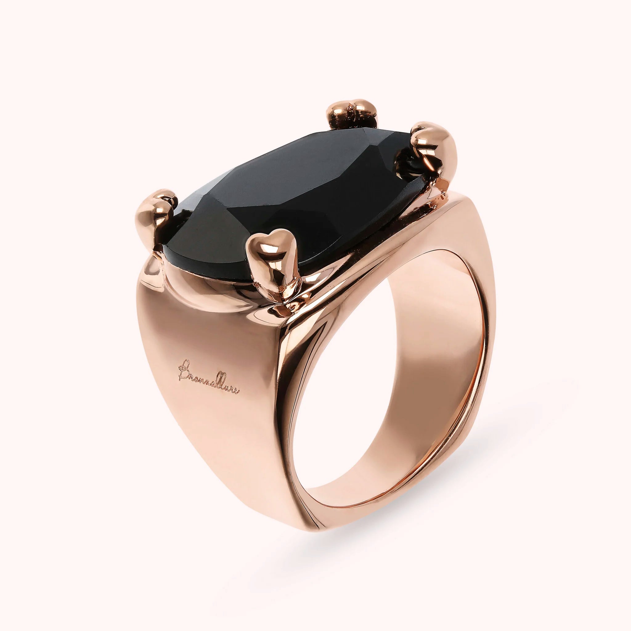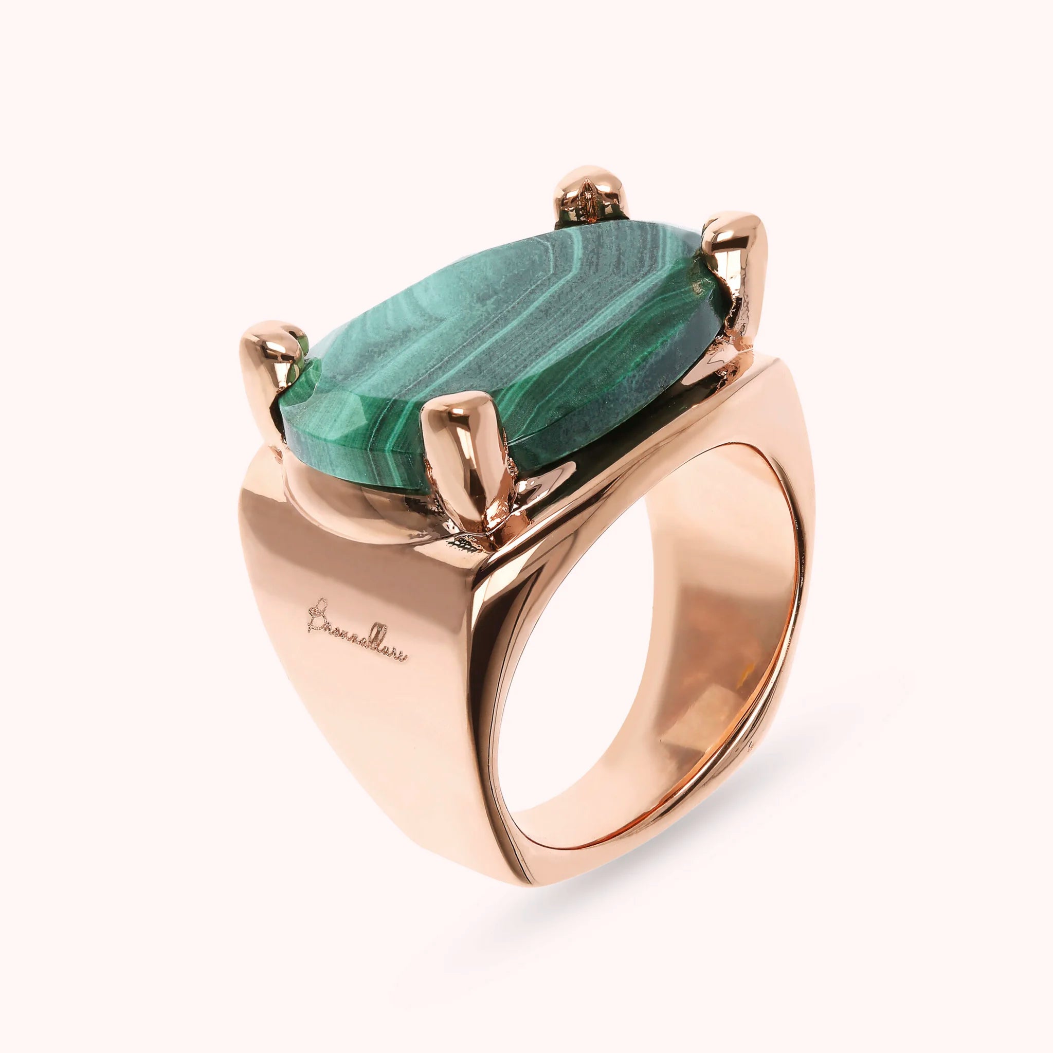 Bronzallure Chevalier-Ring aus einer Golden-Rosé-Legierung, 18-karätig rosévergoldet, verziert mit einem ovalen Naturstein.
