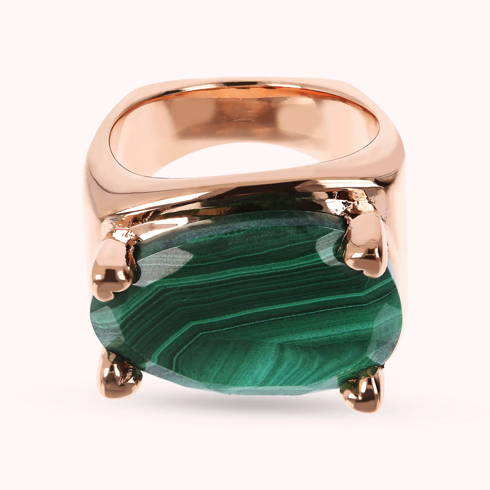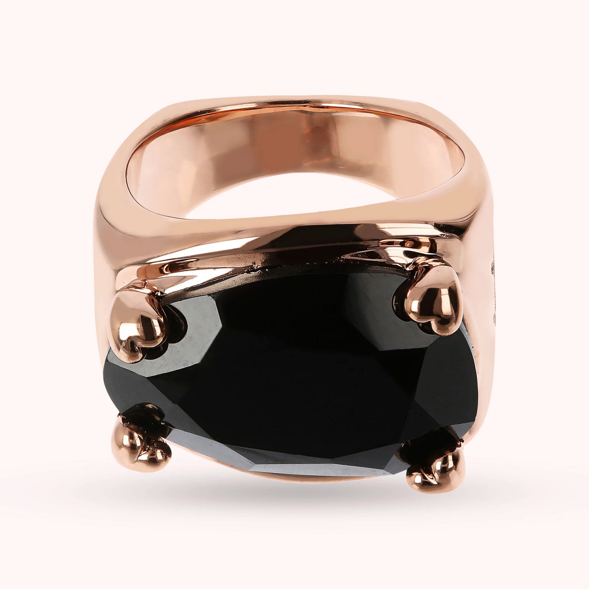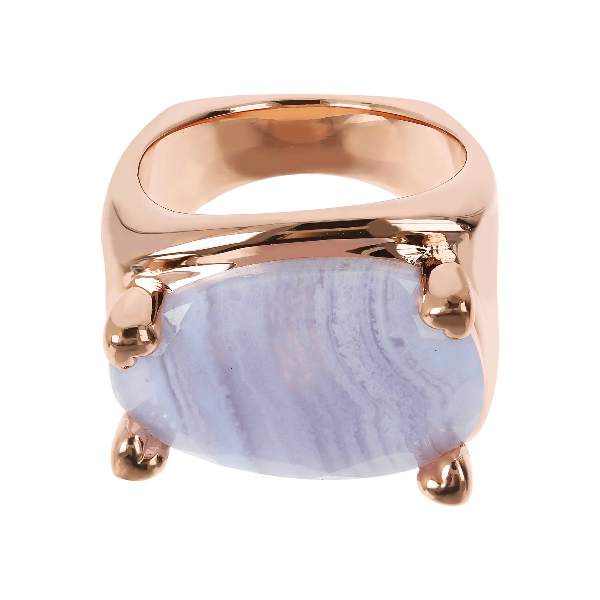 Bronzallure Chevalier-Ring aus einer Golden-Rosé-Legierung, 18-karätig rosévergoldet, verziert mit einem ovalen Naturstein.