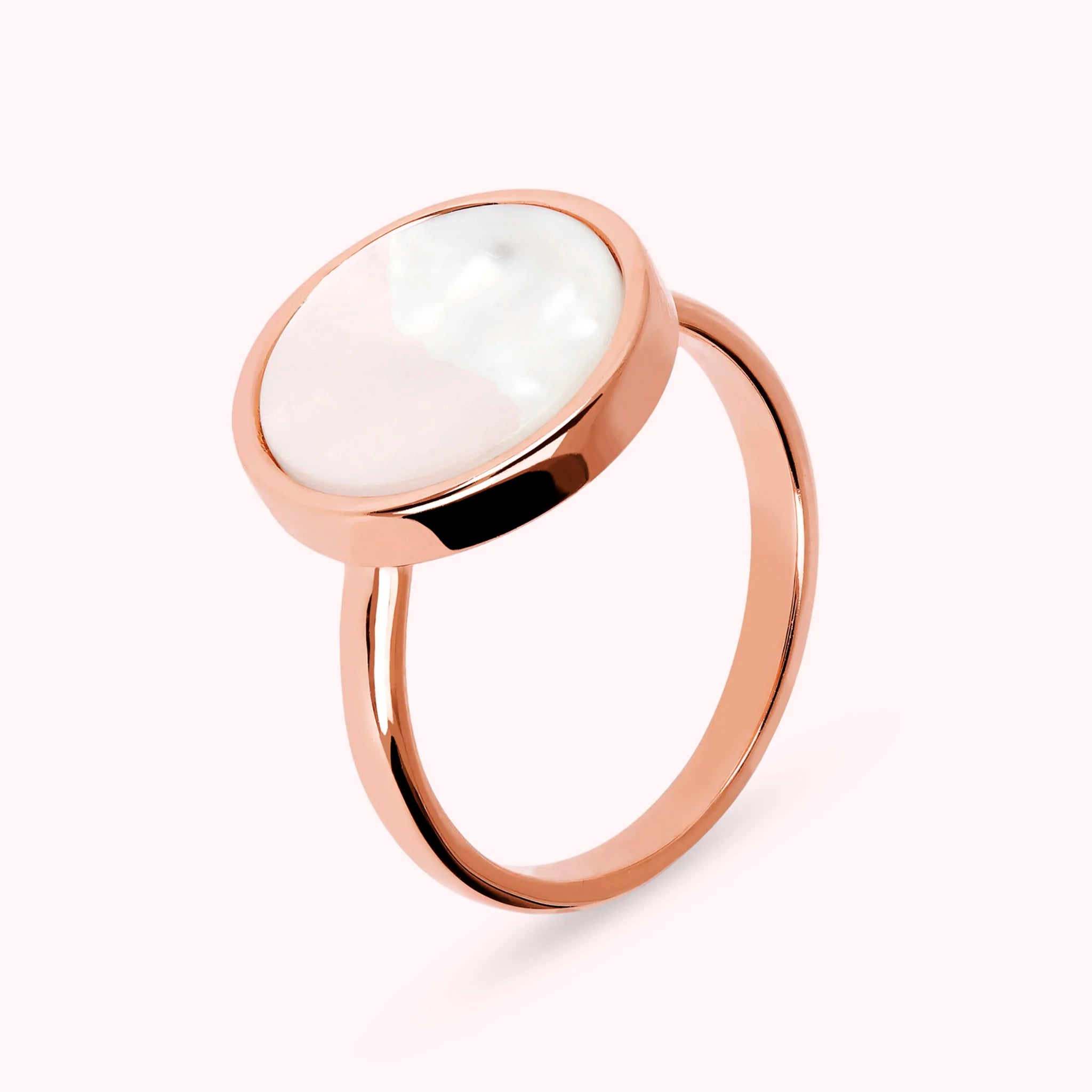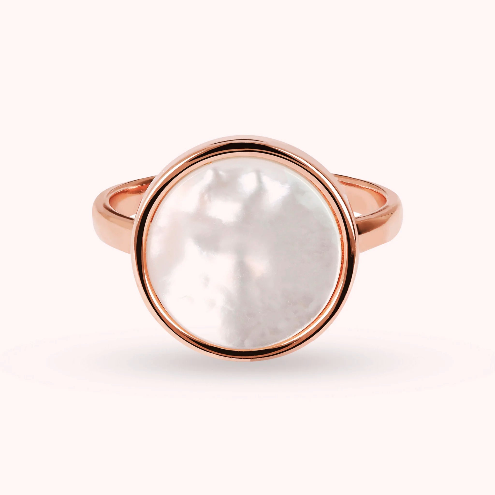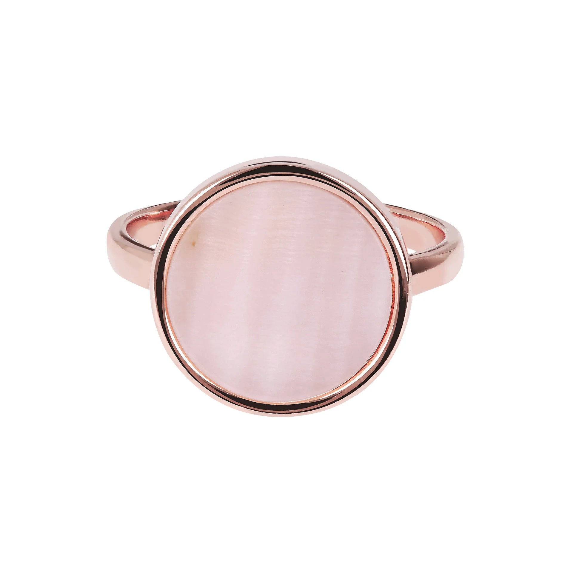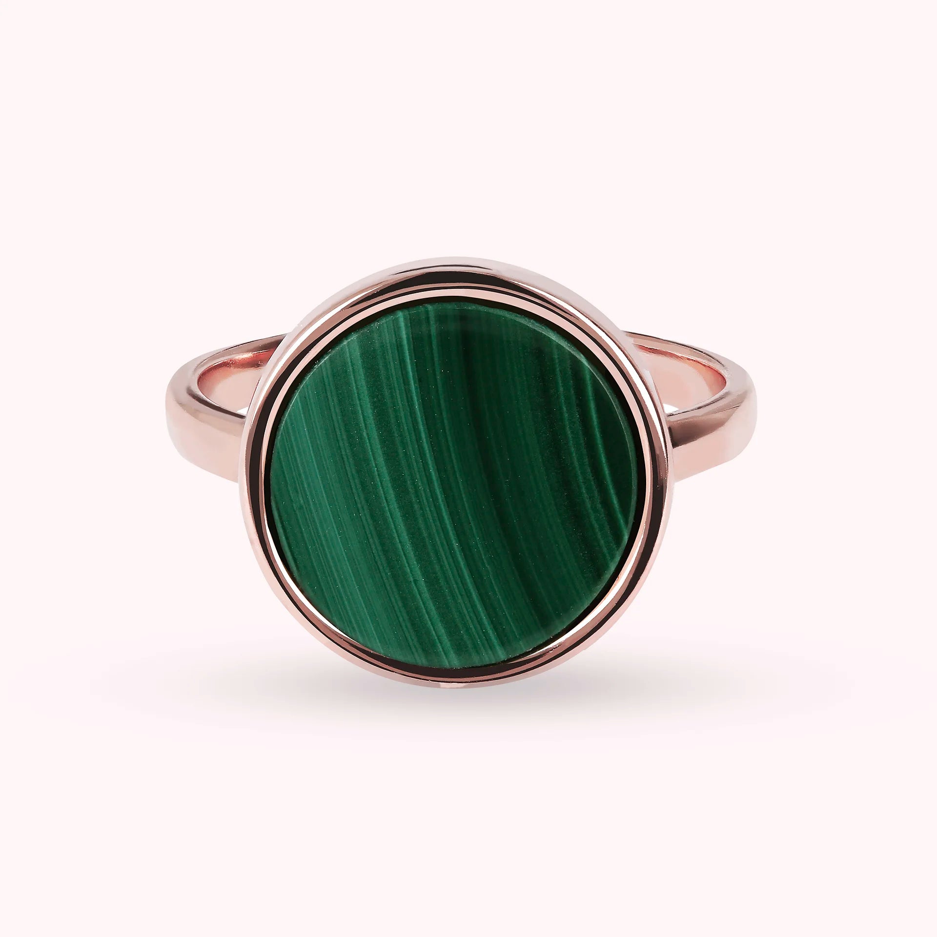 Bronzallure-Cocktailring aus einer Golden-Rosé-Legierung, 18-karätig rosévergoldet, verziert mit einem runden (1,2 cm) in der Mitte positionierten Naturstein in leuchtenden Farben.