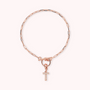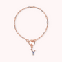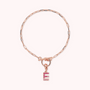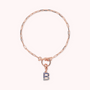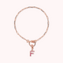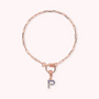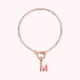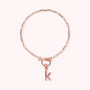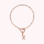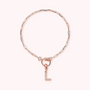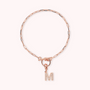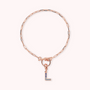 Bronzallure-Armband aus Golden Rosé-Legierung, 18 Karat rosévergoldet, mit verlängerter Gliederkette und Zirkonia-Pavé-Buchstabenanhänger, T-Bar-Verschluss.