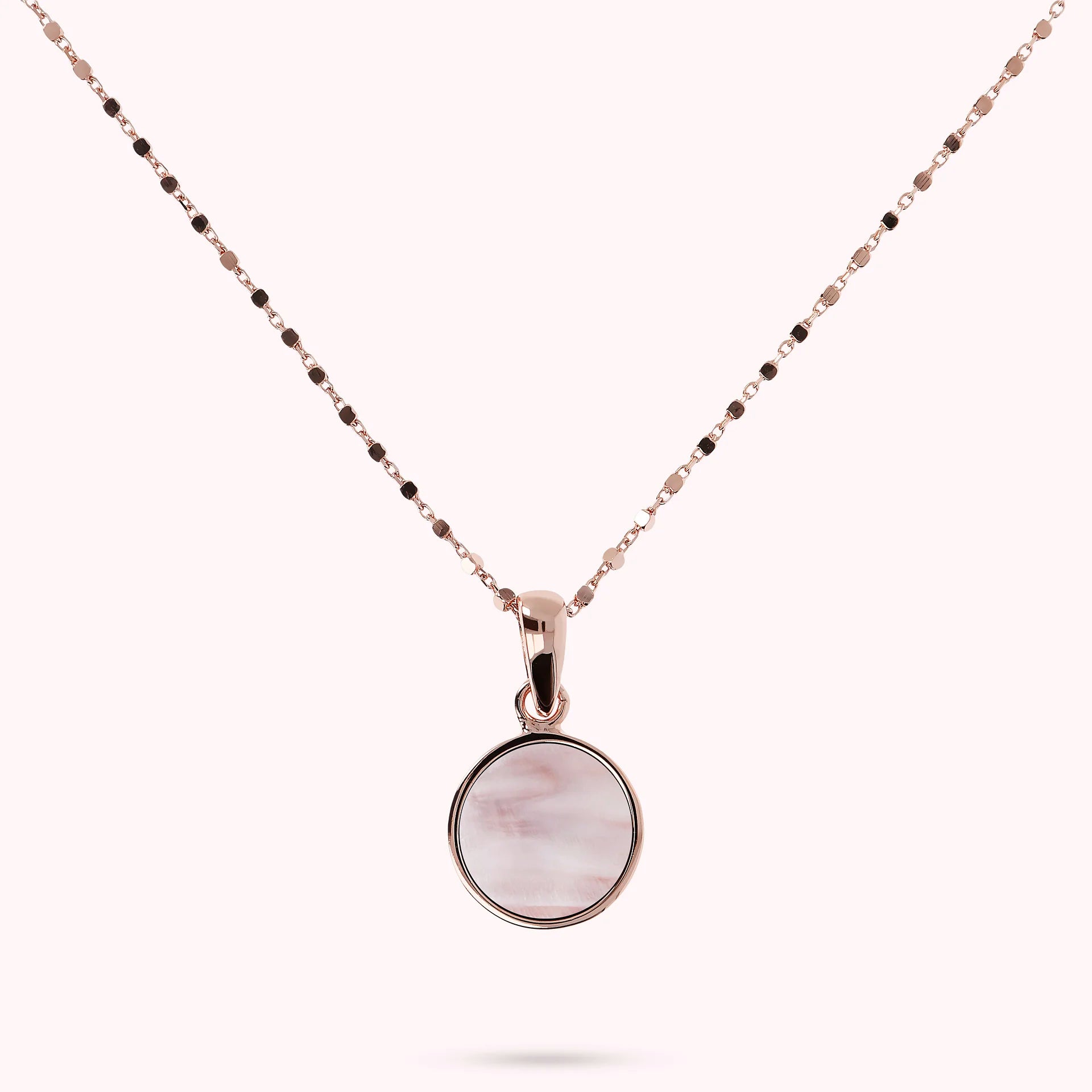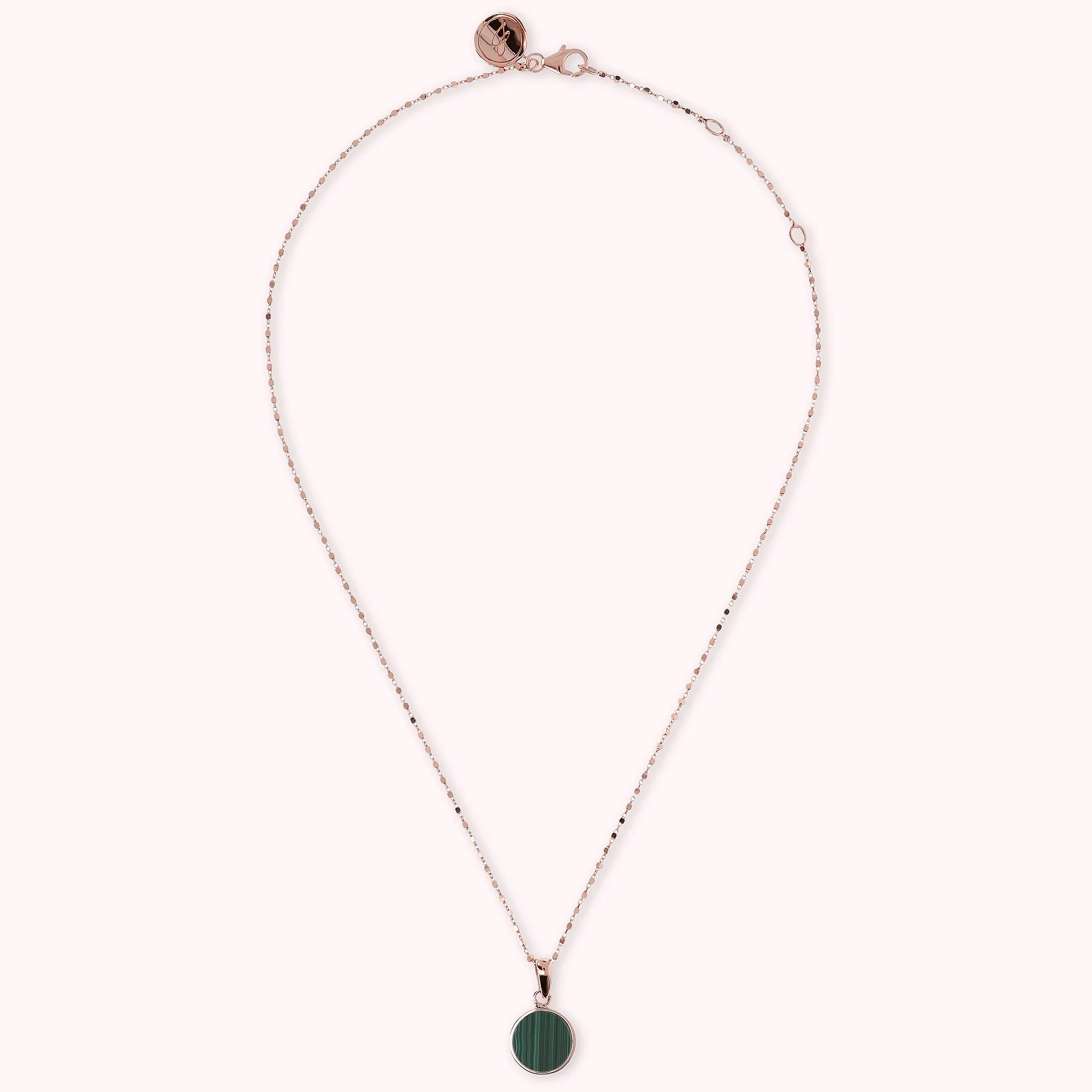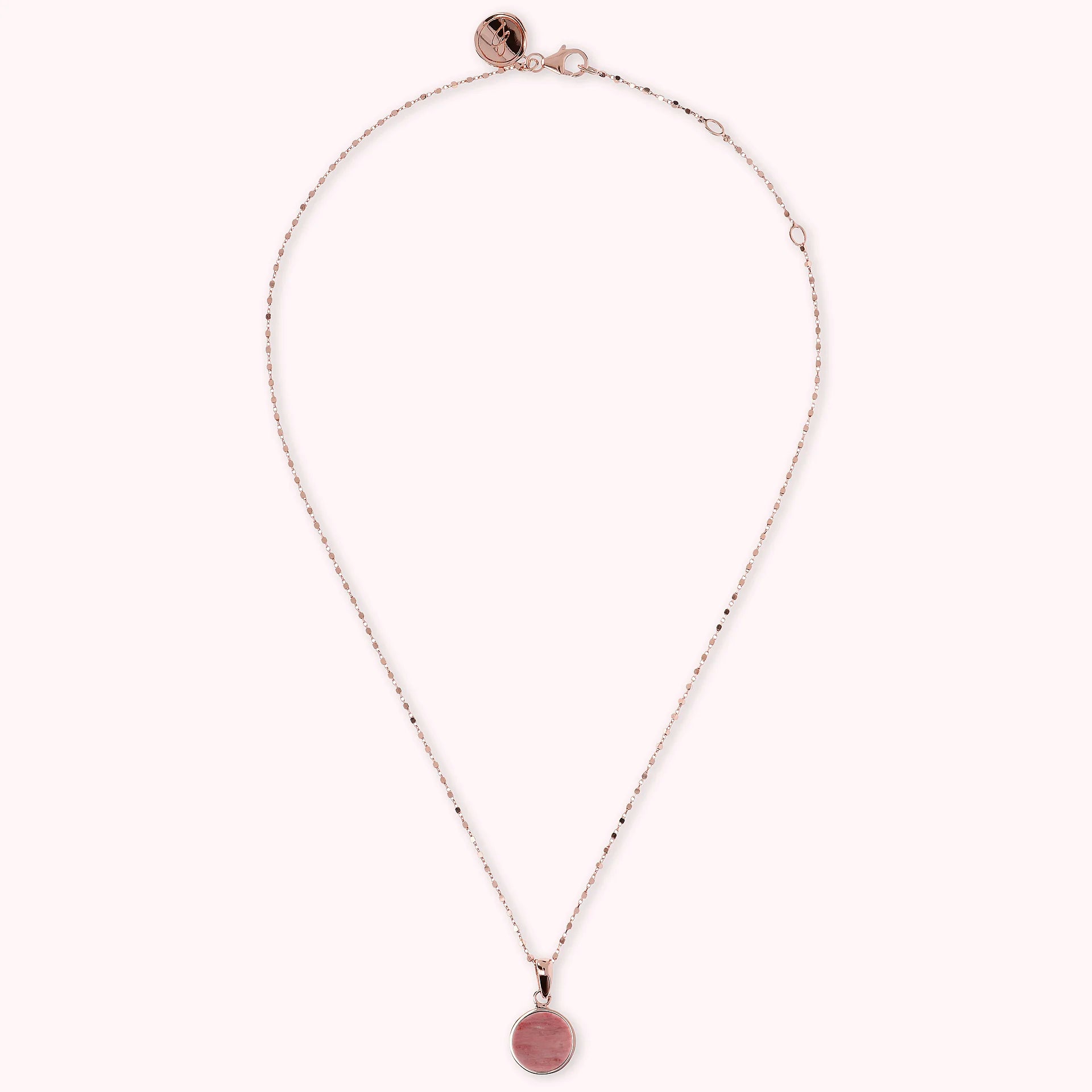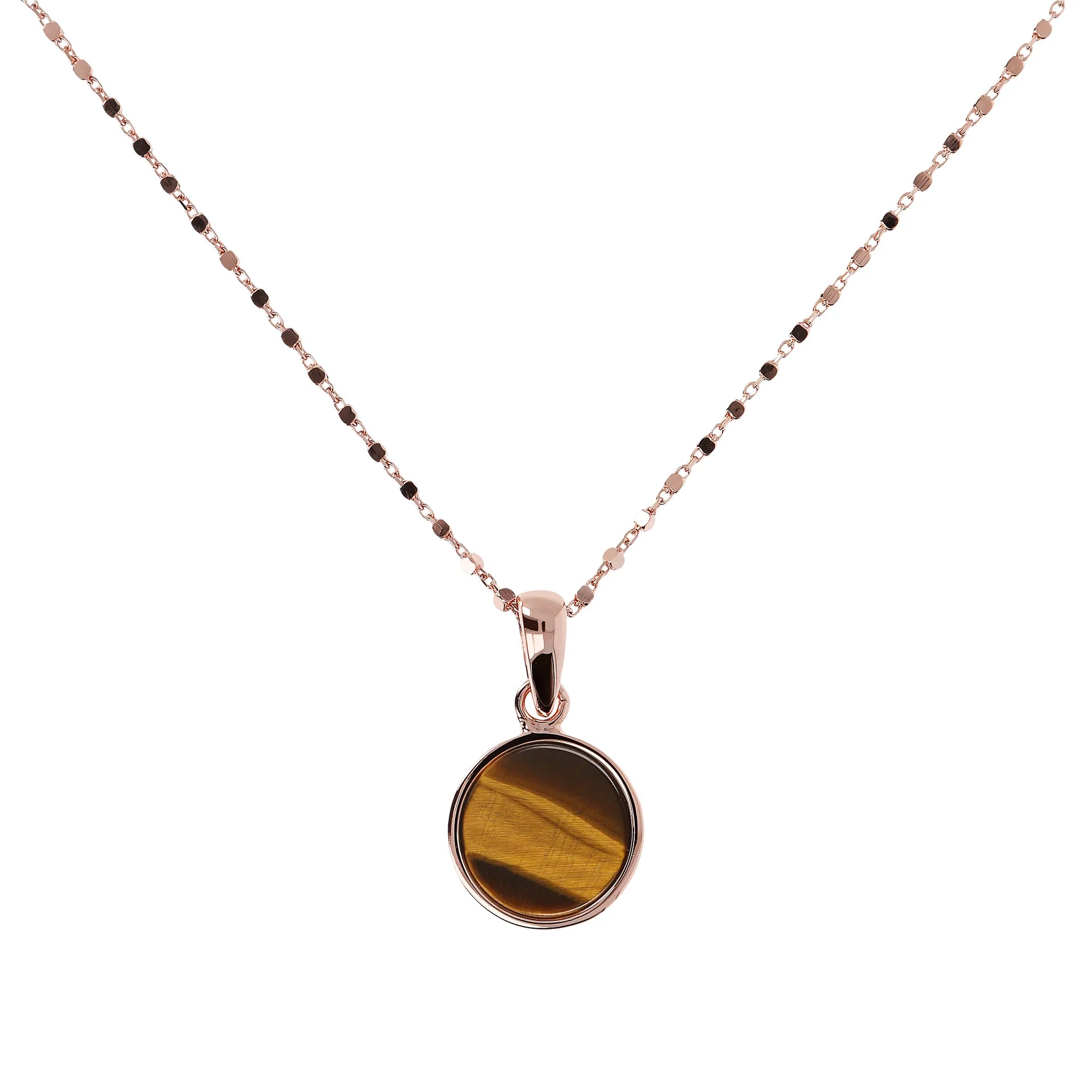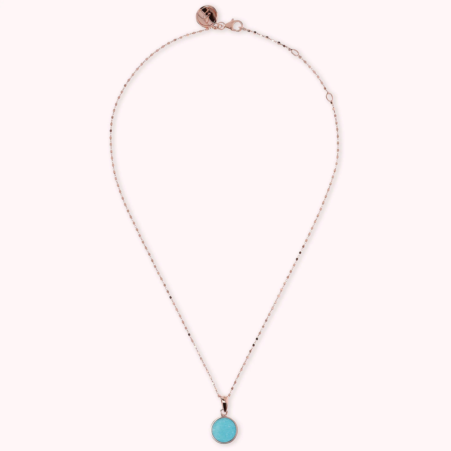 Bronzallure-Halskette aus Golden Rosé-Legierung, 18 Karat rosévergoldet, mit Würfelkette, verziert mit einem kleinen Scheibenanhänger aus Naturstein (14 mm), Karabinerverschluss und verstellbarer Länge mit drei Ringen (41 cm / 44 cm / 47 cm).