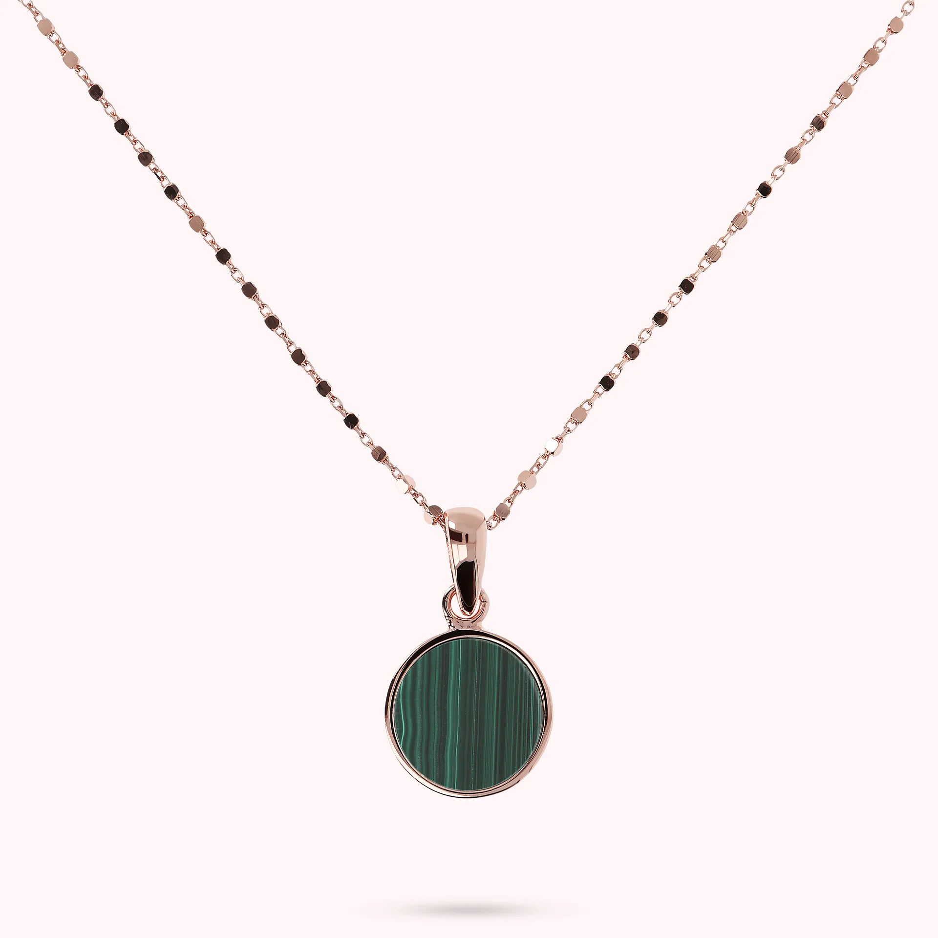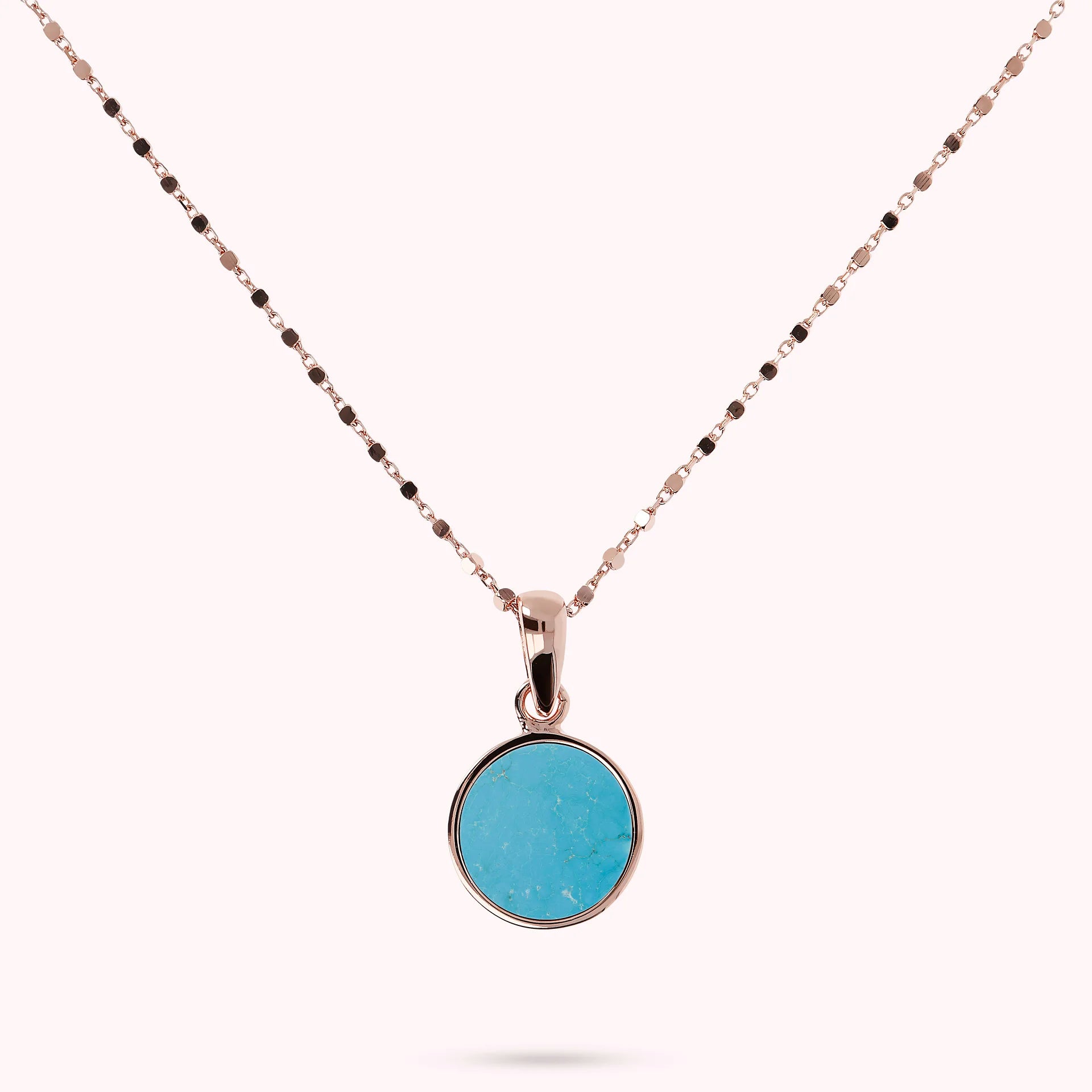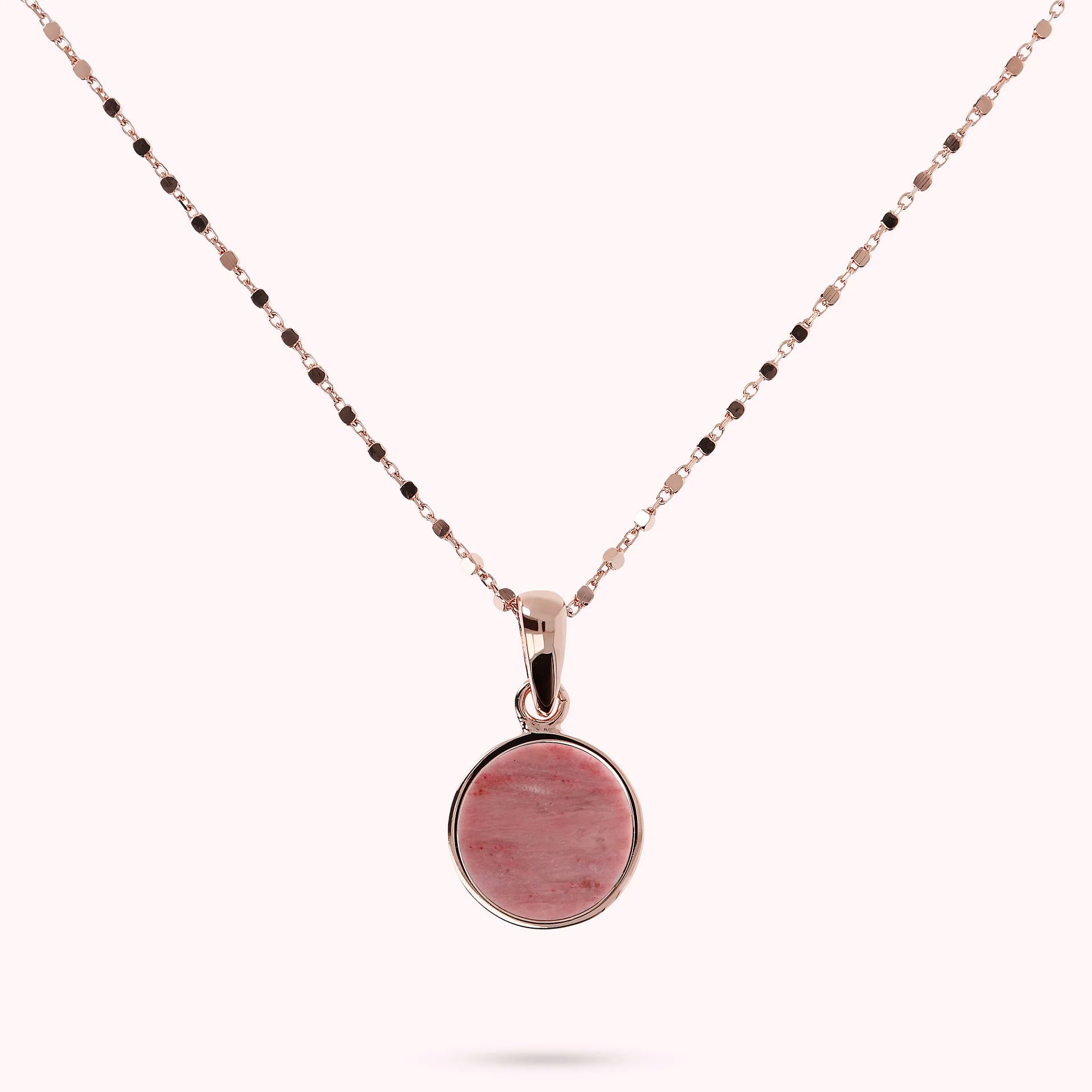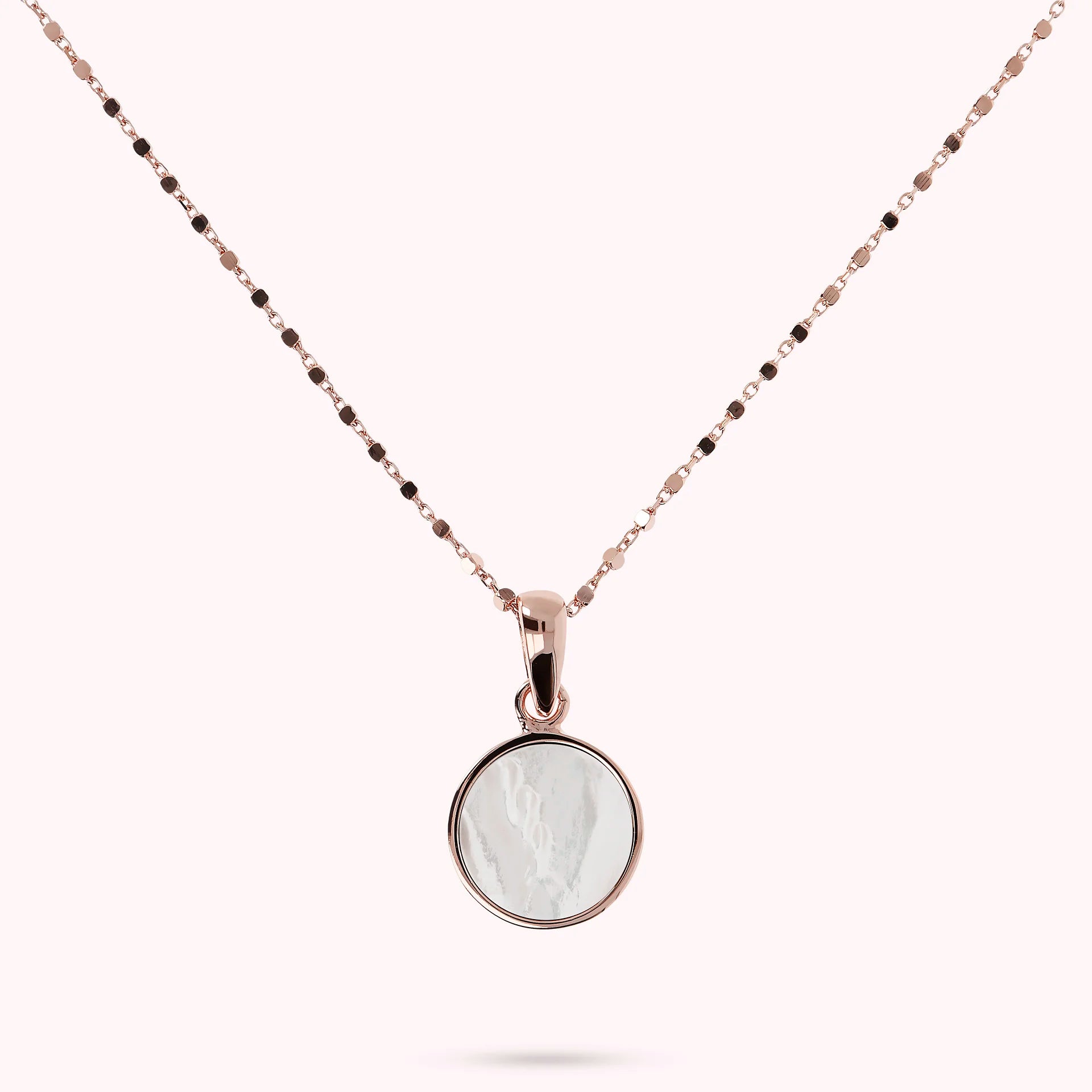 Bronzallure-Halskette aus Golden Rosé-Legierung, 18 Karat rosévergoldet, mit Würfelkette, verziert mit einem kleinen Scheibenanhänger aus Naturstein (14 mm), Karabinerverschluss und verstellbarer Länge mit drei Ringen (41 cm / 44 cm / 47 cm).