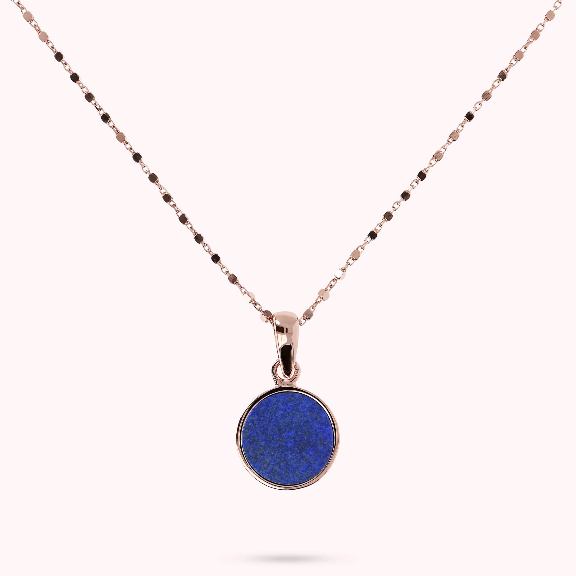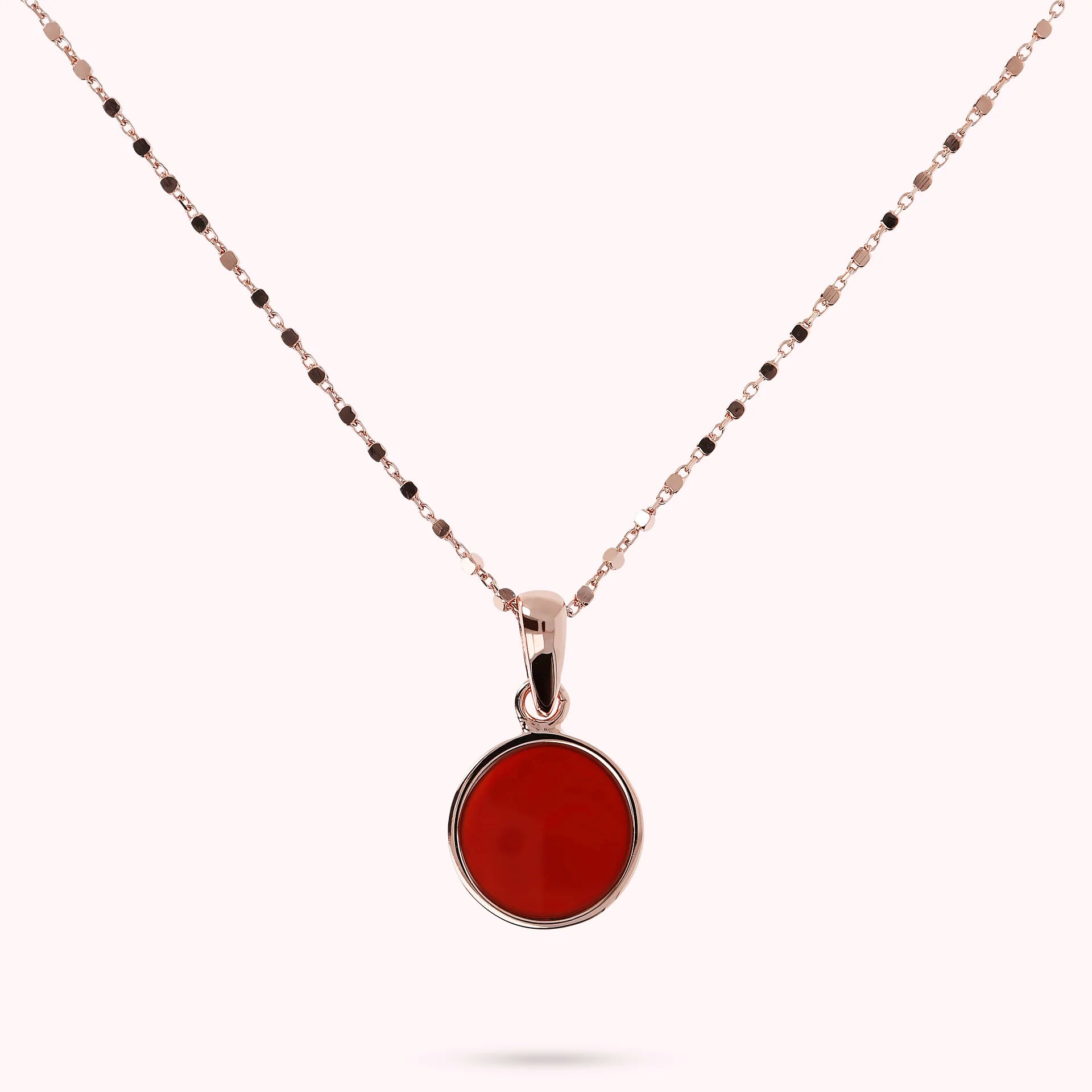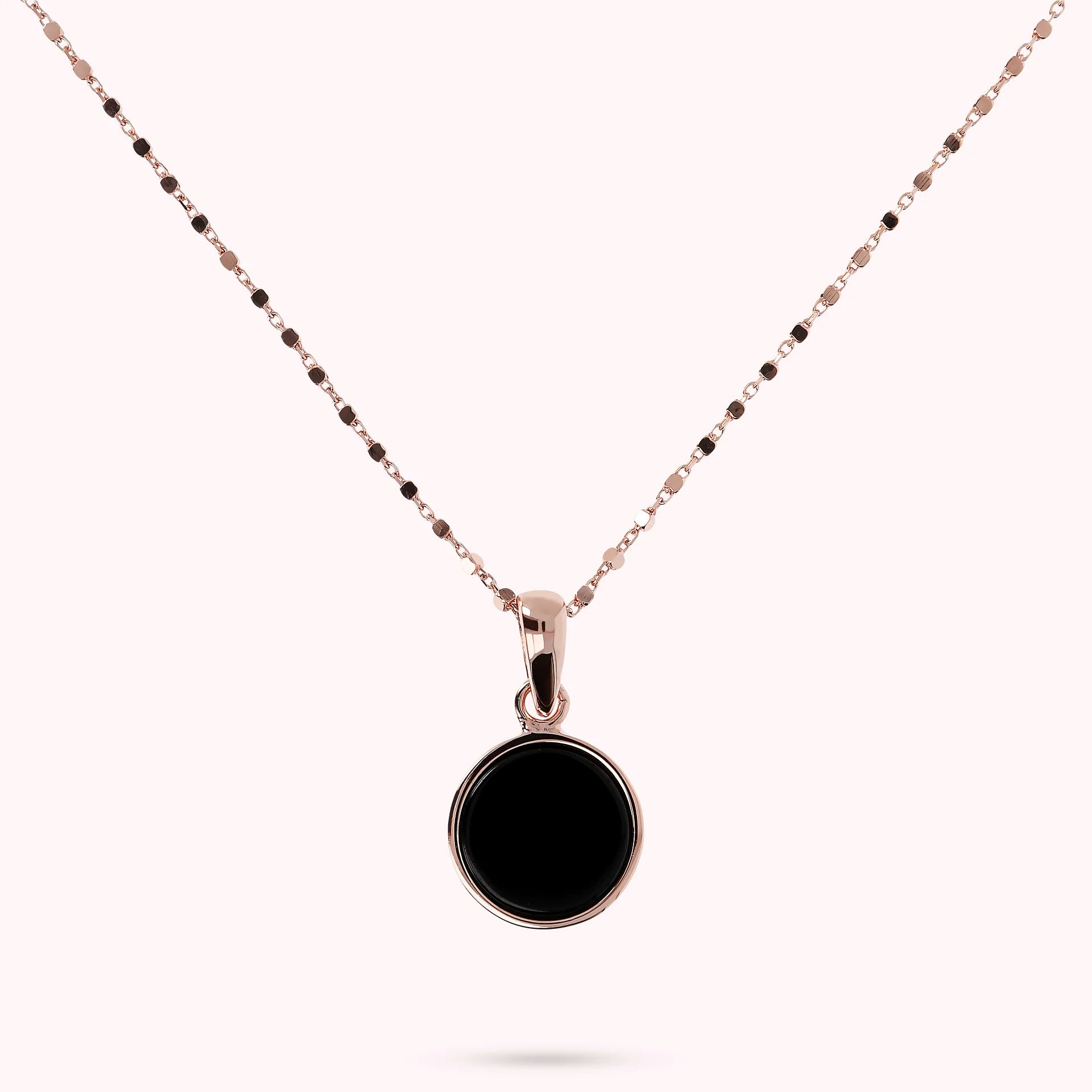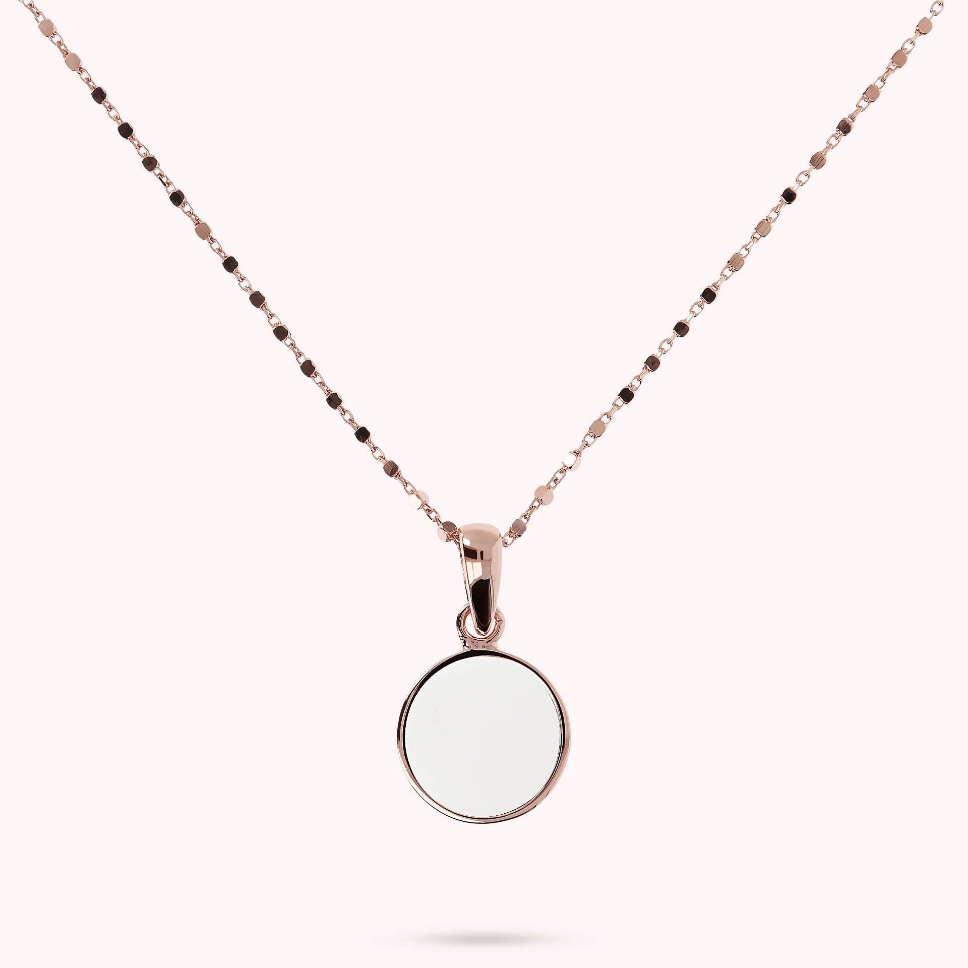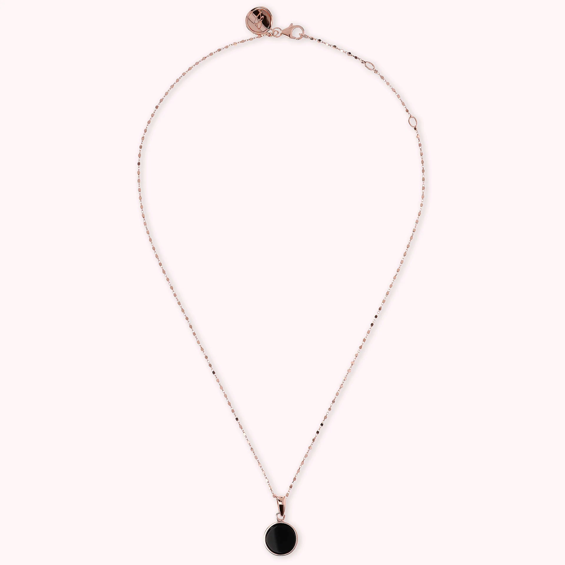 Bronzallure-Halskette aus Golden Rosé-Legierung, 18 Karat rosévergoldet, mit Würfelkette, verziert mit einem kleinen Scheibenanhänger aus Naturstein (14 mm), Karabinerverschluss und verstellbarer Länge mit drei Ringen (41 cm / 44 cm / 47 cm).