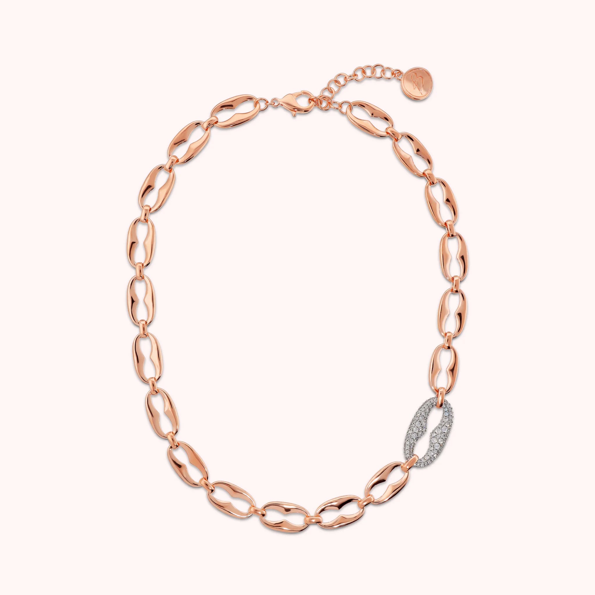 Bronzallure Halskette aus Golden Rosé Legierung, 18kt vergoldet, mit großem Ankerglied und Pavé aus kubischem Zirkonia in leuchtender Qualität. Karabinerverschluss.