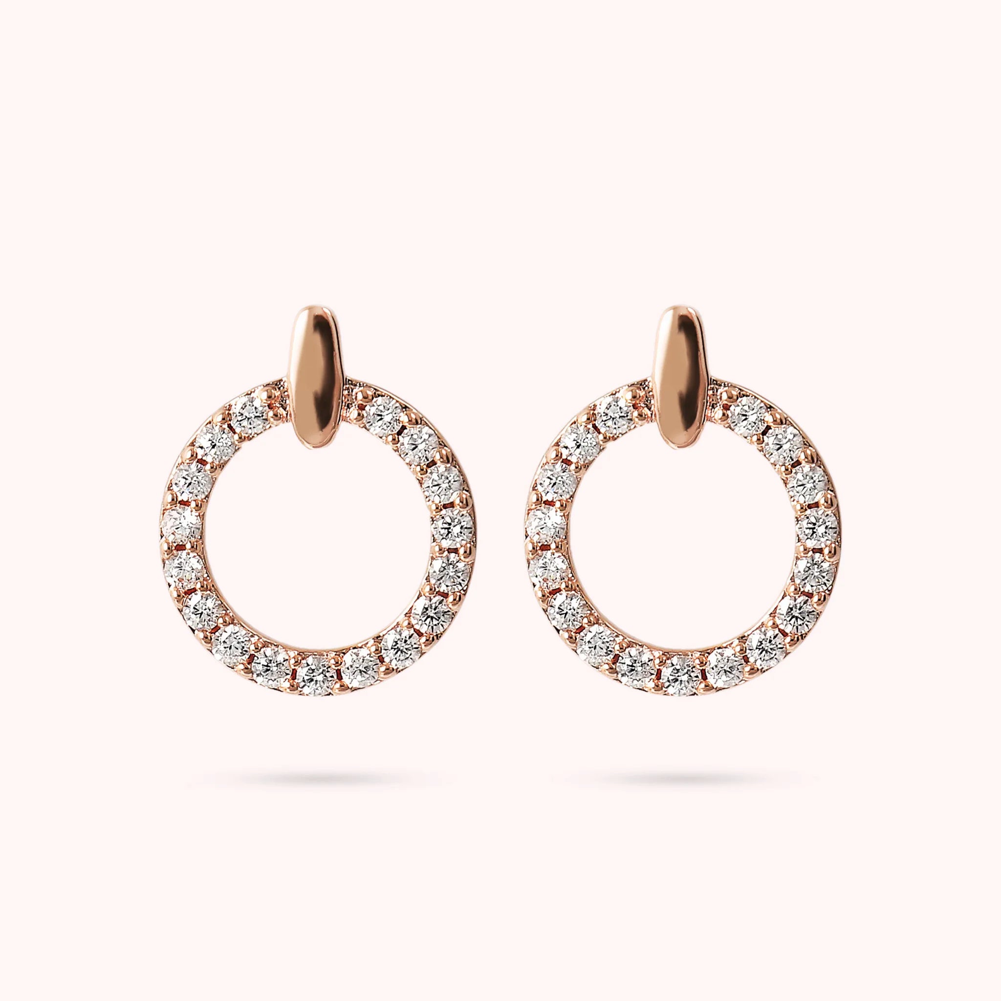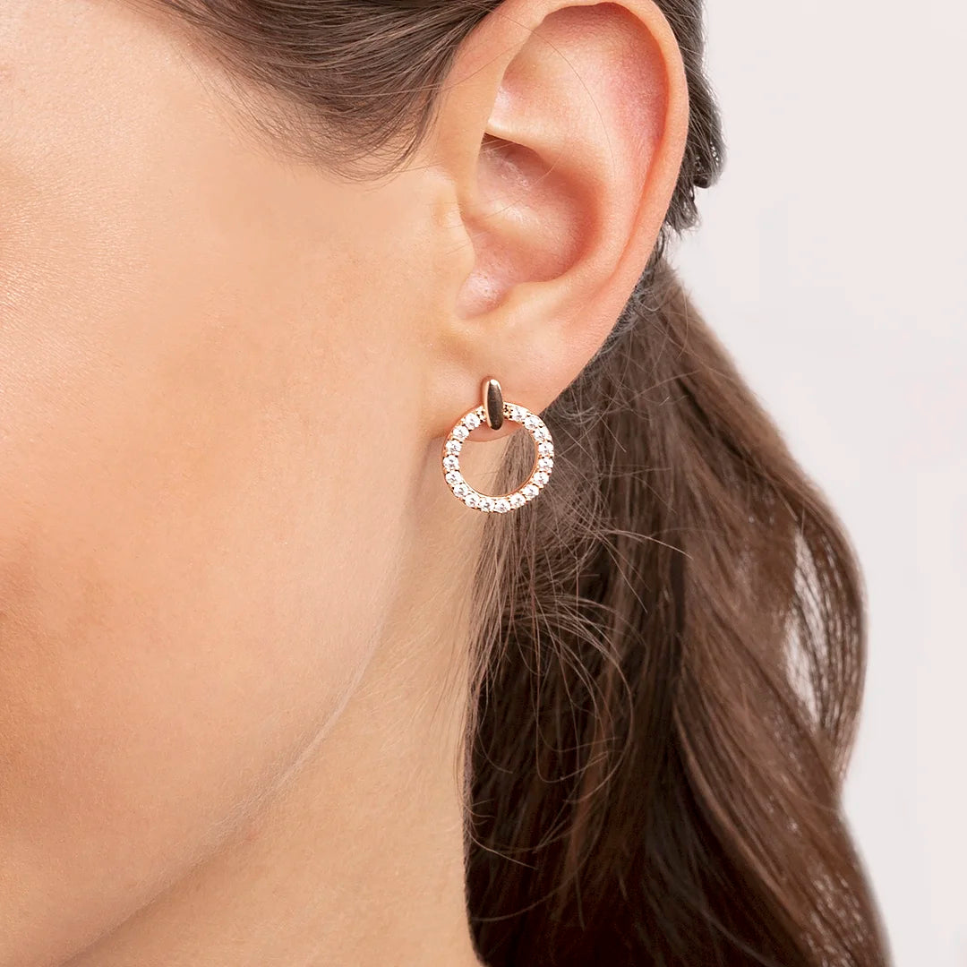 Bronzallure-Ohrstecker aus Golden Rosé-Legierung, 18-Karat rosévergoldet, verziert mit Zirkonia-Kreisen, leuchtende Qualität, montiert auf einer 18-Karat rosévergoldeten Basis. Elegante Kreation mit perfektem Design, das Ihren Look zum Strahlen bringt.