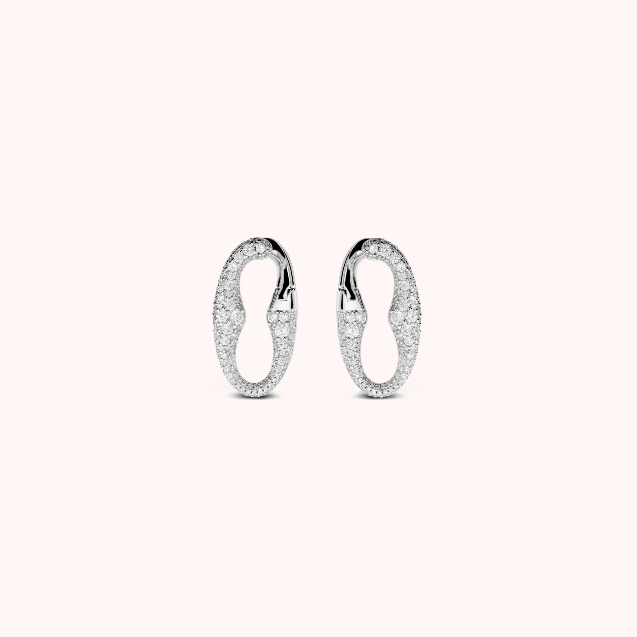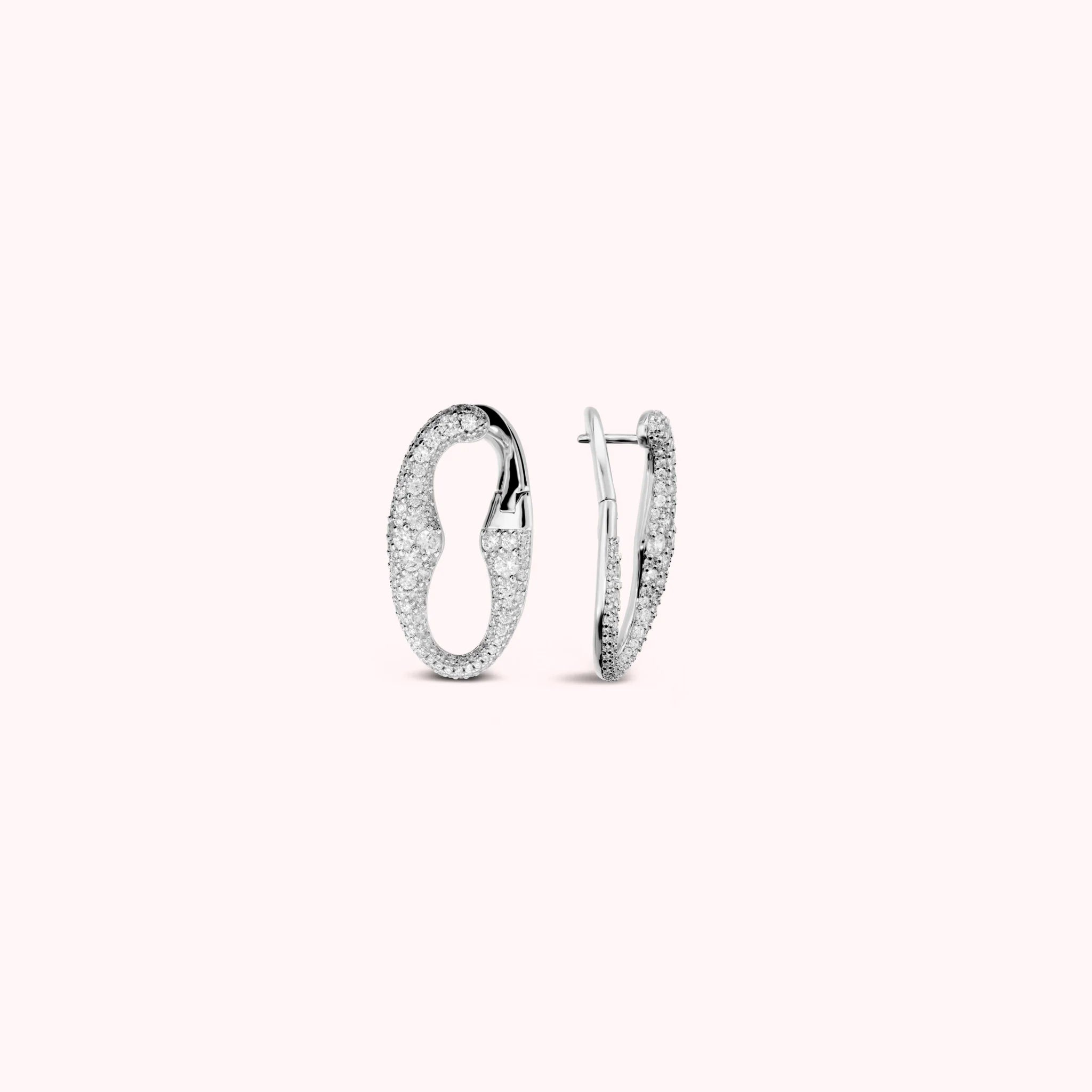 Una maxi maglia marina in pavé che avvolge l’orecchio con grazia, regalando uno scintillio moderno e sofisticato ad ogni gesto.