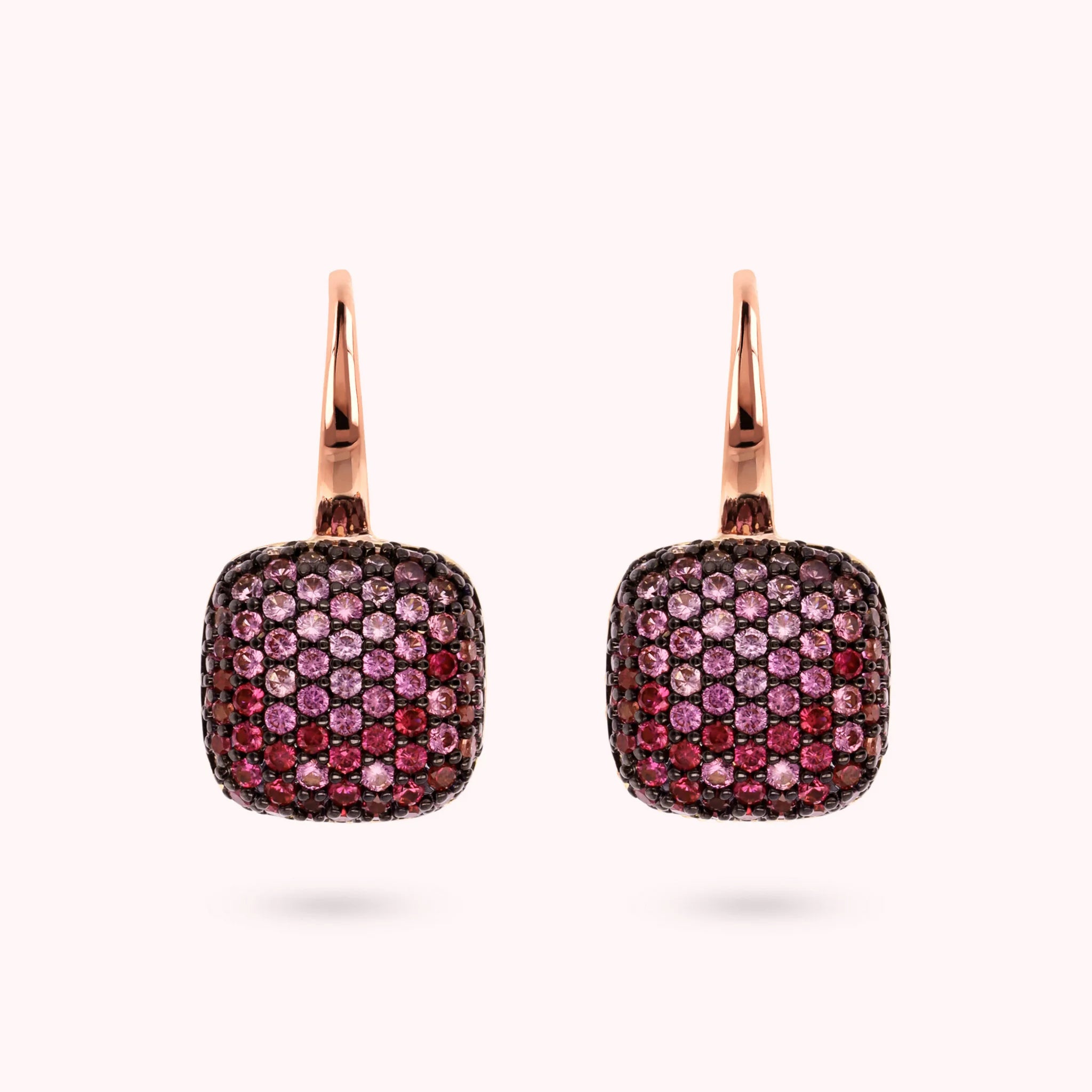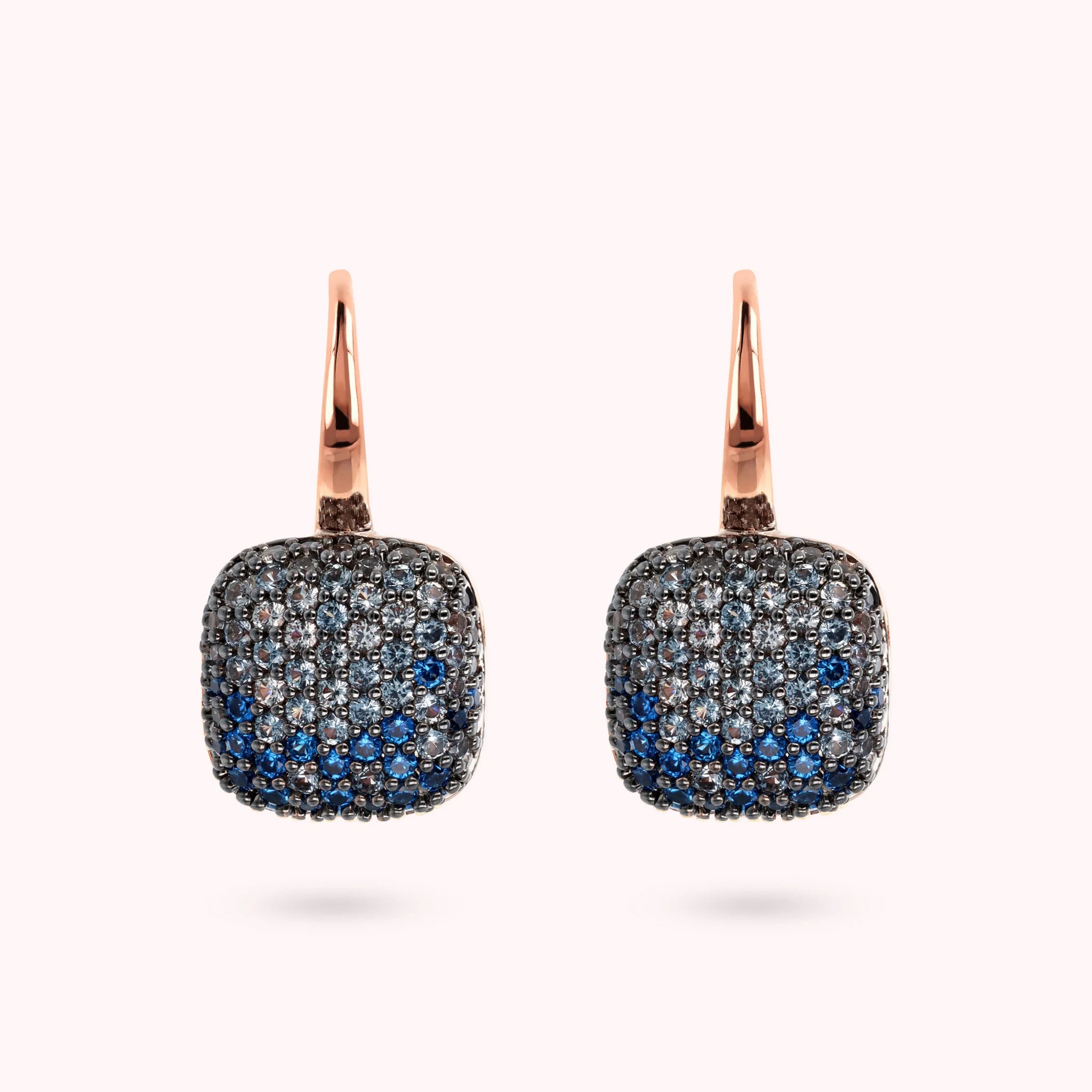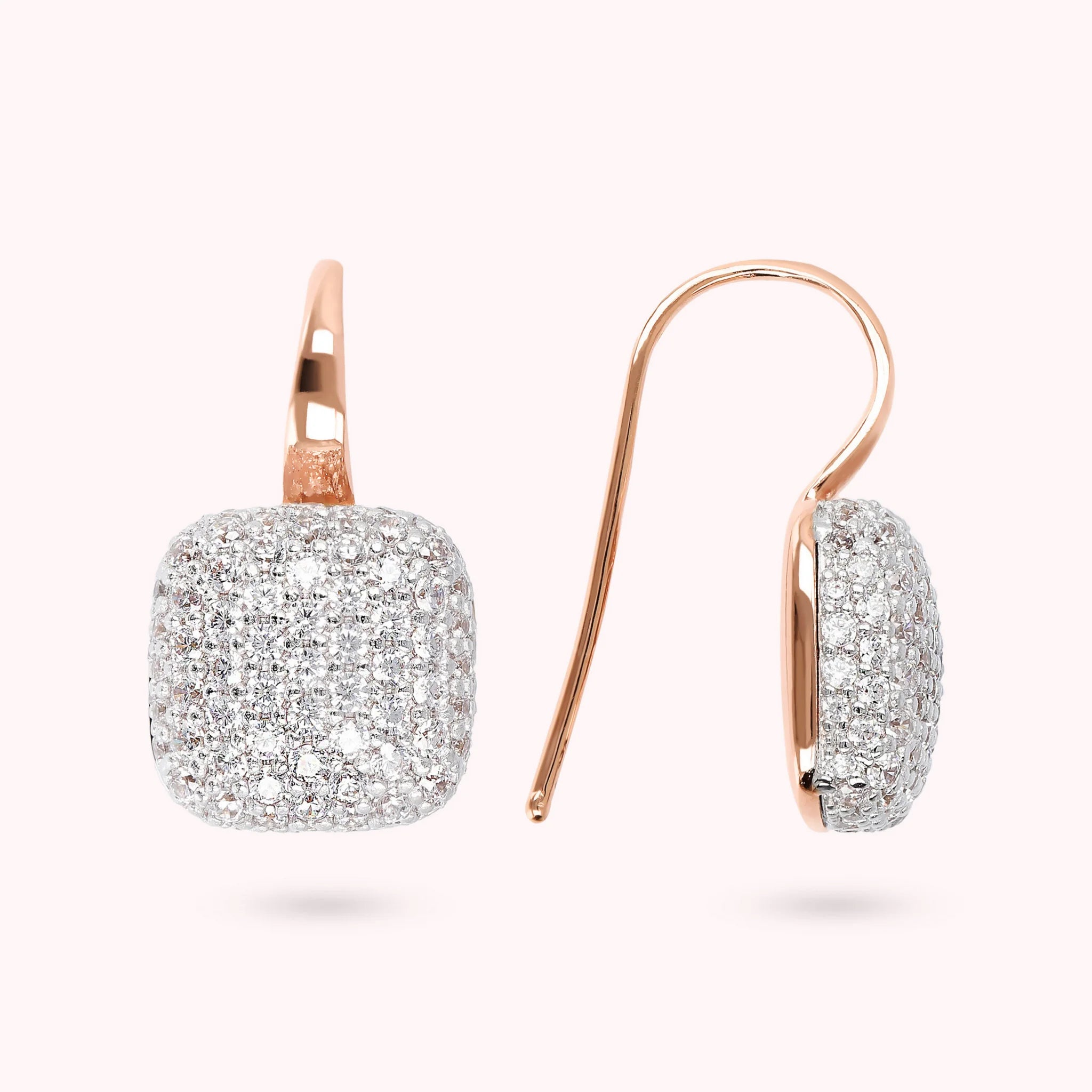 Bronzallure-Ohrringe aus Golden Rosé-Legierung, 18 Karat rosévergoldet, quadratische Form (12 x 12 mm) mit leuchtendem Zirkonia-Pavé; Hakenverschluss; Länge von 2cm.