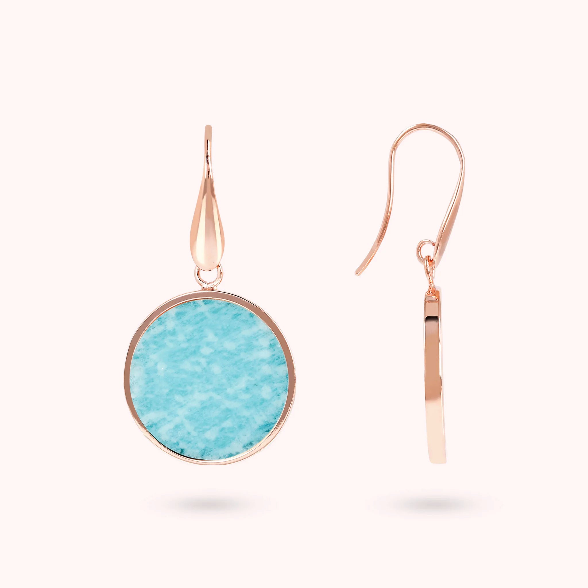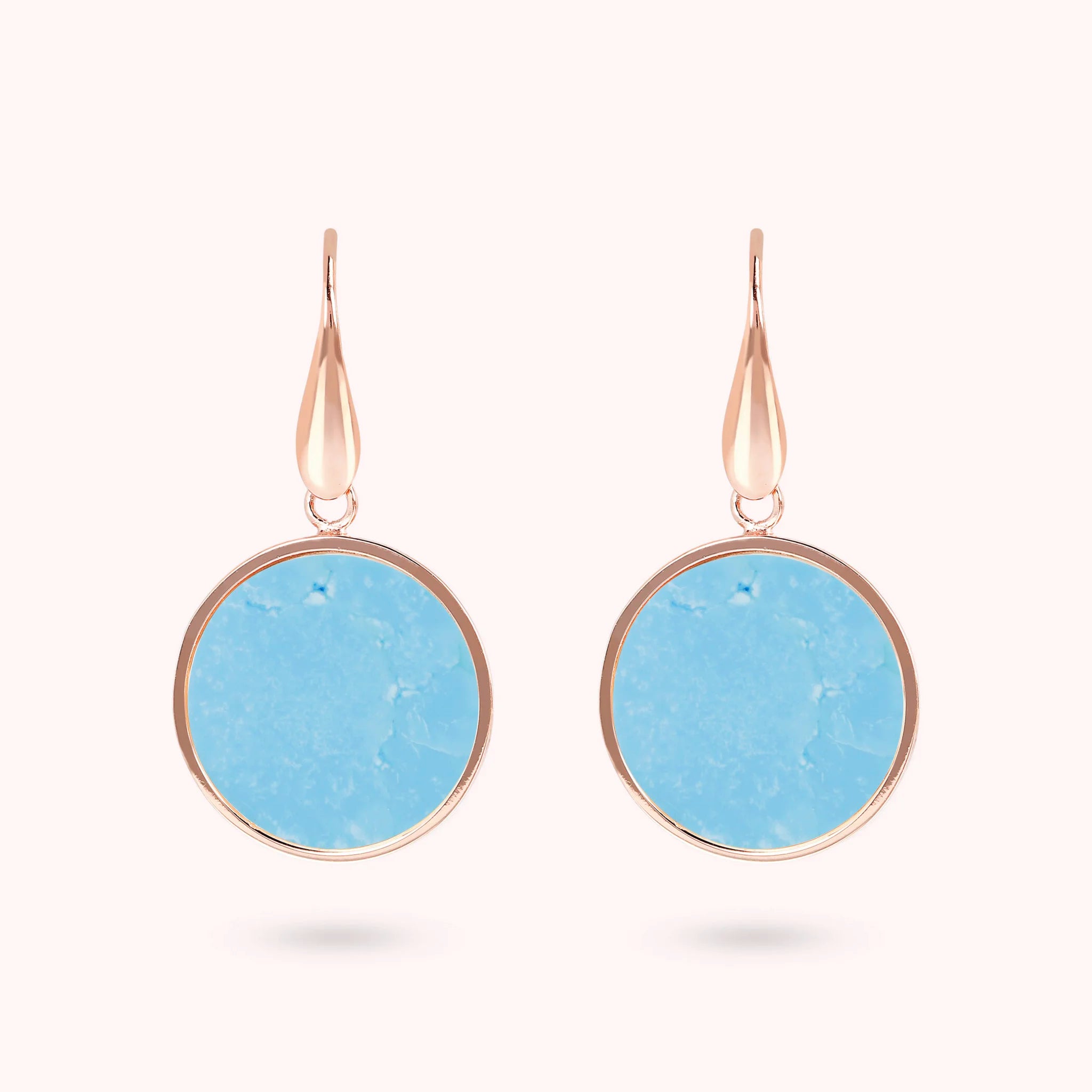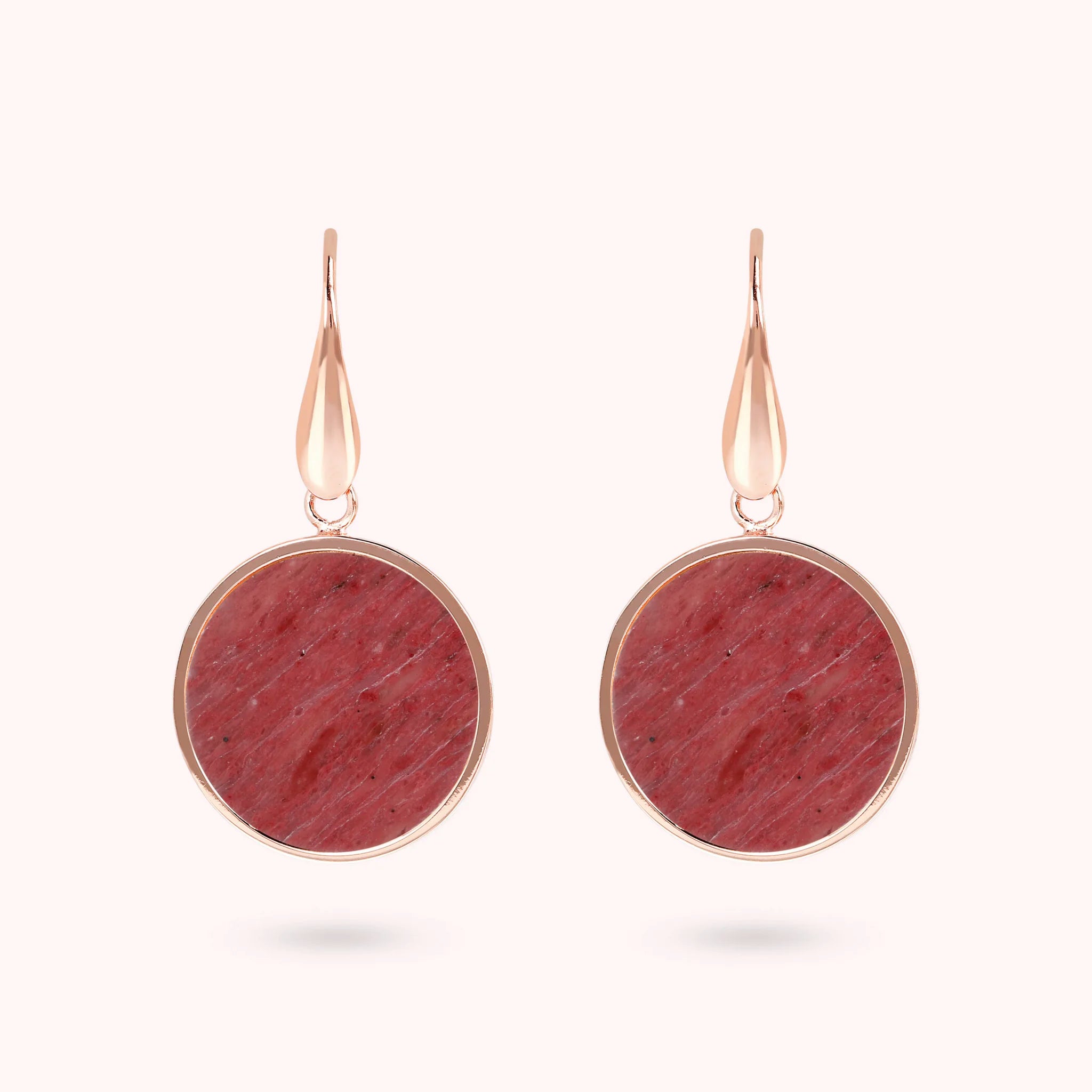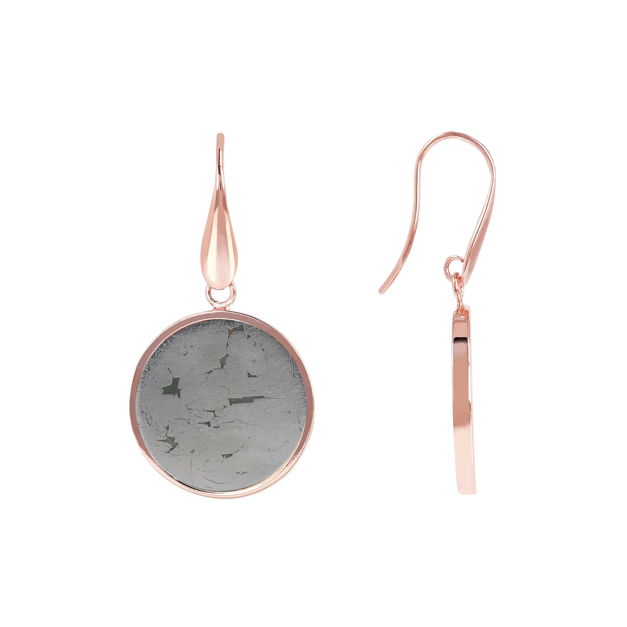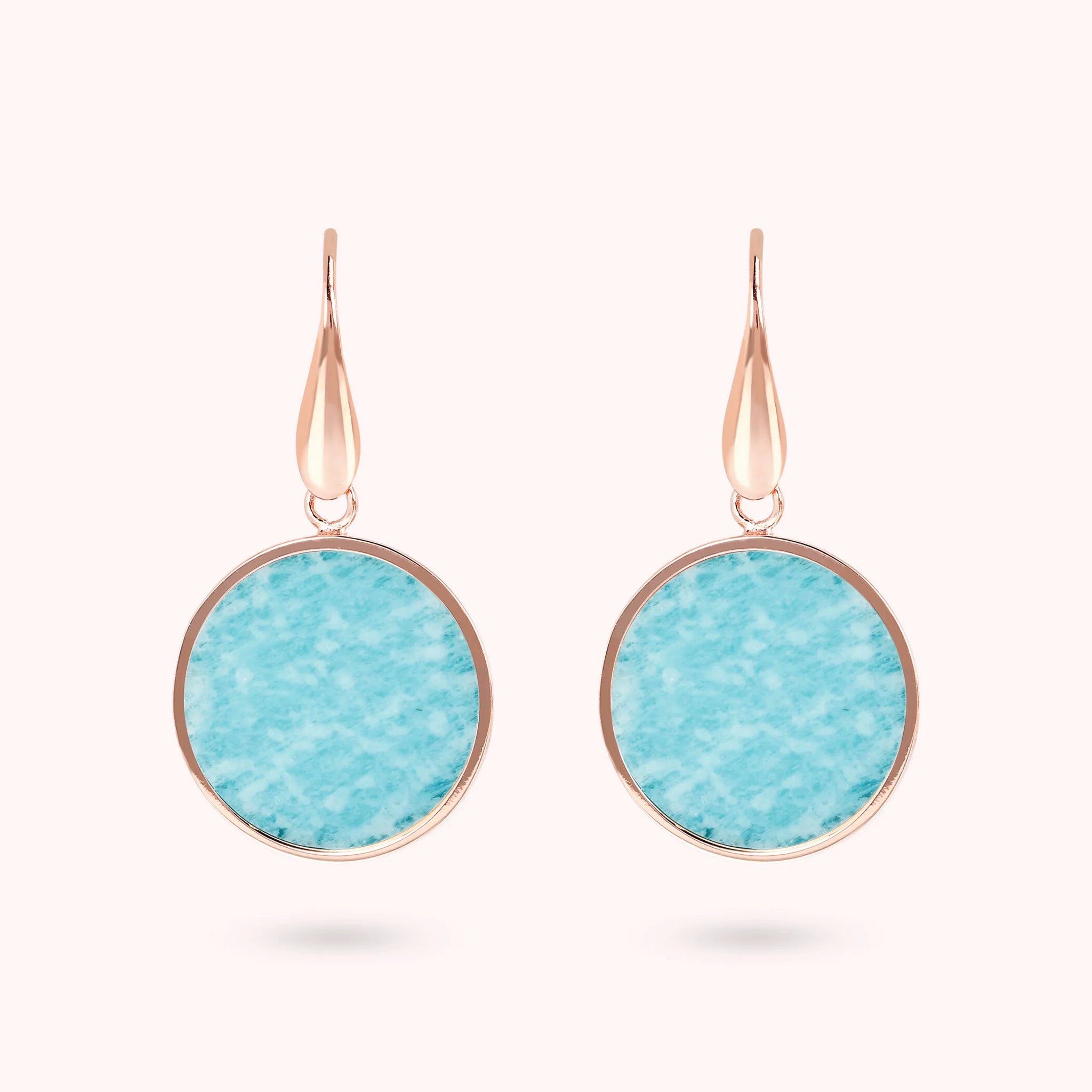 Bronzallure-Ohrringe aus Golden Rosé-Legierung, 18-Karat rosévergoldet, mit Natursteinscheibe (1,8 cm), Länge von 4 cm und Hakenverschluss.