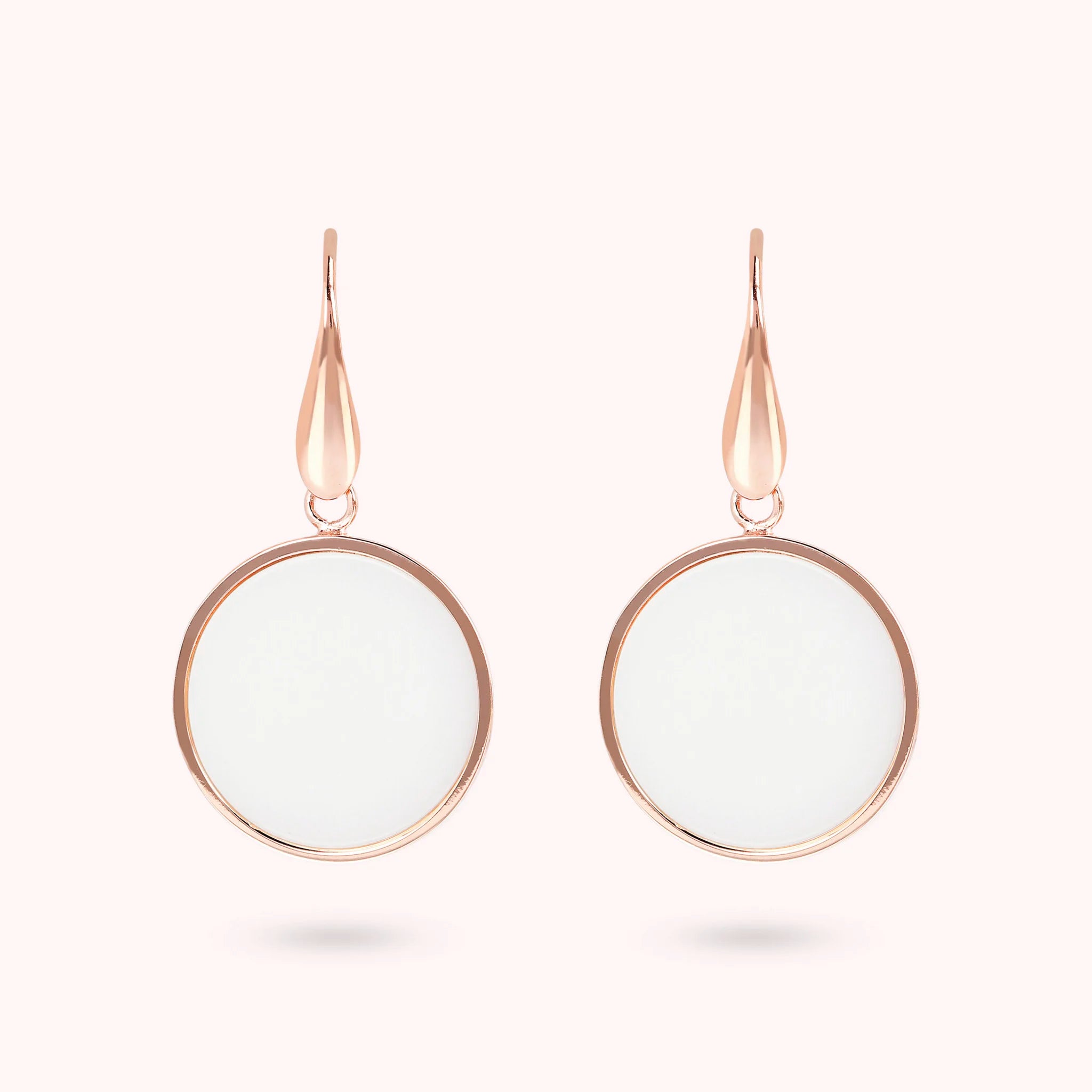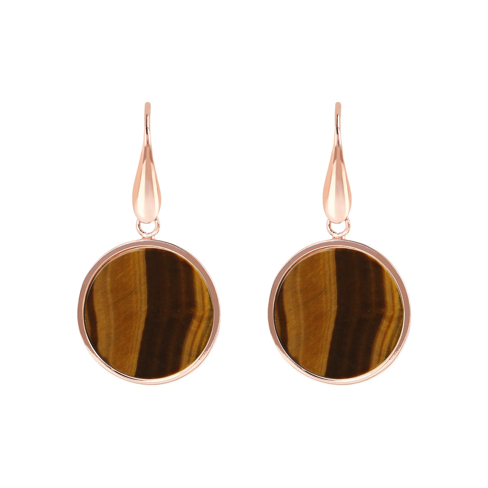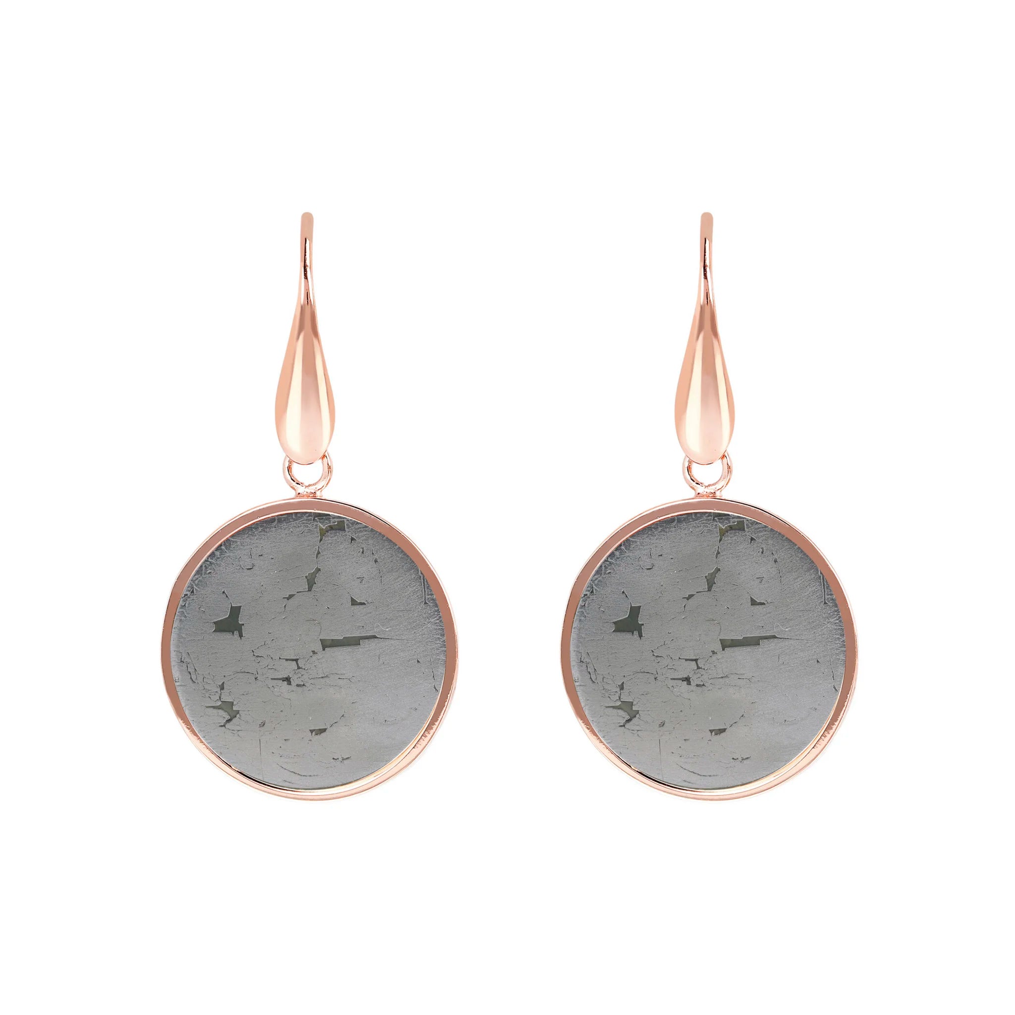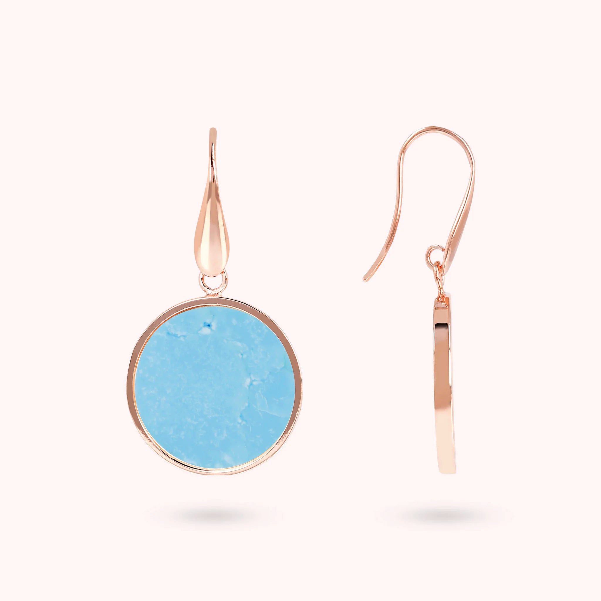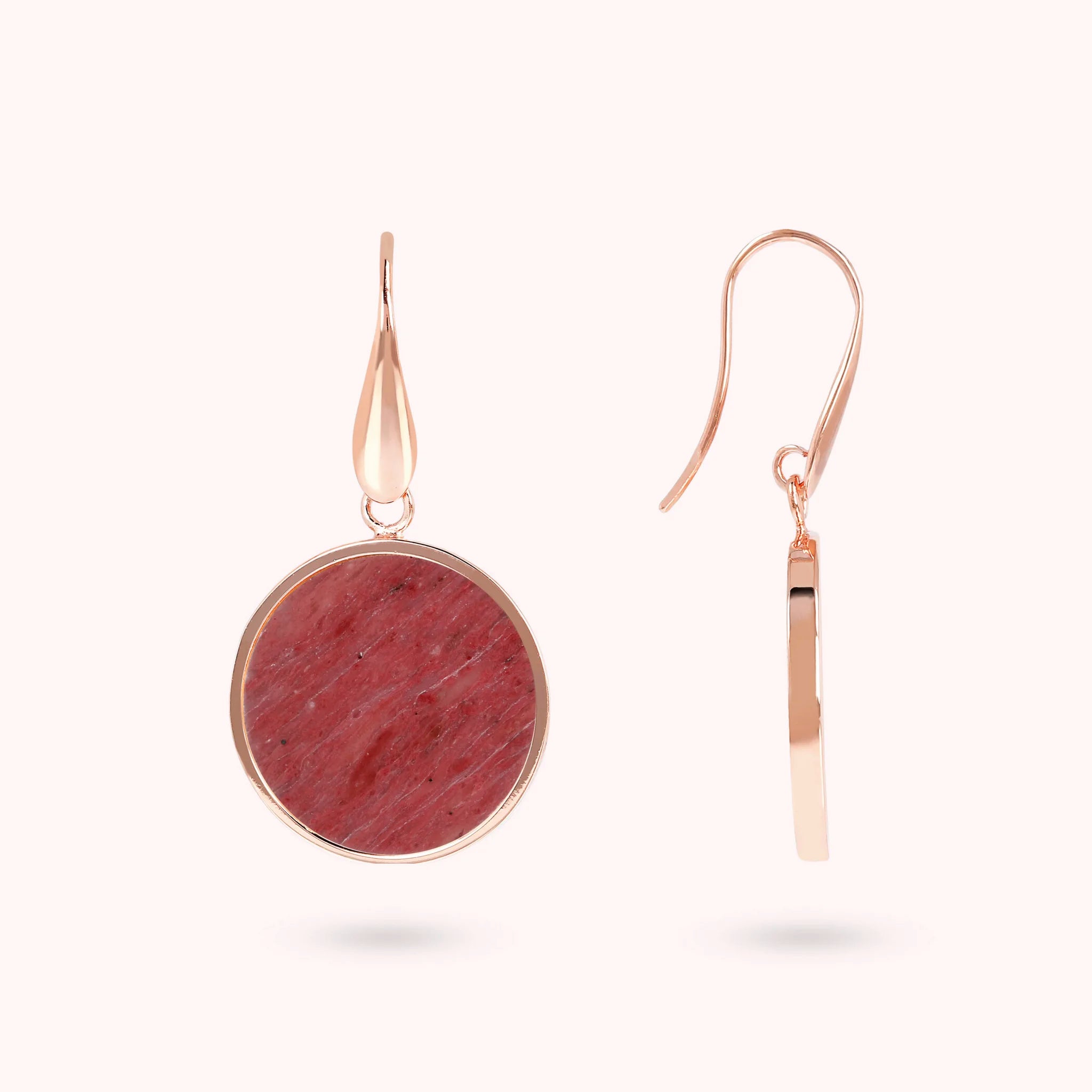 Bronzallure-Ohrringe aus Golden Rosé-Legierung, 18-Karat rosévergoldet, mit Natursteinscheibe (1,8 cm), Länge von 4 cm und Hakenverschluss.