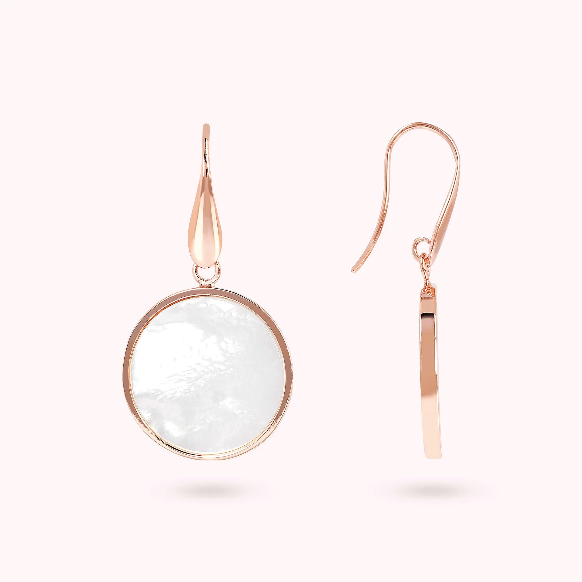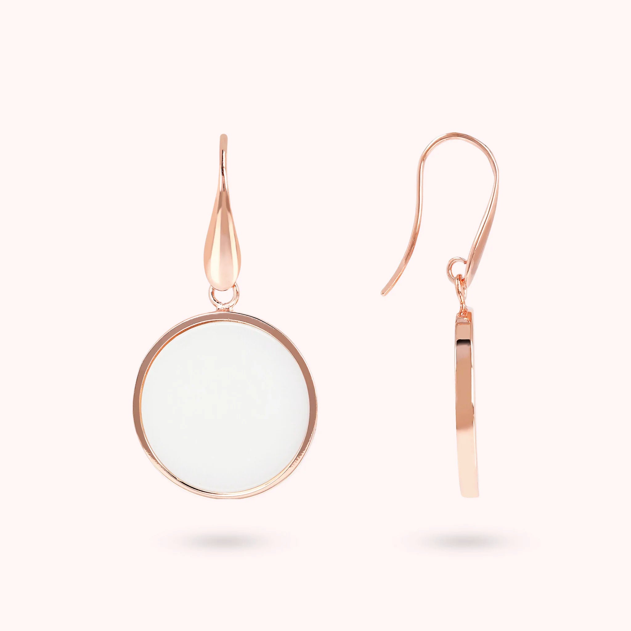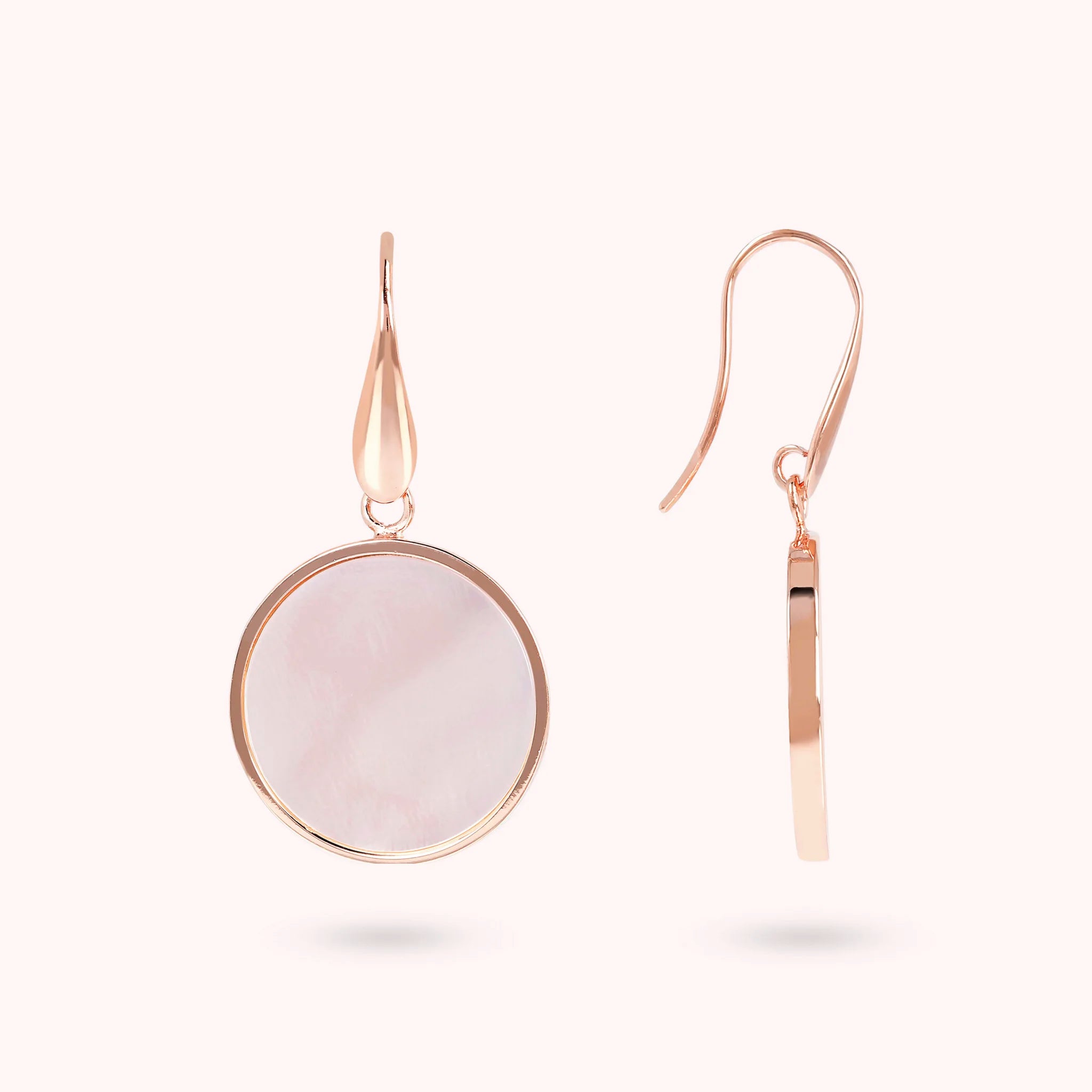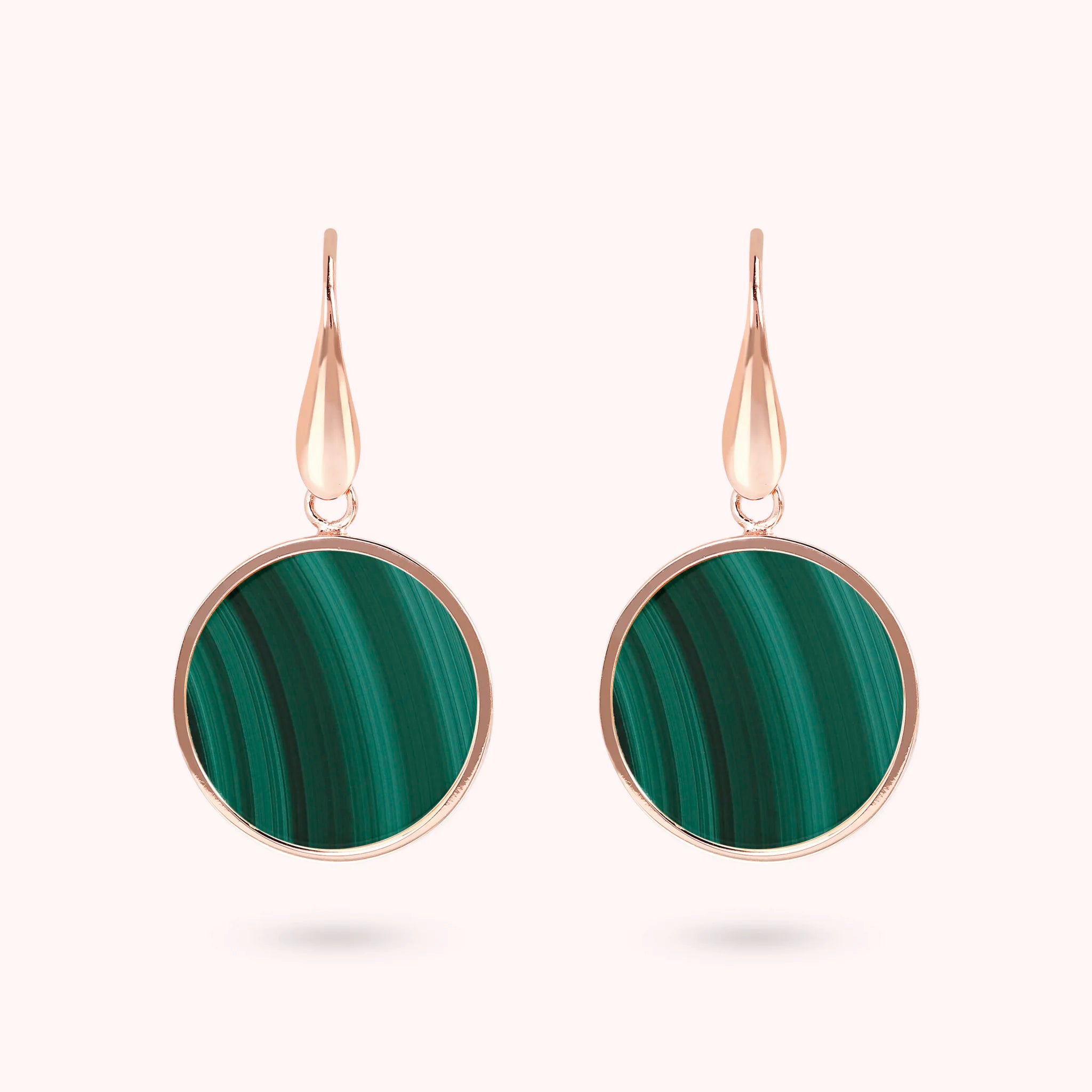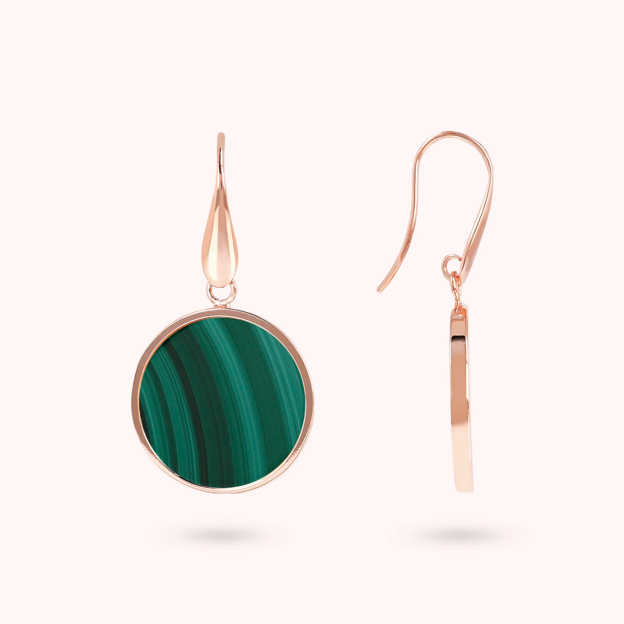 Bronzallure-Ohrringe aus Golden Rosé-Legierung, 18-Karat rosévergoldet, mit Natursteinscheibe (1,8 cm), Länge von 4 cm und Hakenverschluss.