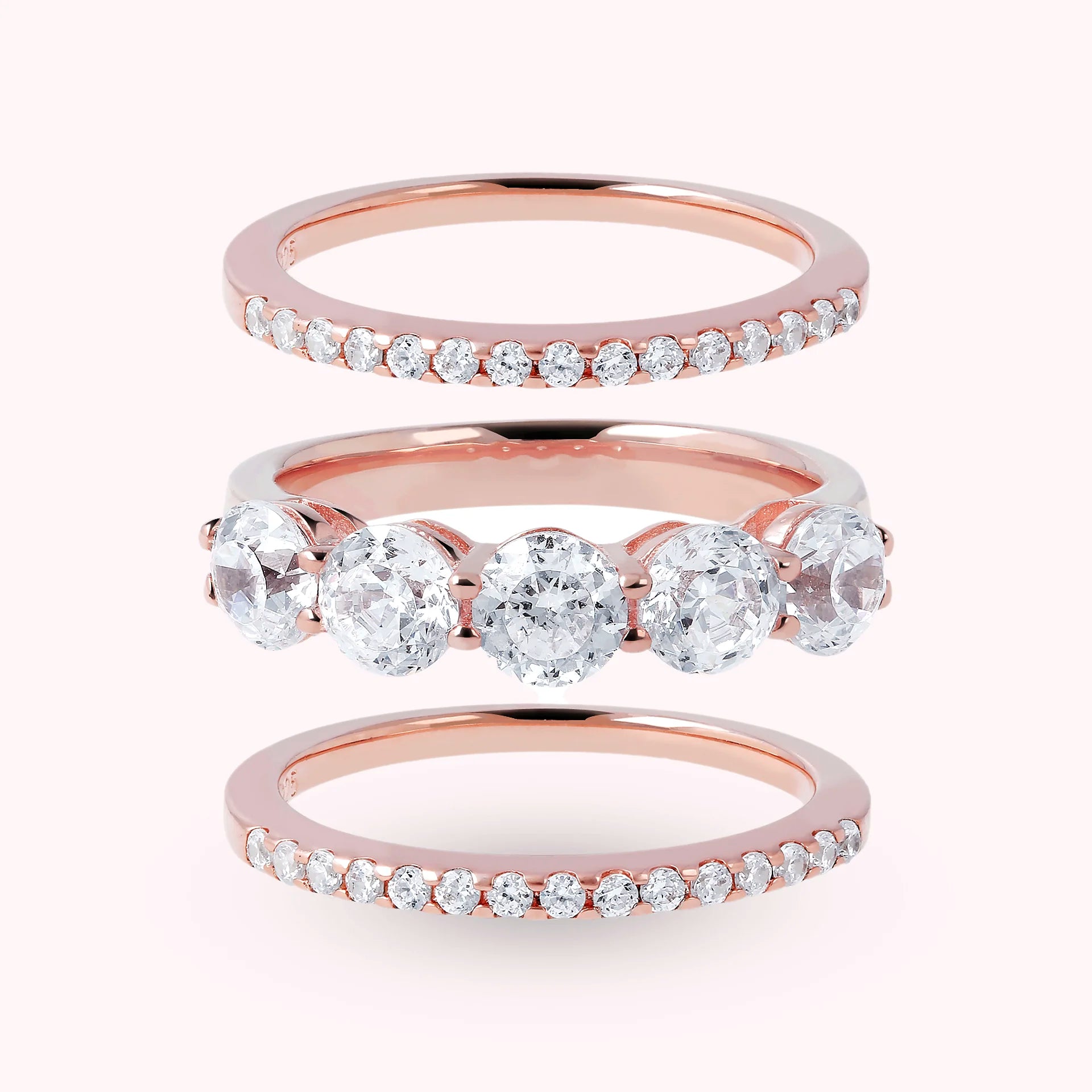 Bronzallure-Ringset aus Golden Rosé-Legierung, 18-Karat rosévergoldet. Das Set besteht aus drei Ringen mit Zirkonia-Elementen. Elegante Kreation mit perfektem Design, das Ihren Look zum Strahlen bringt.
