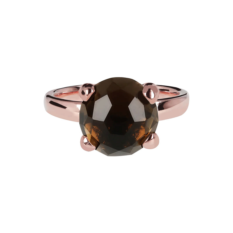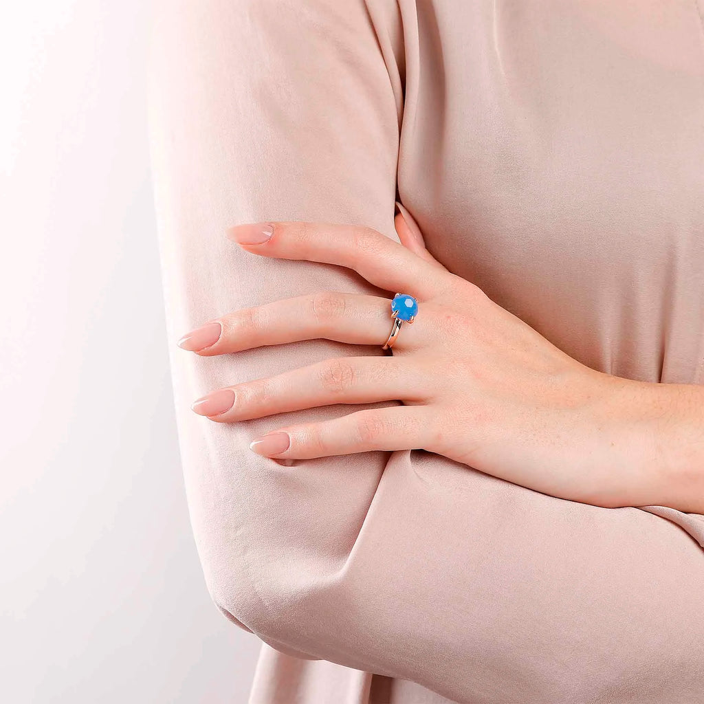 Bronzallure medium cocktail ring made of Golden Rosé alloy, 18kt rose gold plated, with a small natural stone (10 mm) in bright colors and a round shape.