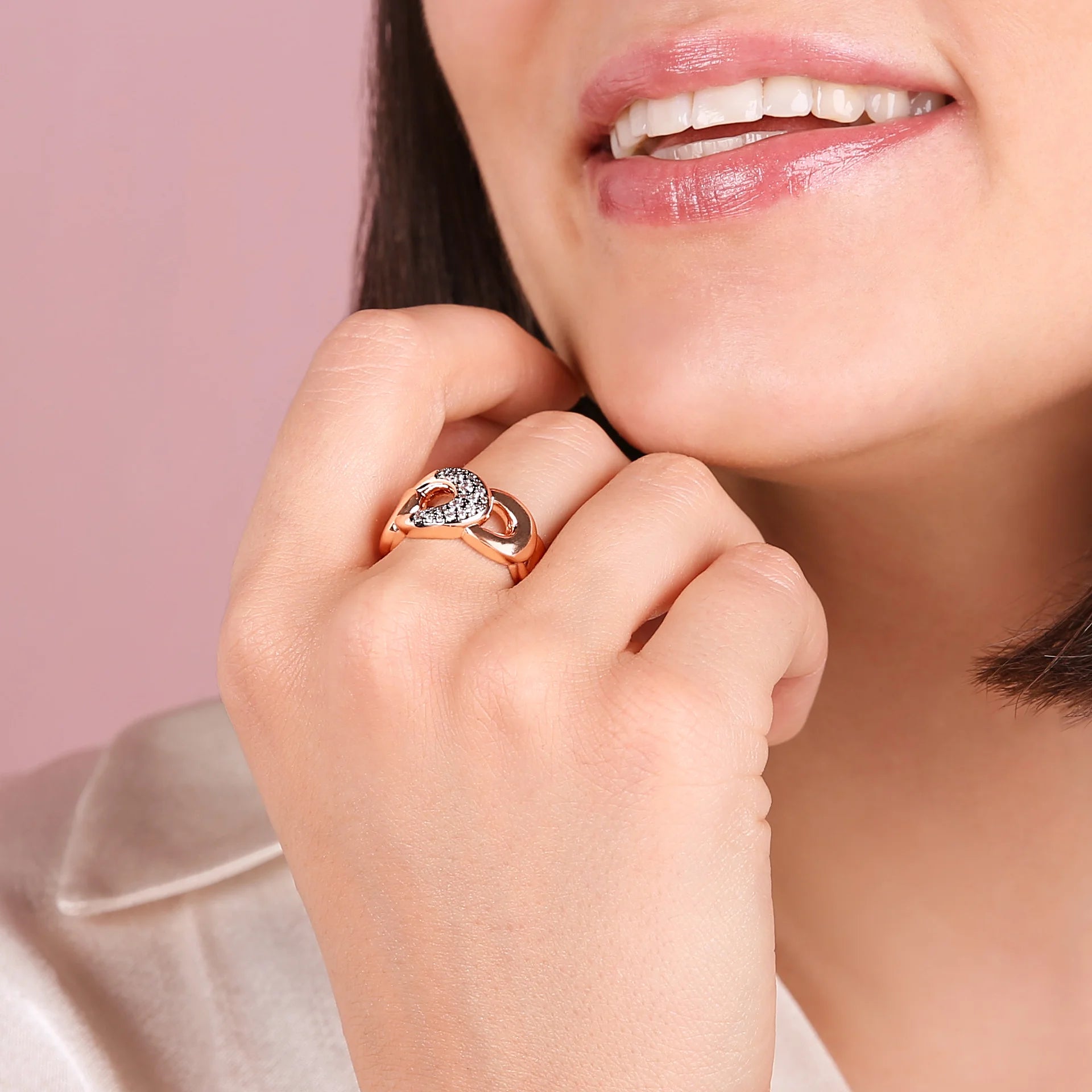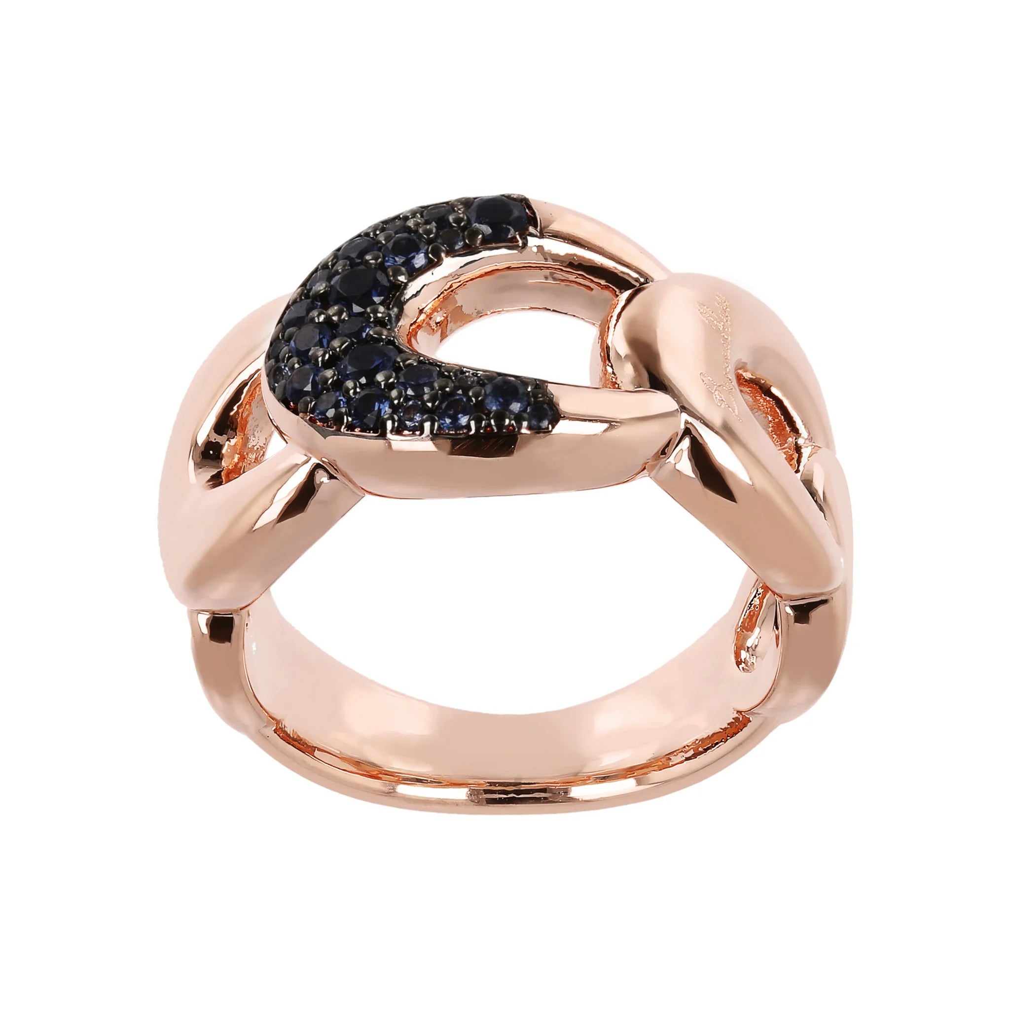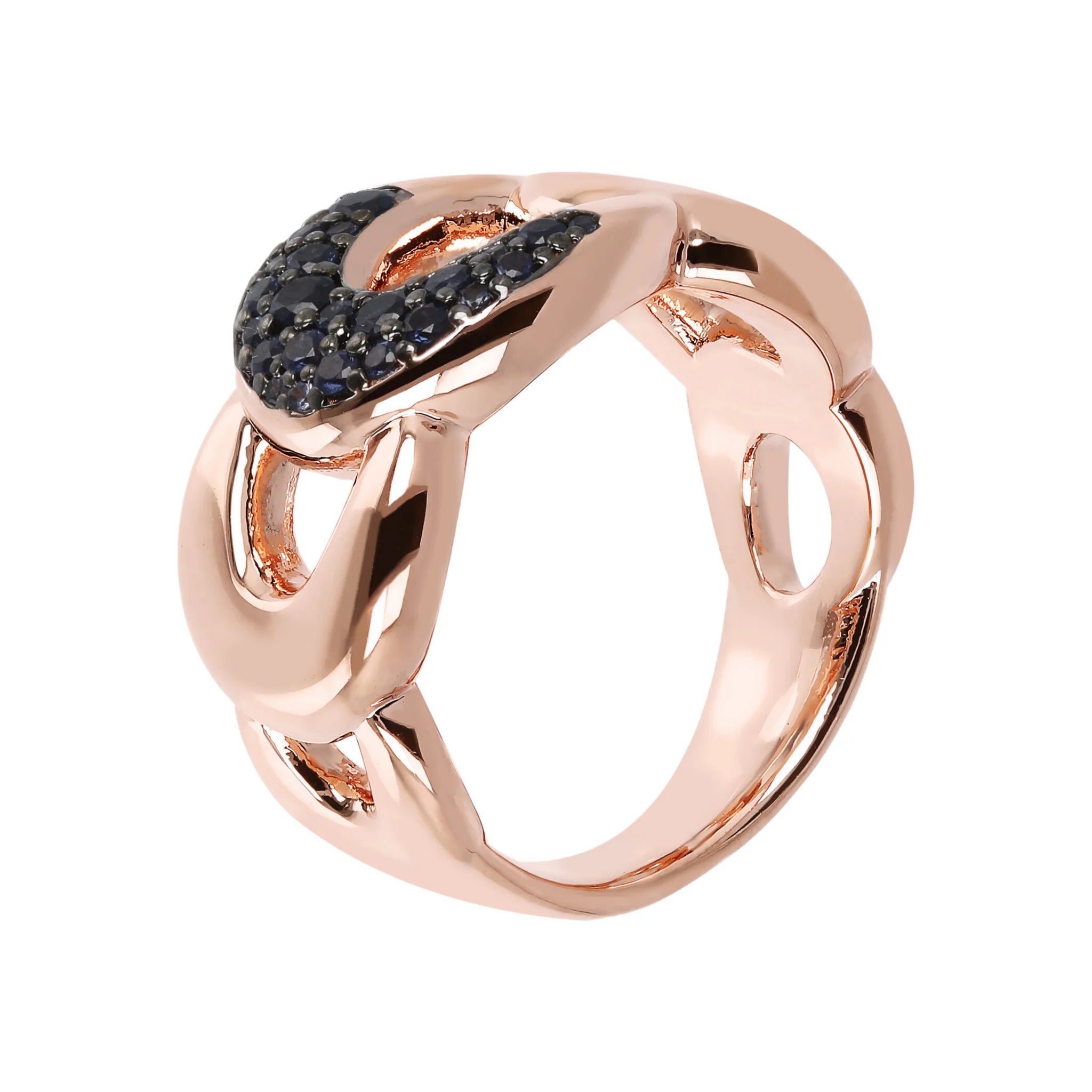 Bronzallure ring made on a Golden Rosé base, 18kt rose gold plated, with horseshoe links and pavé in black nano crystals or white cubic zirconia, luminous quality. Elegant creation, with a perfect design to make your look shine.
