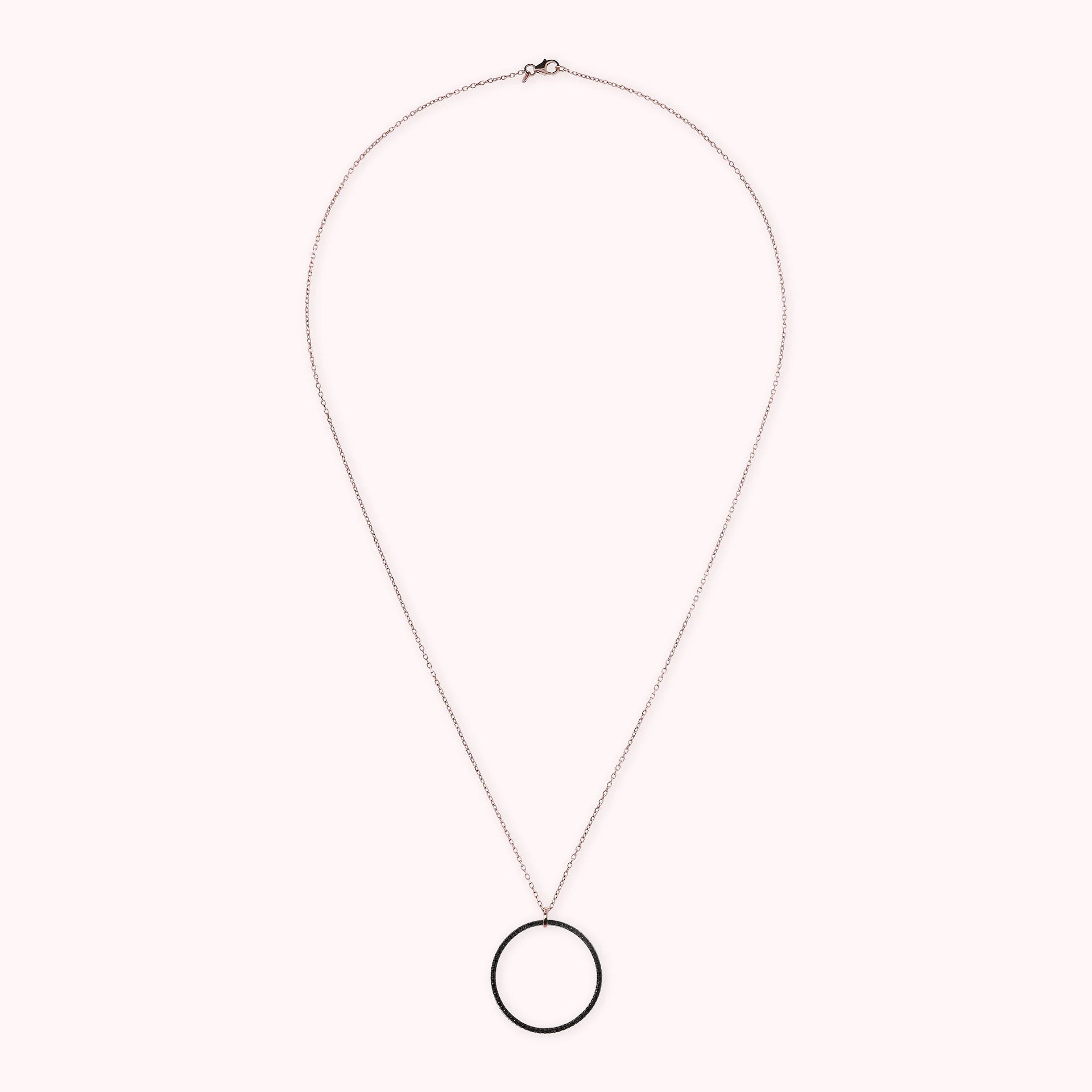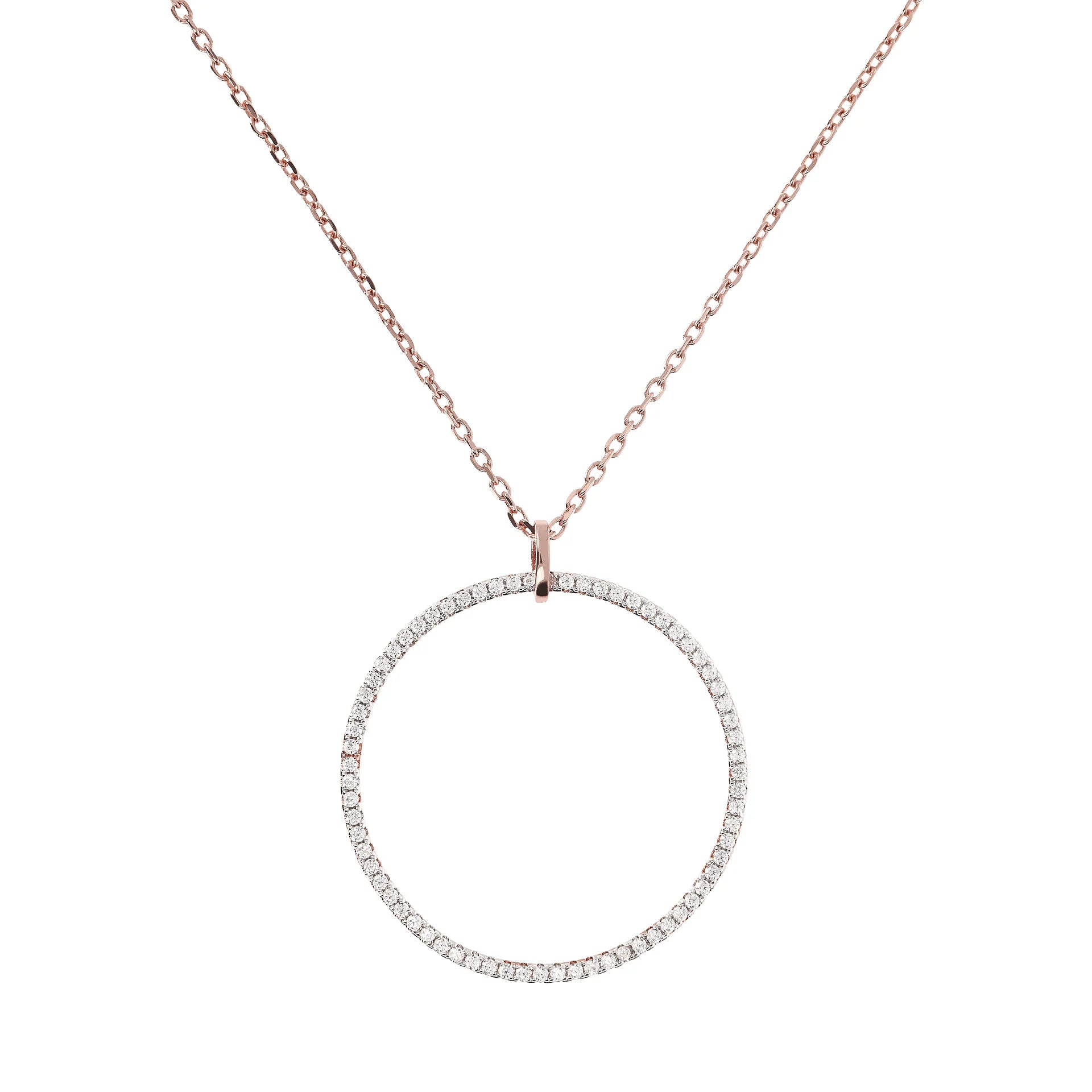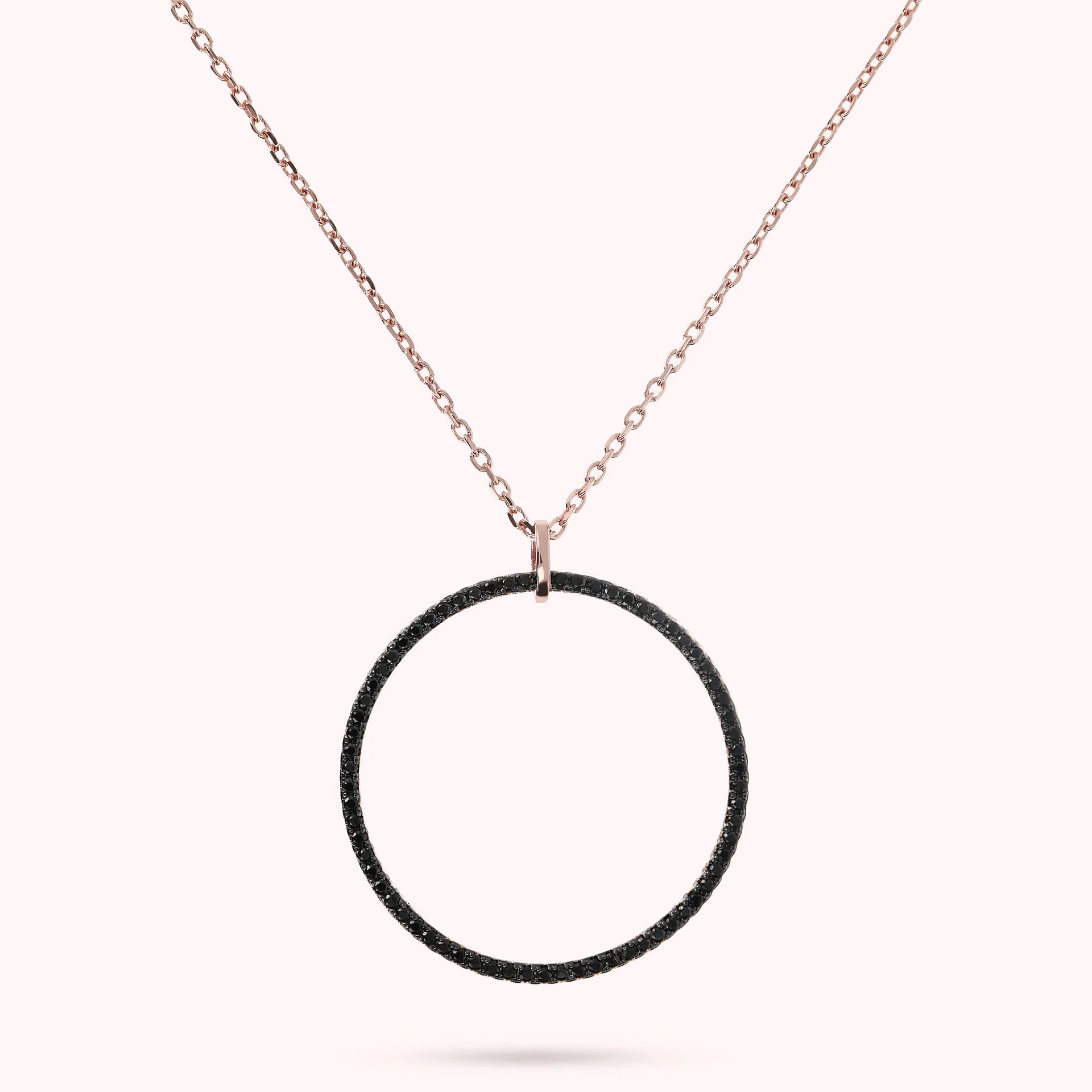 Bronzallure necklace made of Golden Rosé alloy, 18kt rose gold plated, with forced chain embellished with a circle-shaped pendant with pavé in black spinel or white cubic zirconia, luminous quality; lobster clasp. Elegant creation, with a perfect design to make your look shine.