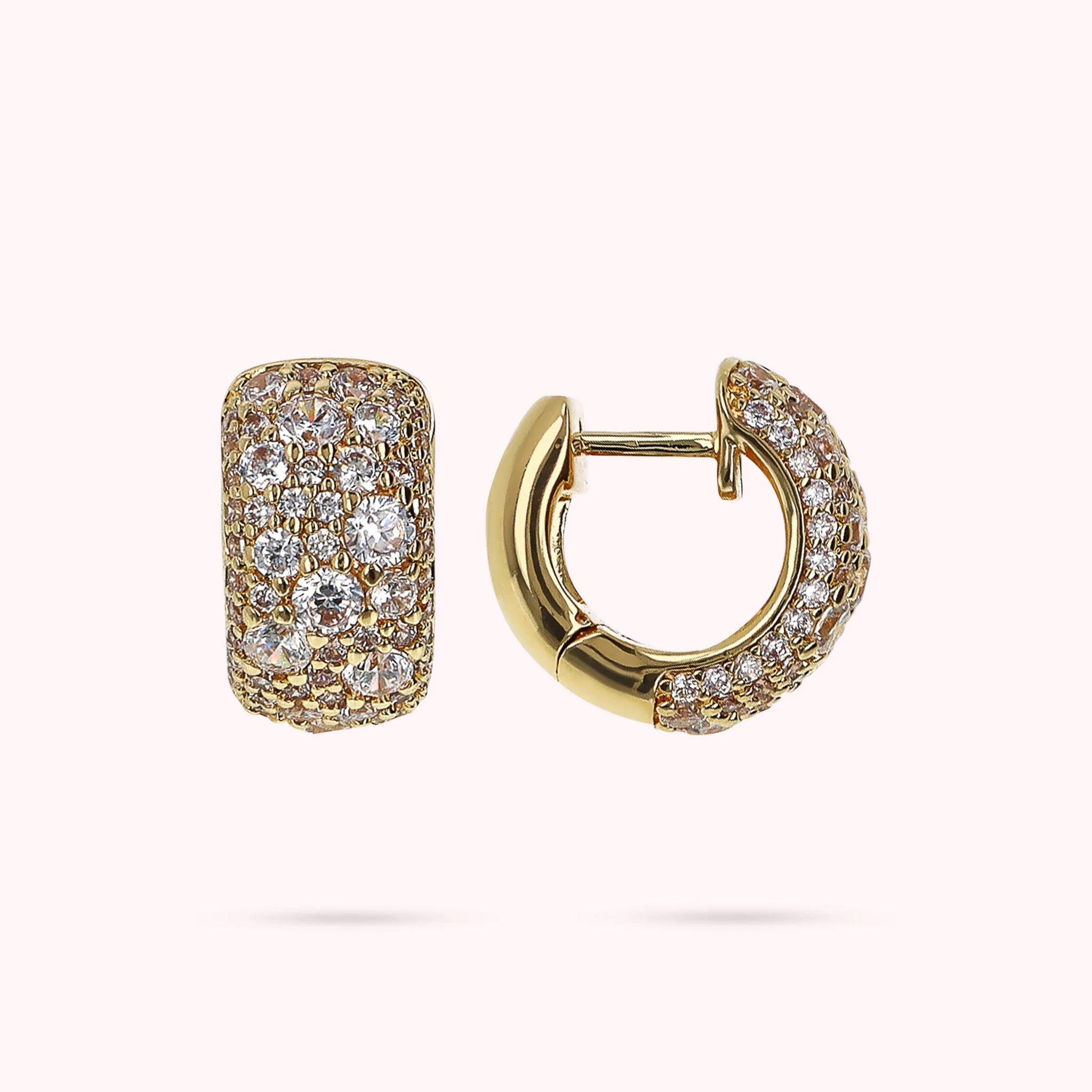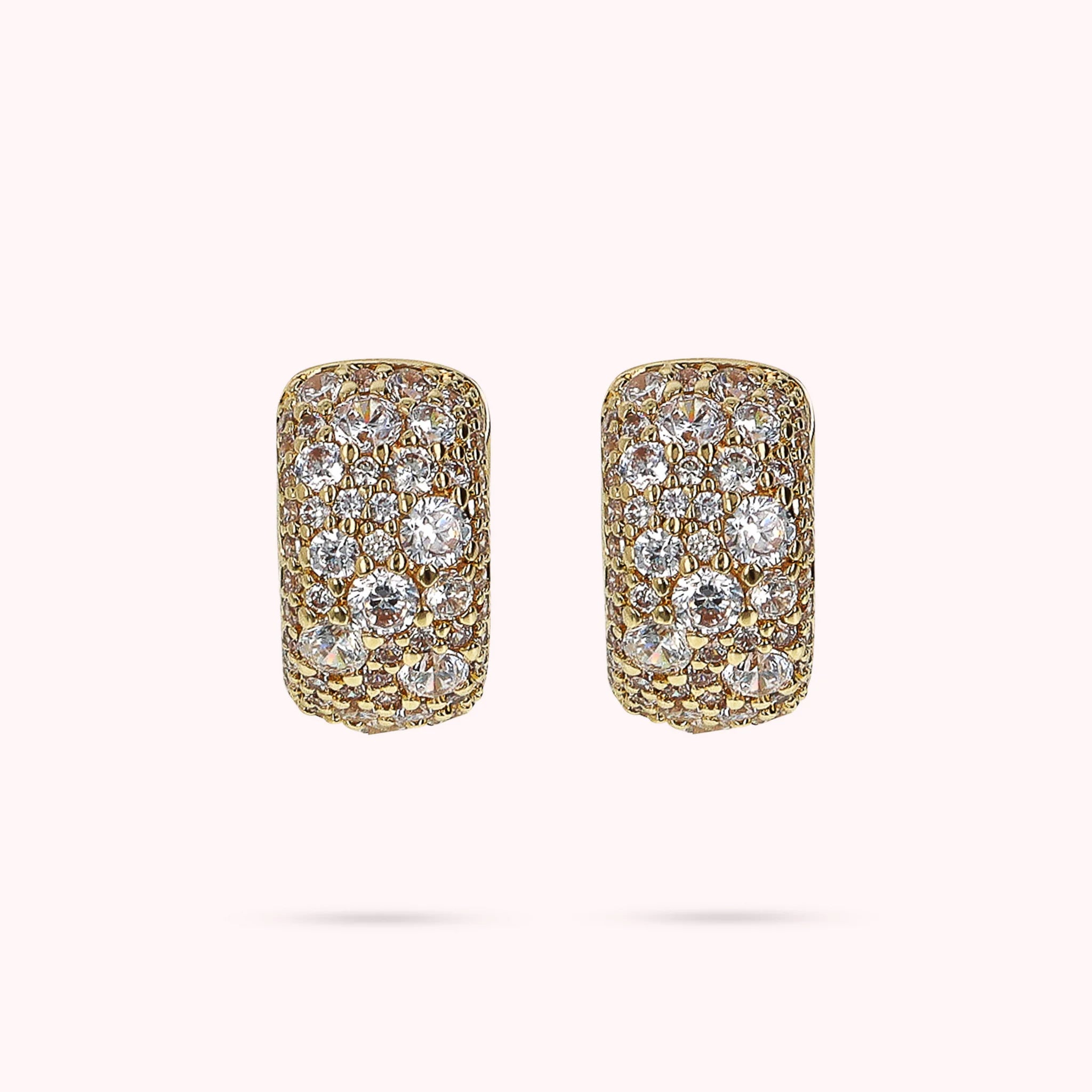 Golden Hoop Earrings in Cubic Zirconia Pavé