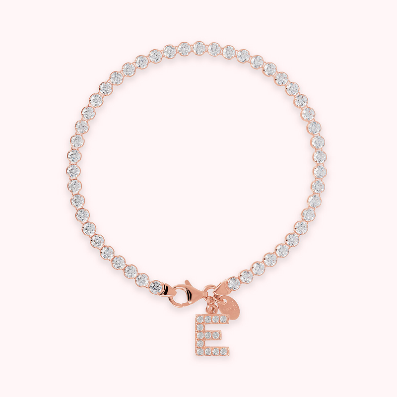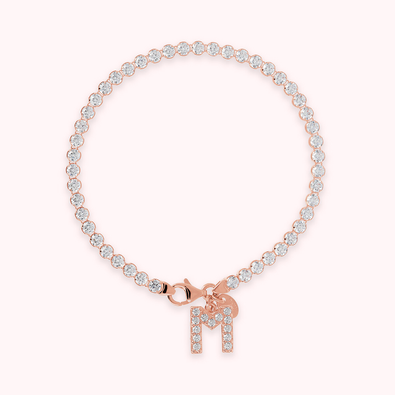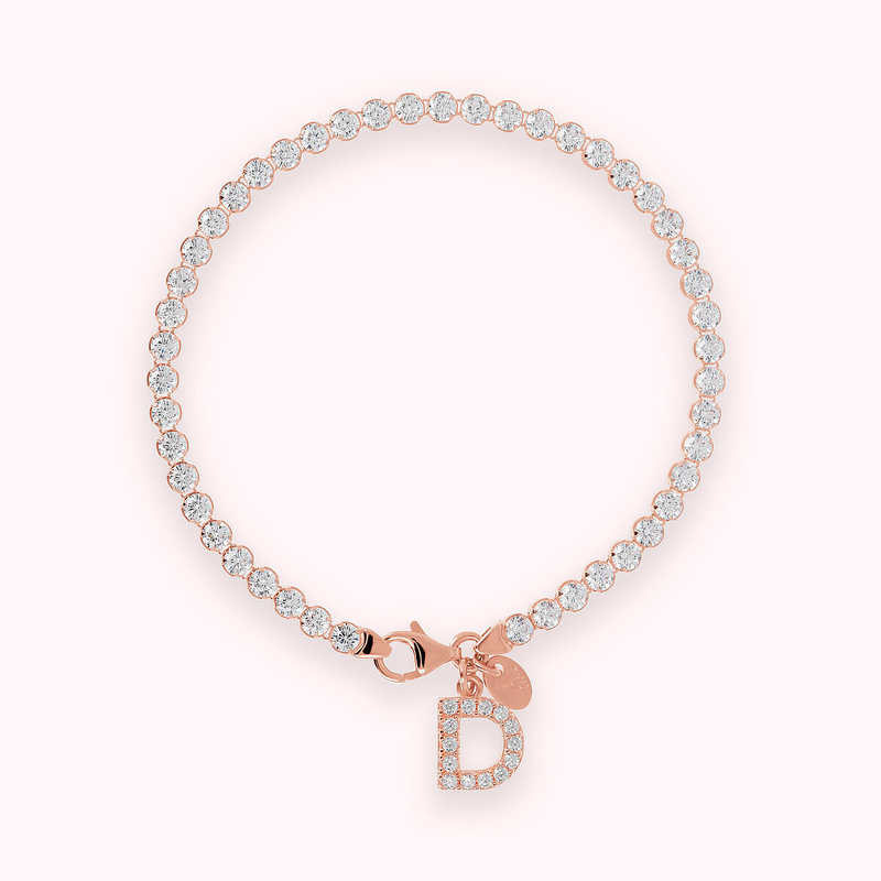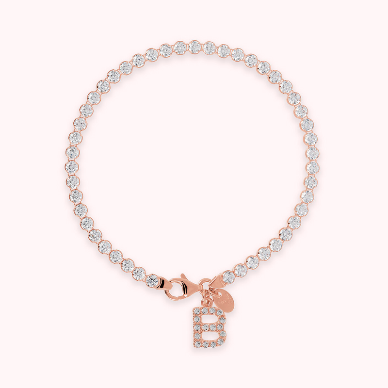 Cubic Zirconia Tennis Bracelet with Pavé Letter Pendant