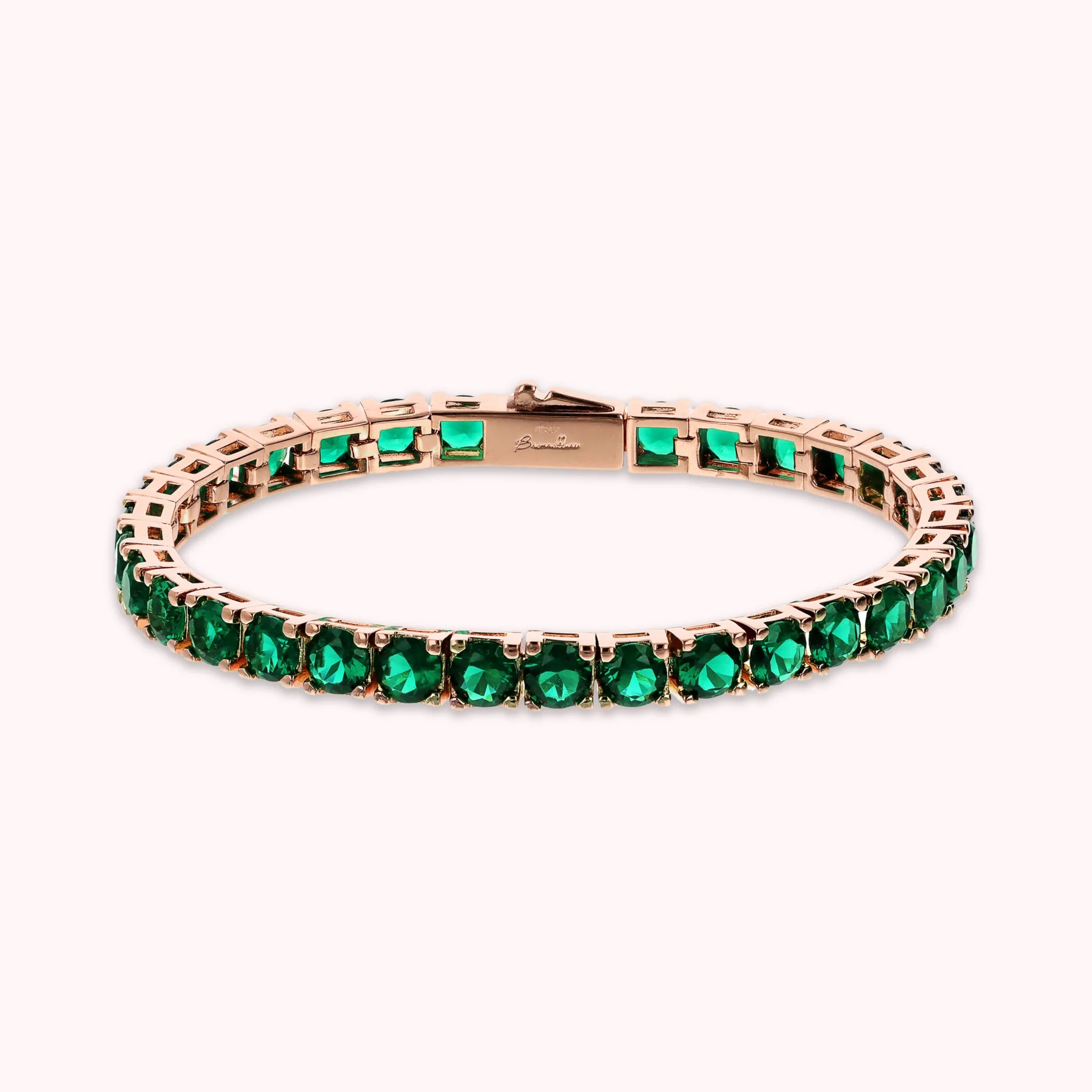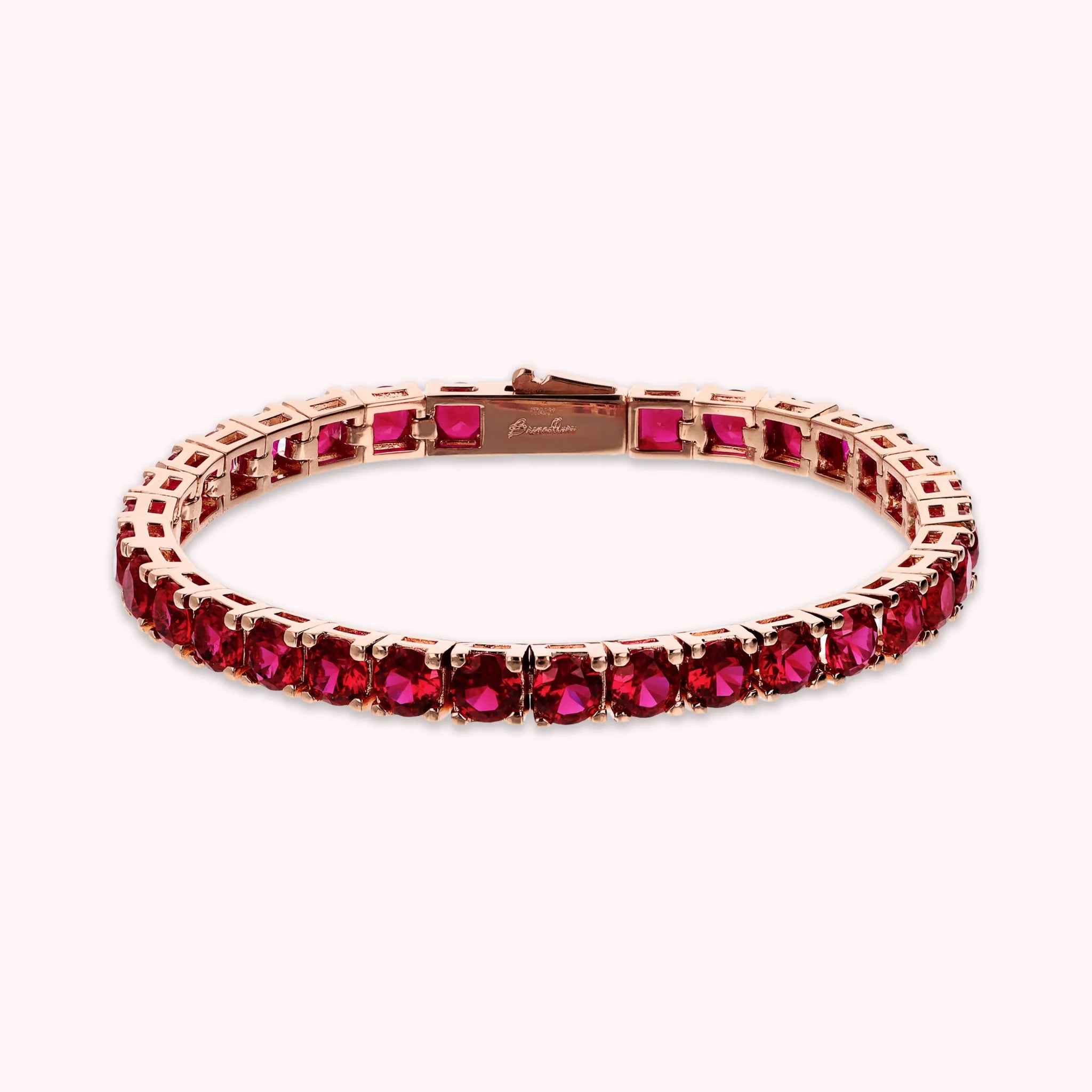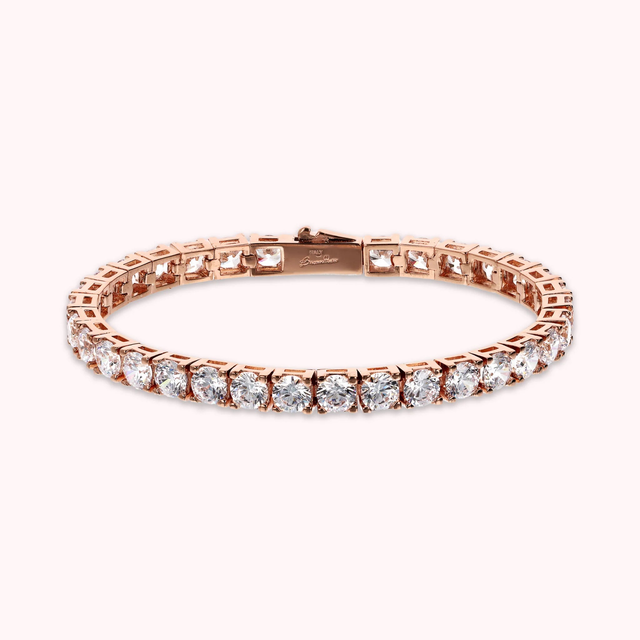 Bronzallure maxi tennis bracelet made of Golden Rosé alloy, 18kt rose gold plated, embellished with round-shaped cubic zirconia, luminous quality; cassette closure.
