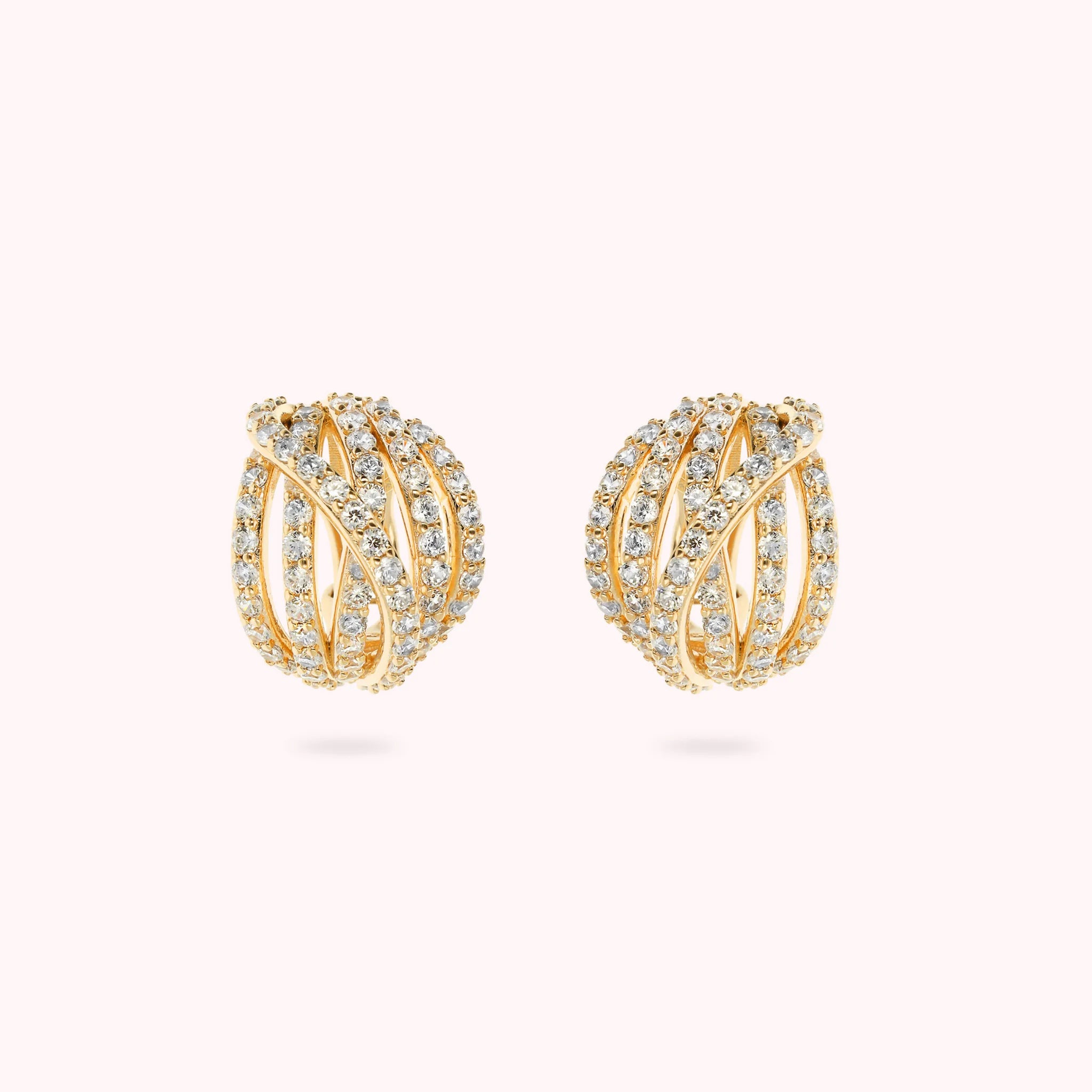 Golden Multi-Strand Crossed Sphere Earrings with Cubic Zirconia Pavé