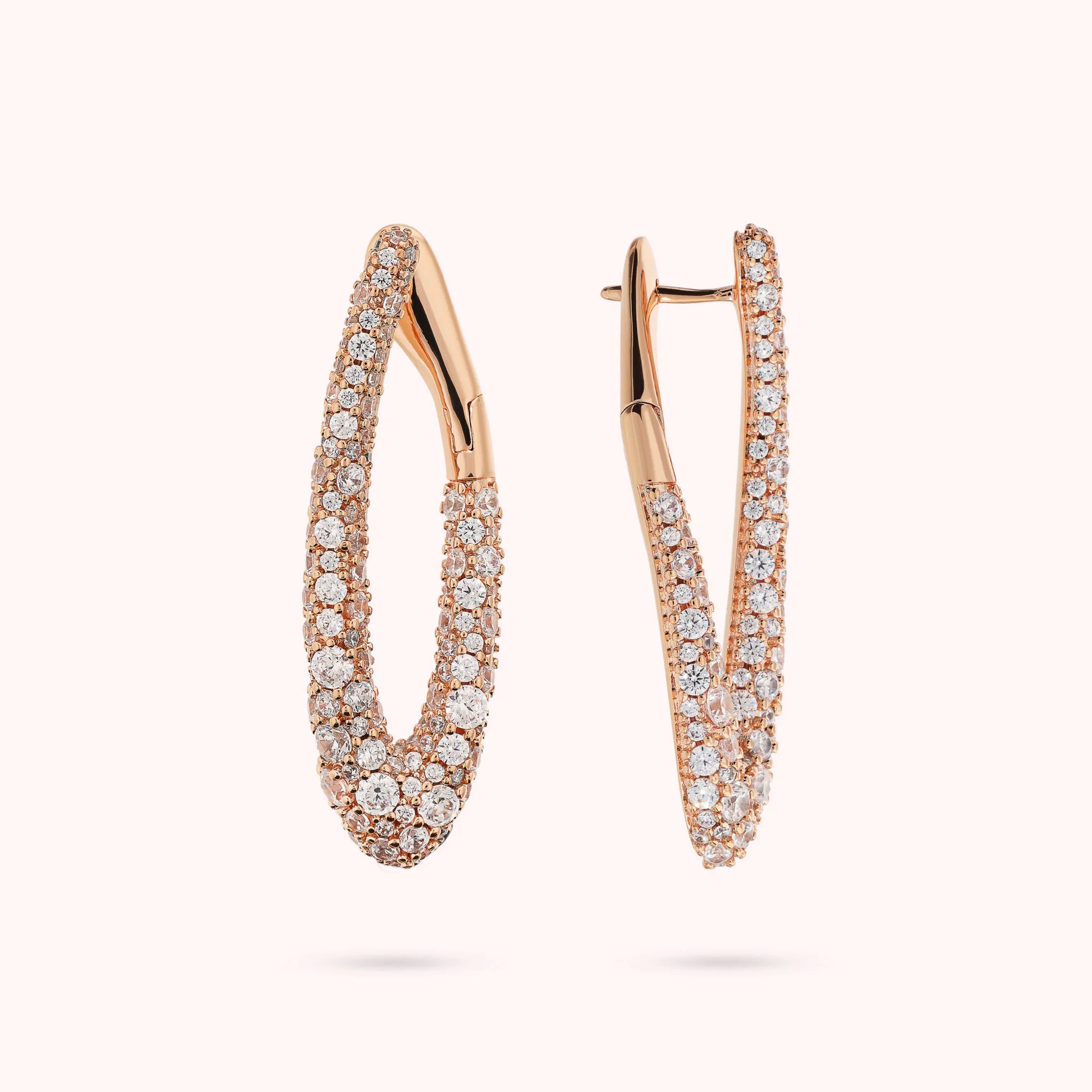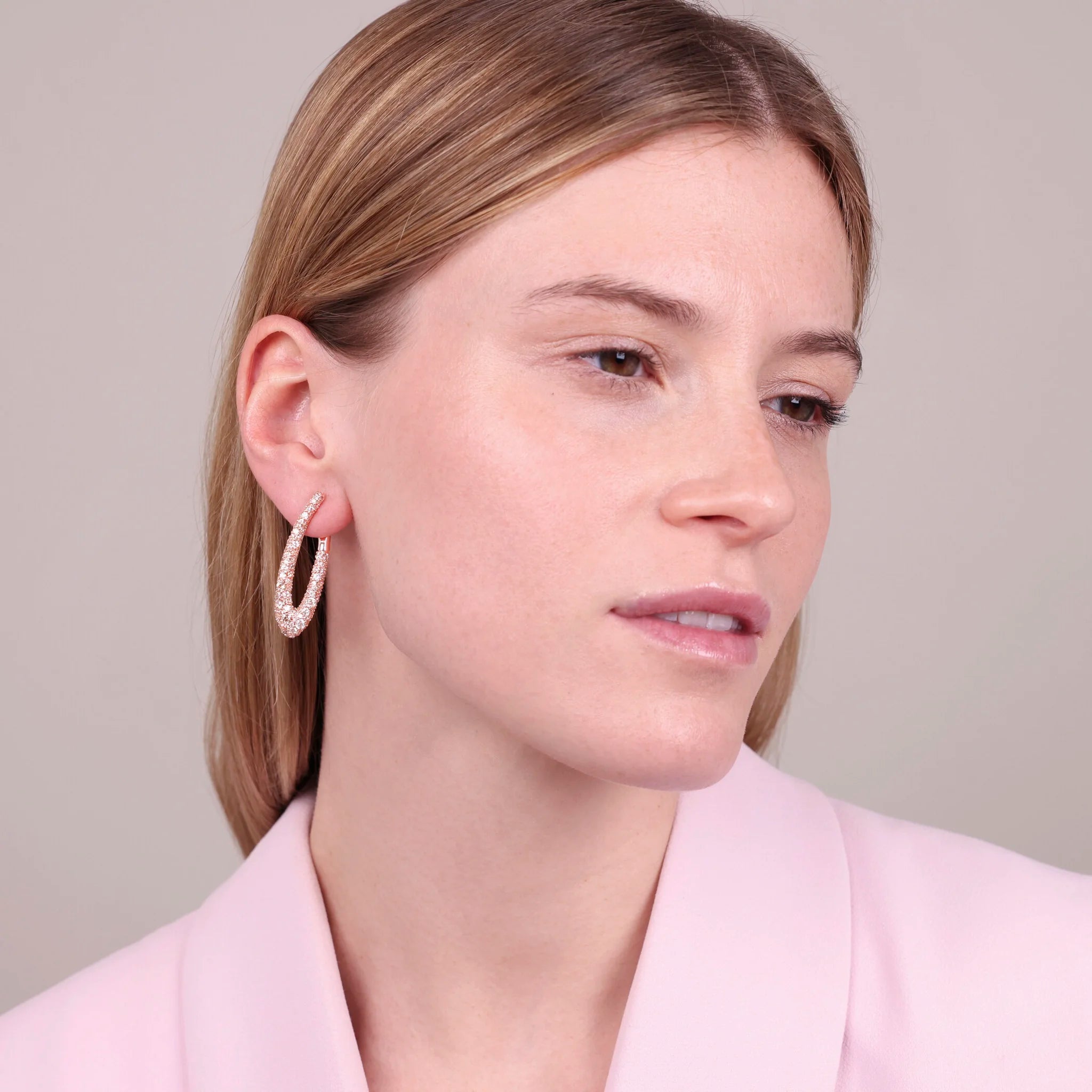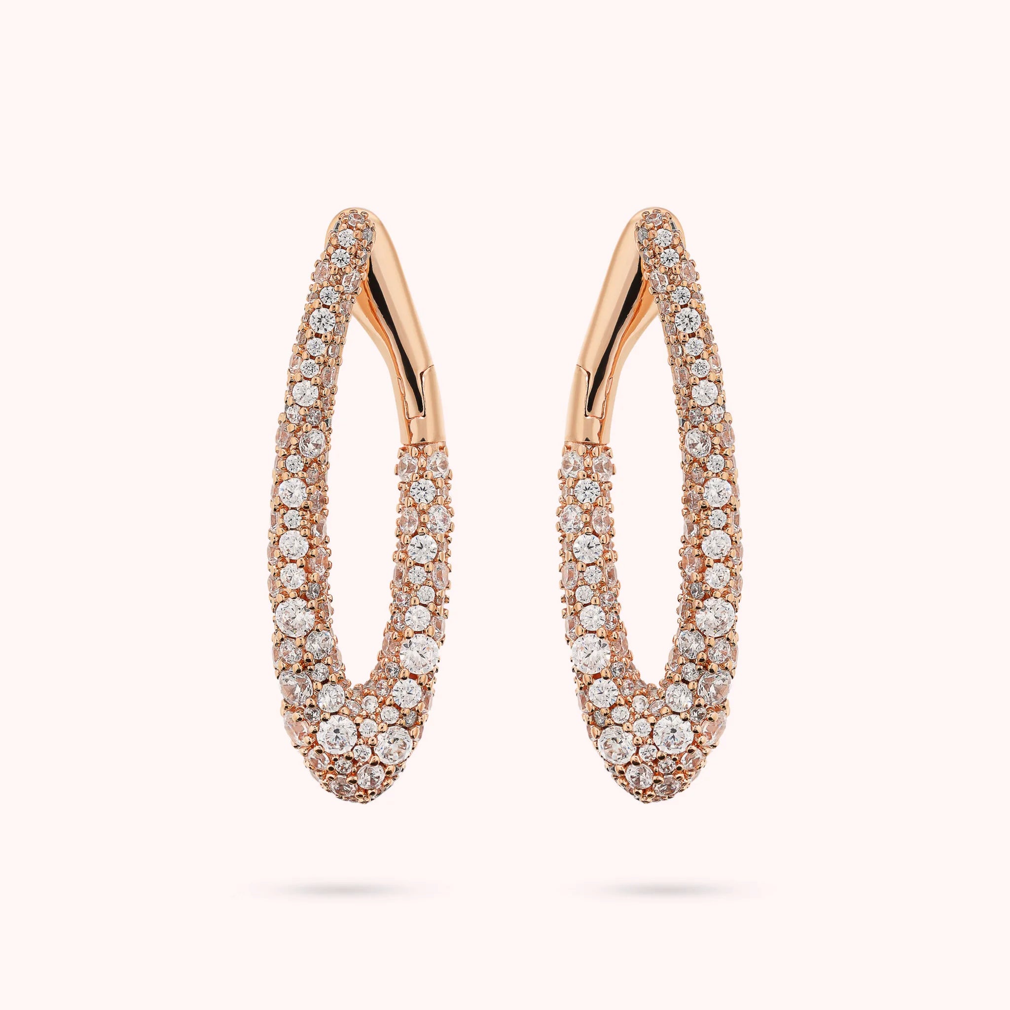 Oval earrings by Bronzallure made of Golden Rosé alloy, plated with 18kt Rose Gold, featuring a pavé of cubic zirconia, luminous quality. Closure with pin and lever.