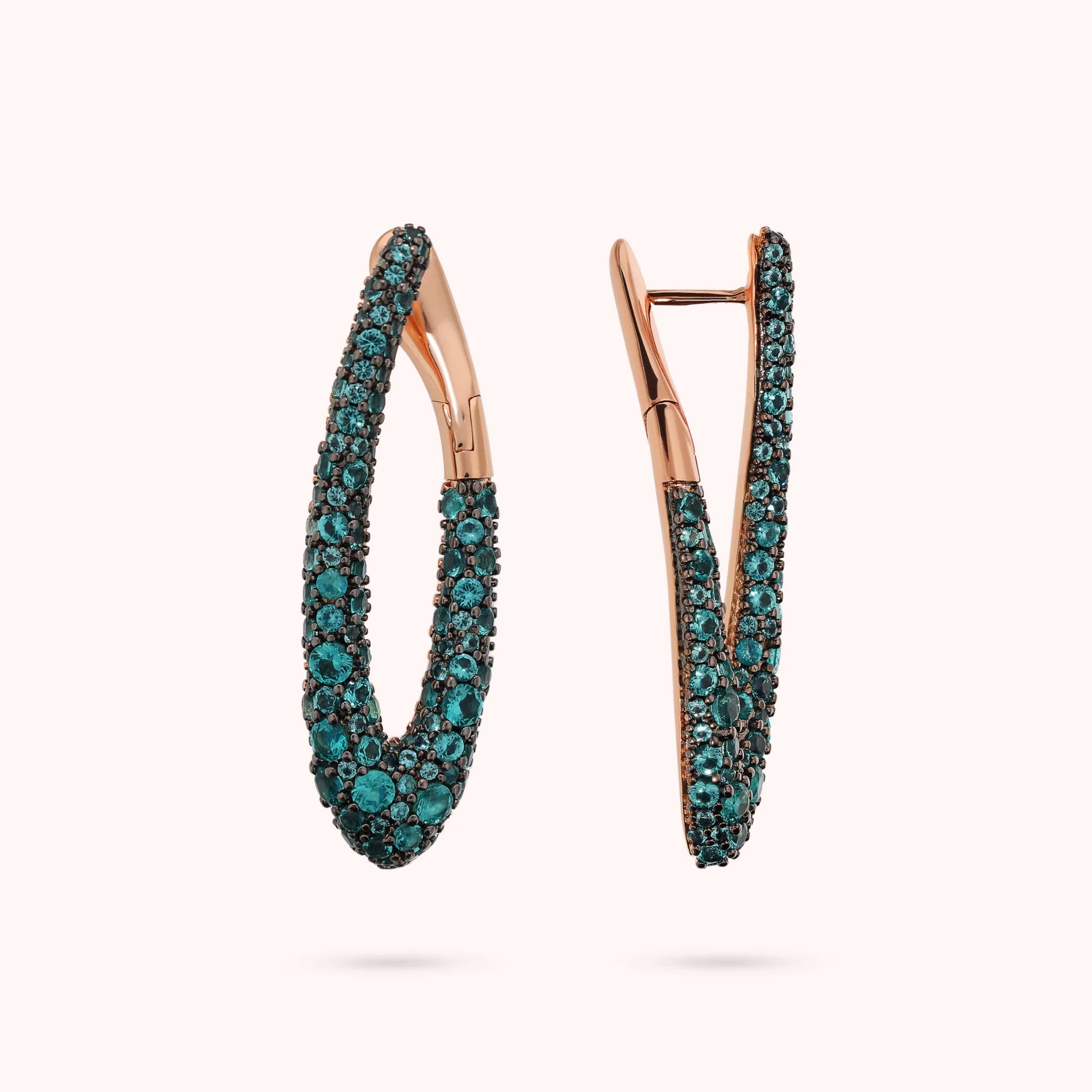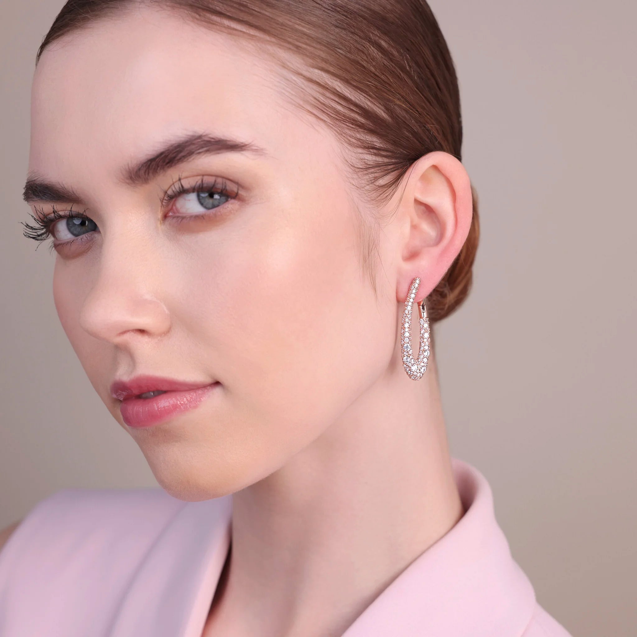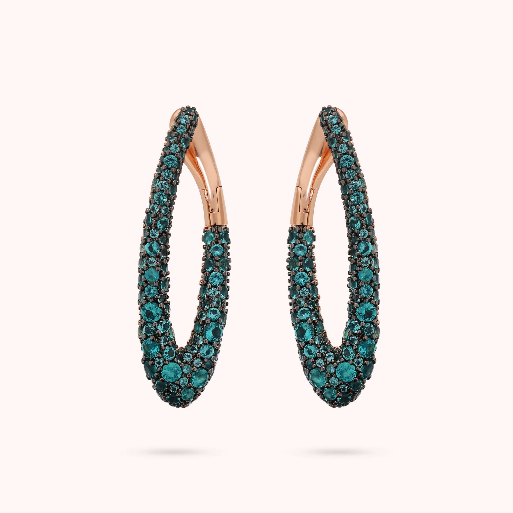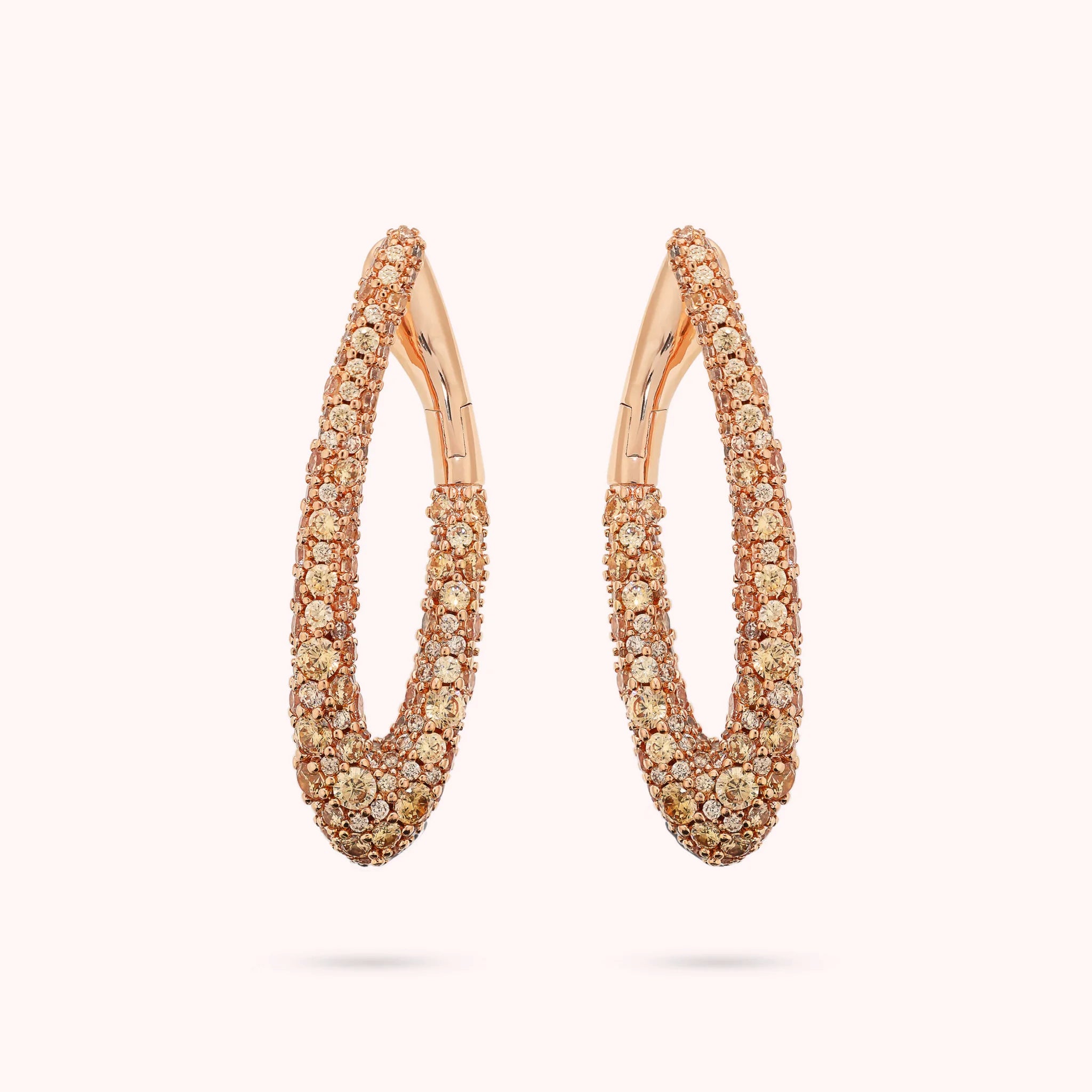 Oval earrings by Bronzallure made of Golden Rosé alloy, plated with 18kt Rose Gold, featuring a pavé of cubic zirconia, luminous quality. Closure with pin and lever.