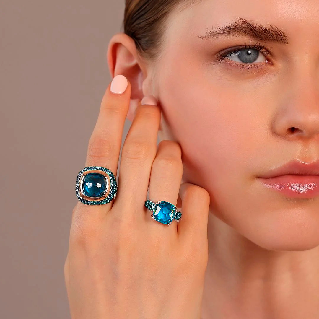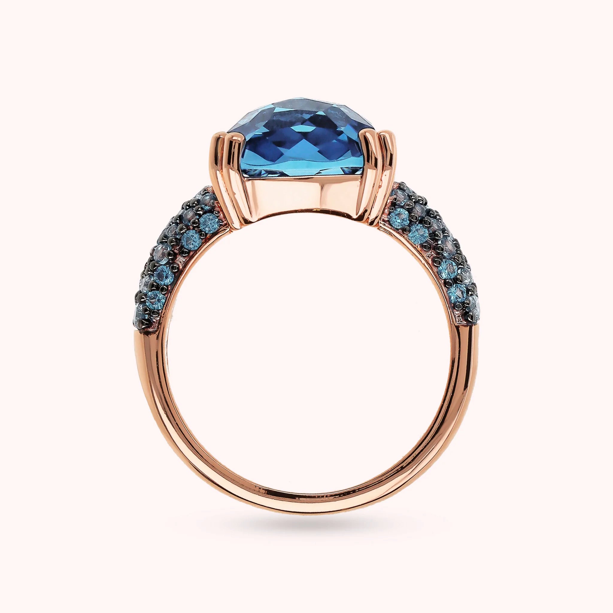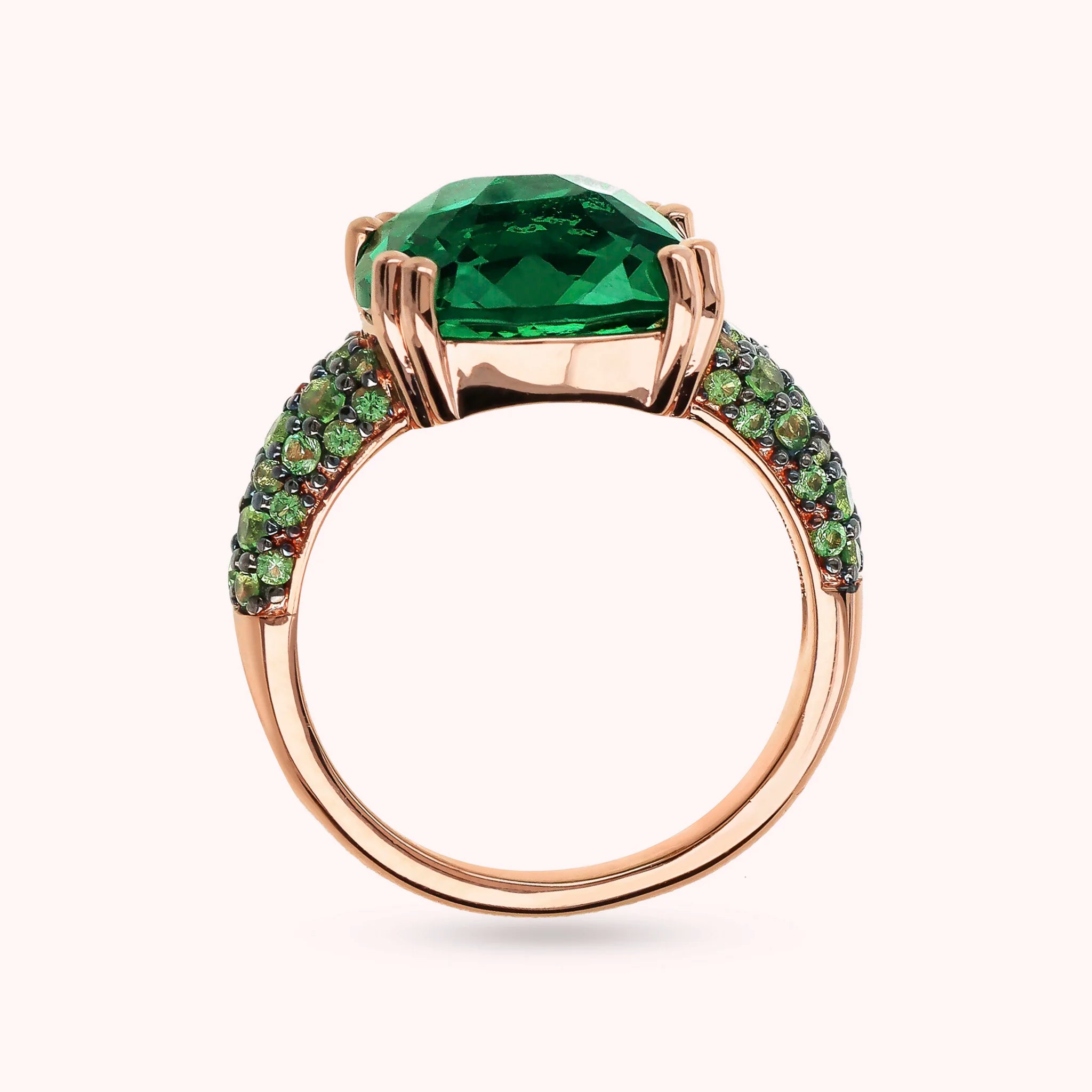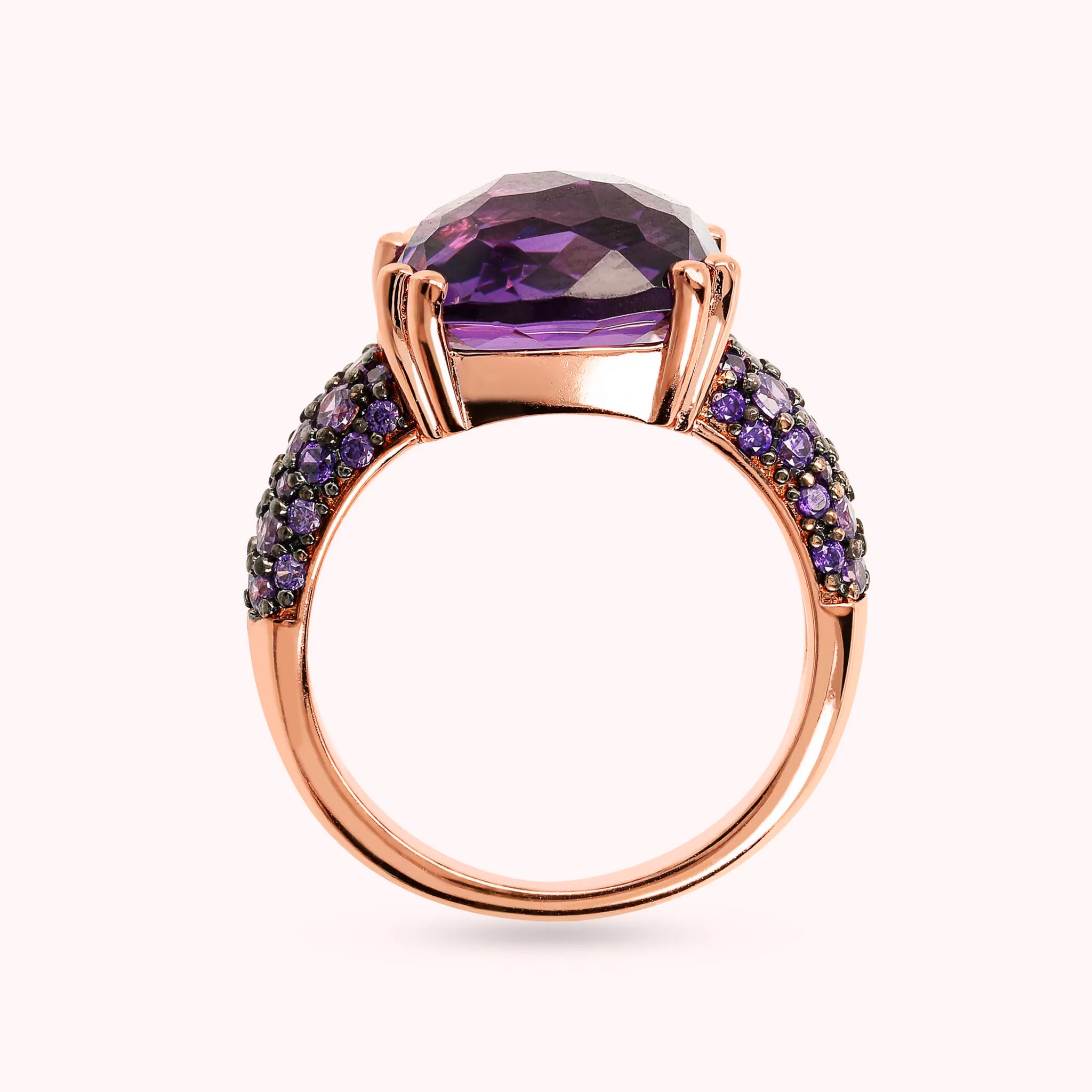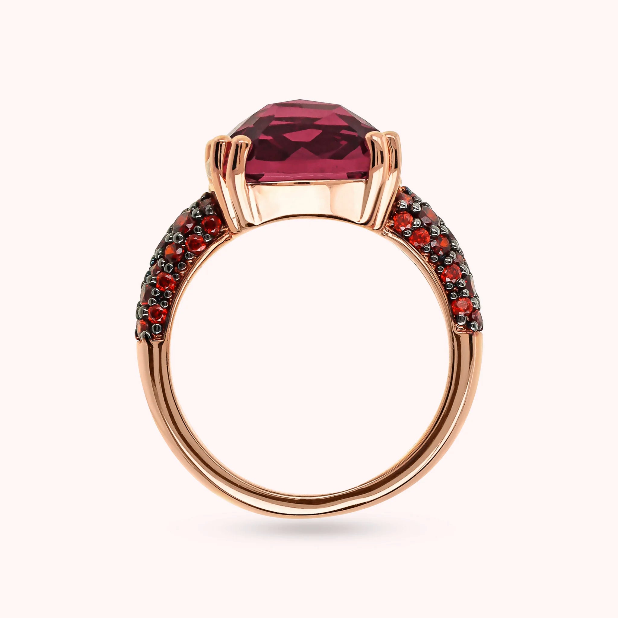 Bronzallure cocktail ring made on a Golden Rosé base, 18kt rose gold plated, embellished with a central square-shaped nano crystal stone (8x8 mm). On the sides of the stone there are cubic zirconia that create a luminous pavé.