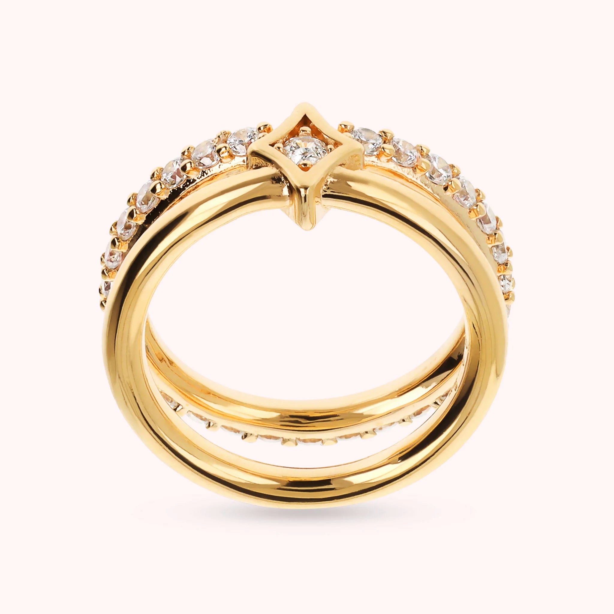 Double Ring Golden Étoile Band and Veretta in Cubic Zirconia
